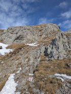 Aufstieg ohne Harscheisen, bei Erwärmung und Abstrahlung wird die Spur sicher glatter.