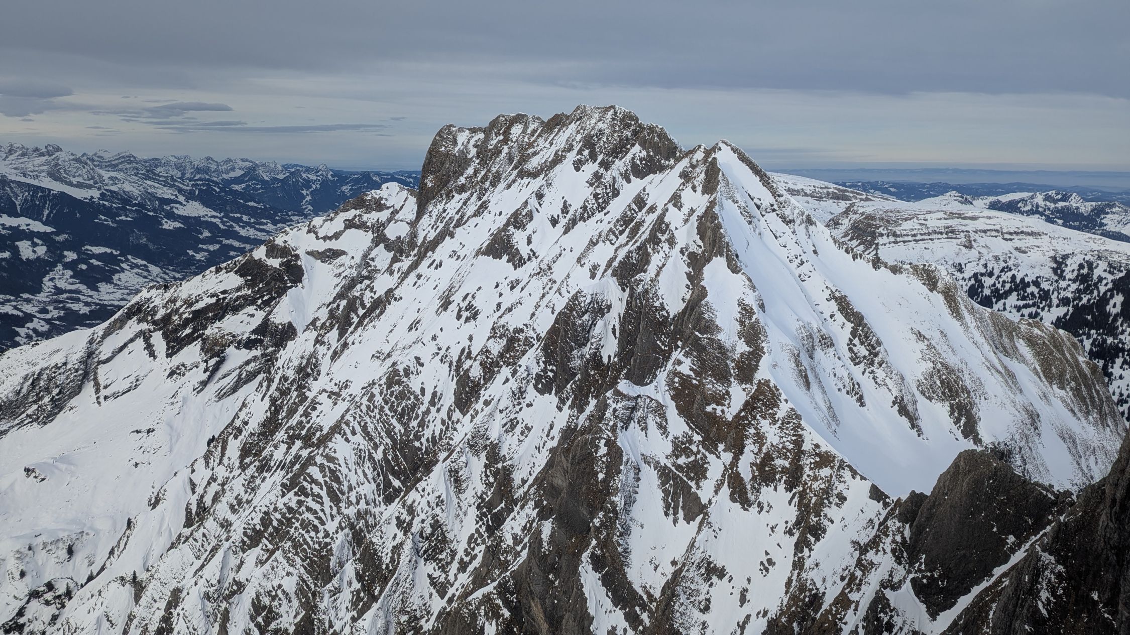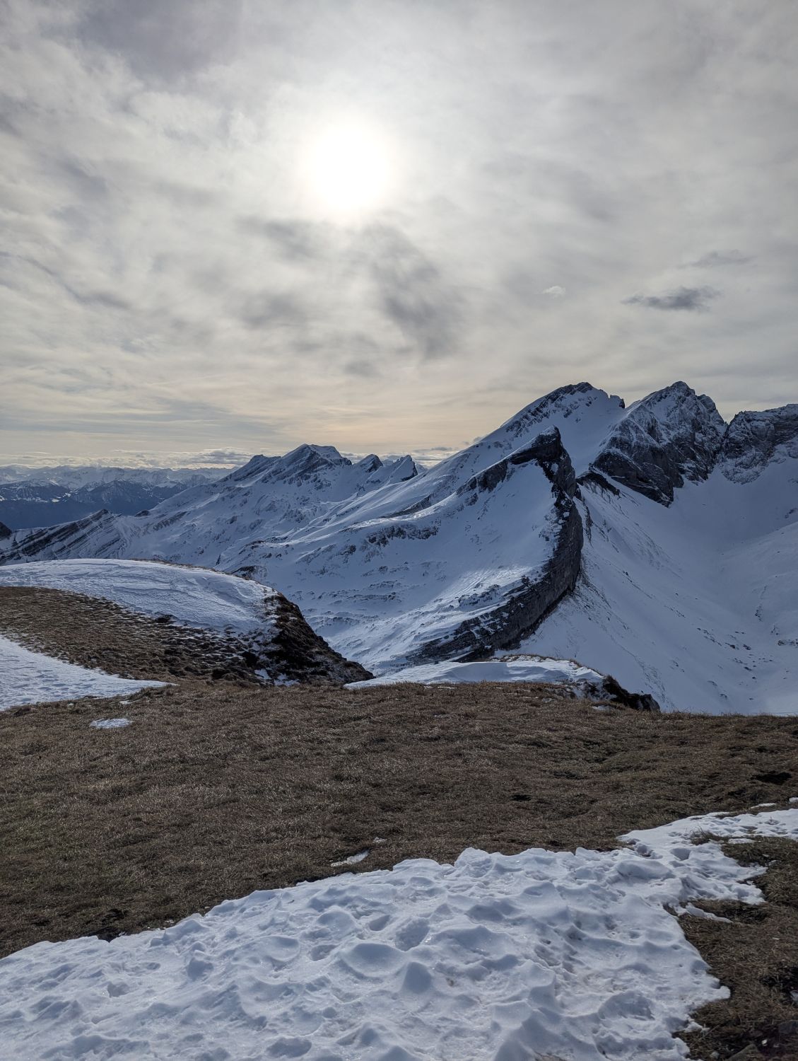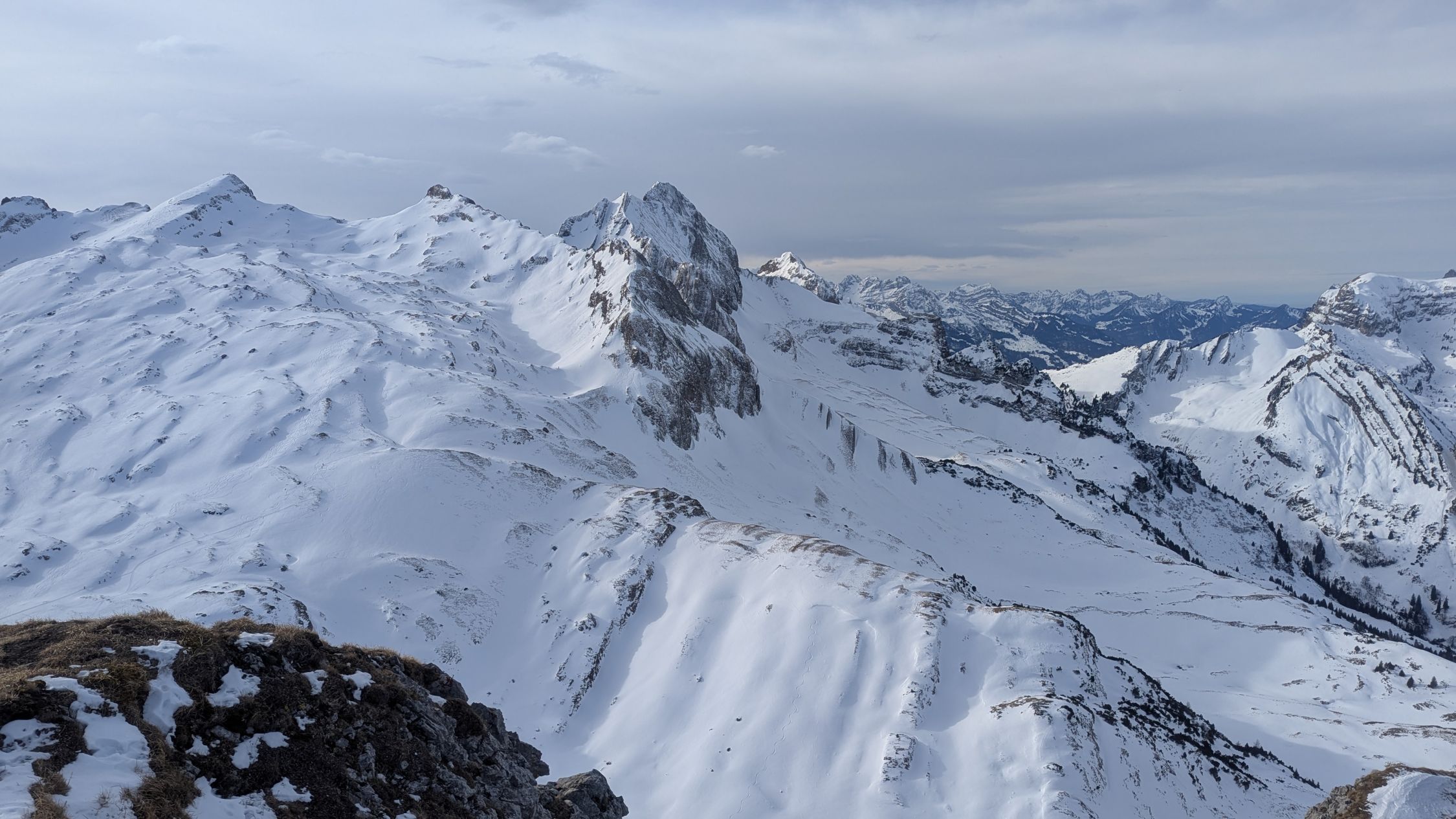 Allerlei Schneeverhältnisse, zum Glück auch passabel fahrbare Bereiche. Oben sehr windgepresst. Querung unter Hanenspiel bis unterhalb Obersäss tragend und weich, darunter eher sumpig. Margelchopf ist im Aufstieg recht ausgeapert, die Kletterstellen sind frei.