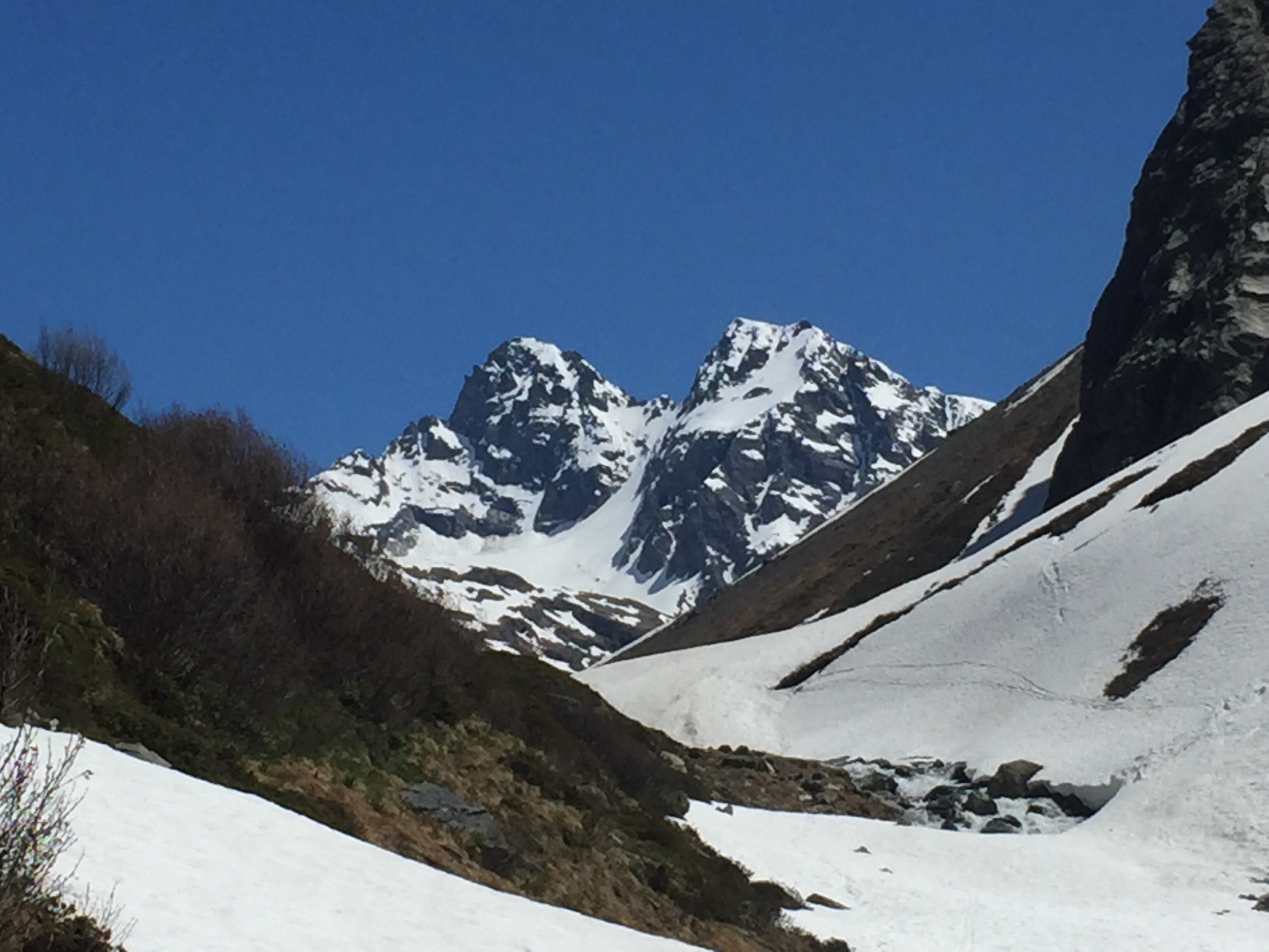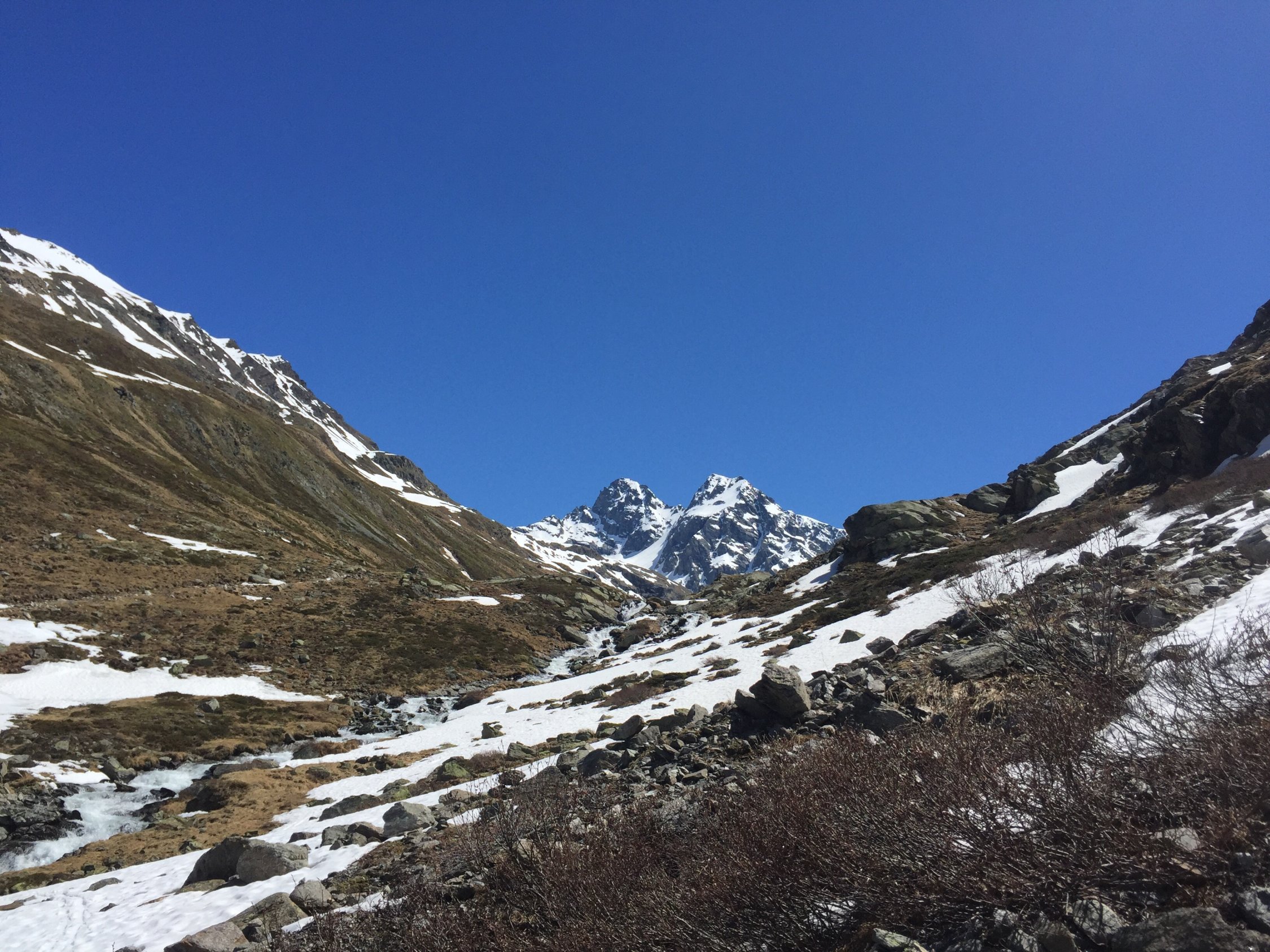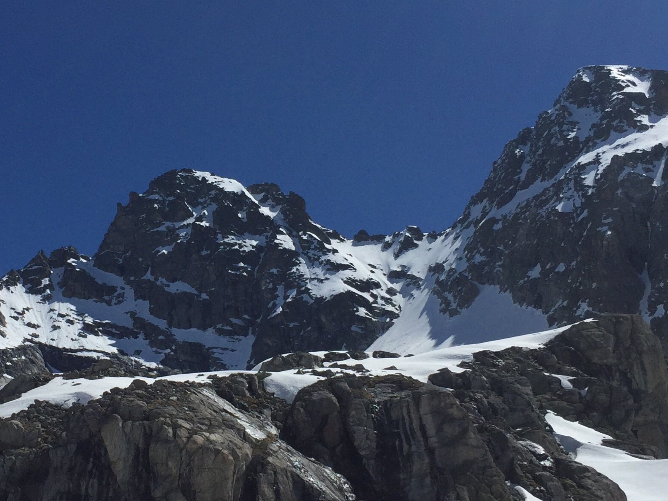 Start 03.00h in Monbiel. Mit Bike bis hinter Berghaus Vereina. Aufstieg mit Ski bis ca. 3'000 m, Gletscher gut eingeschneit und knapp durchgehende Schneedecke. Über Vernelasattel aufgestiegen und dann in die Rinne gequert (III), da in der Nordwestrinne teilweise aper. In Couloir (bis 50°) perfekte Verhältnisse und aufgrund Ausrichtung späte Sonneneinstrahlung. Zwei Pickel von Vorteil.