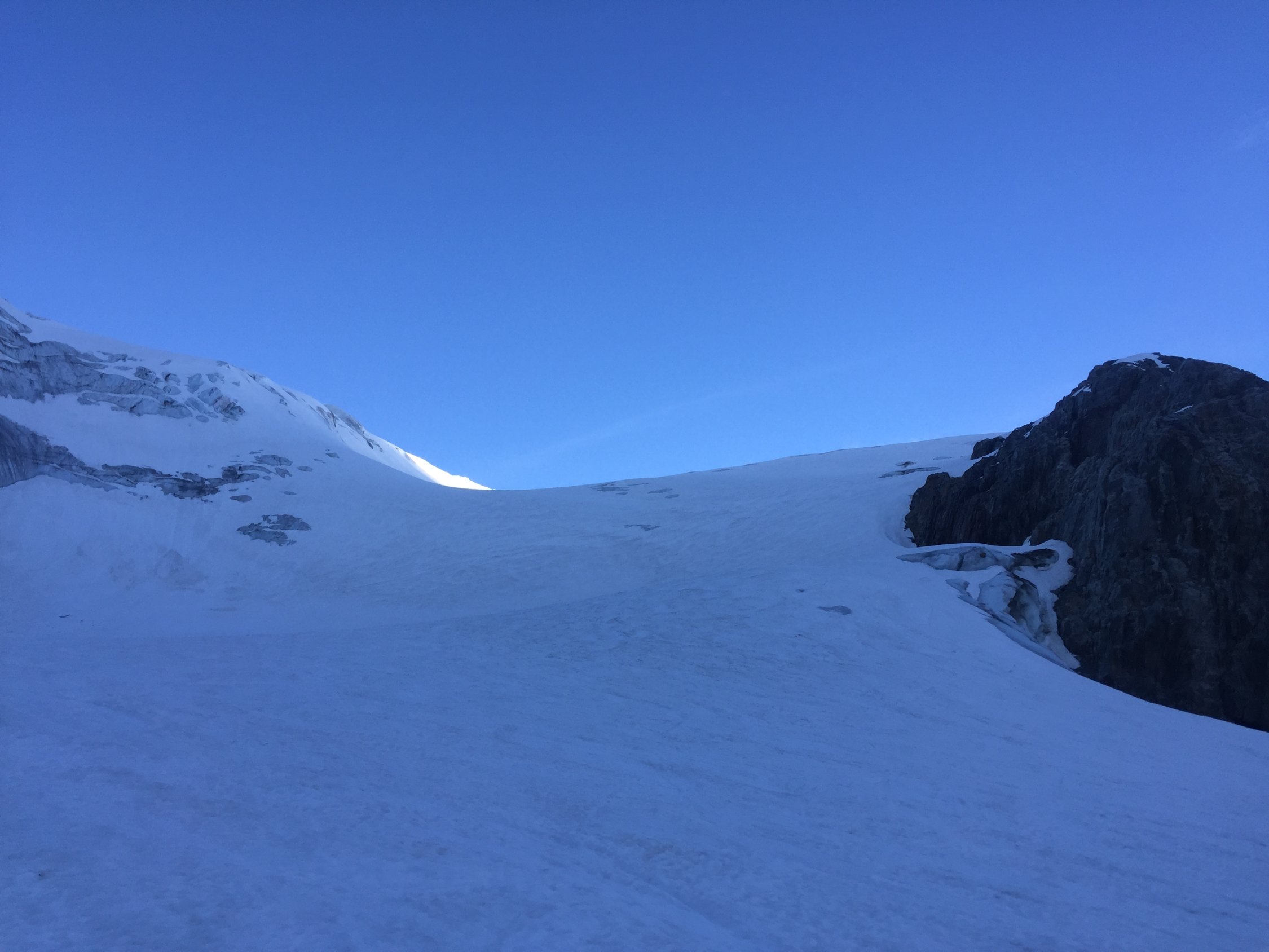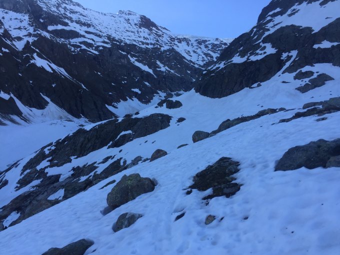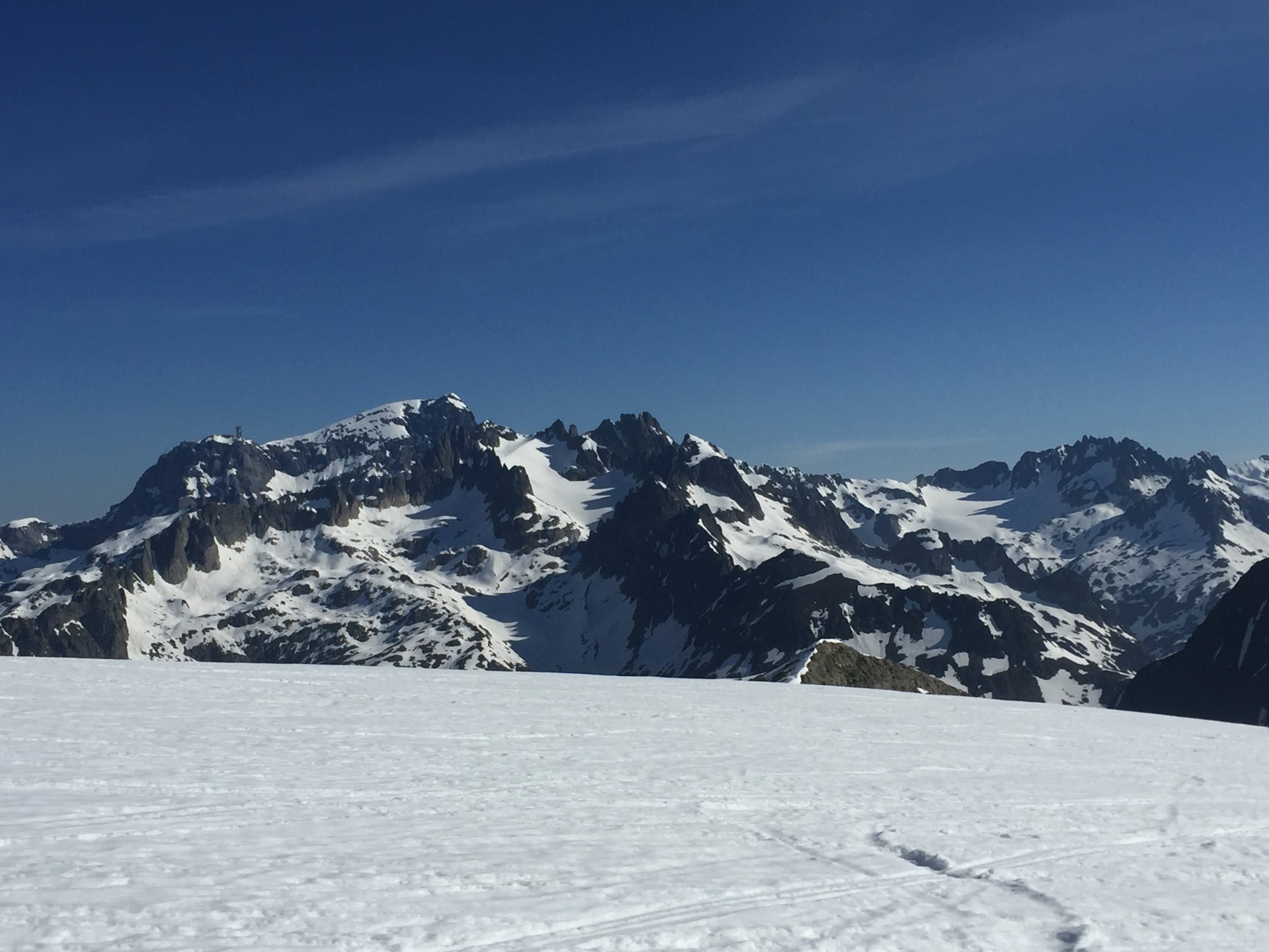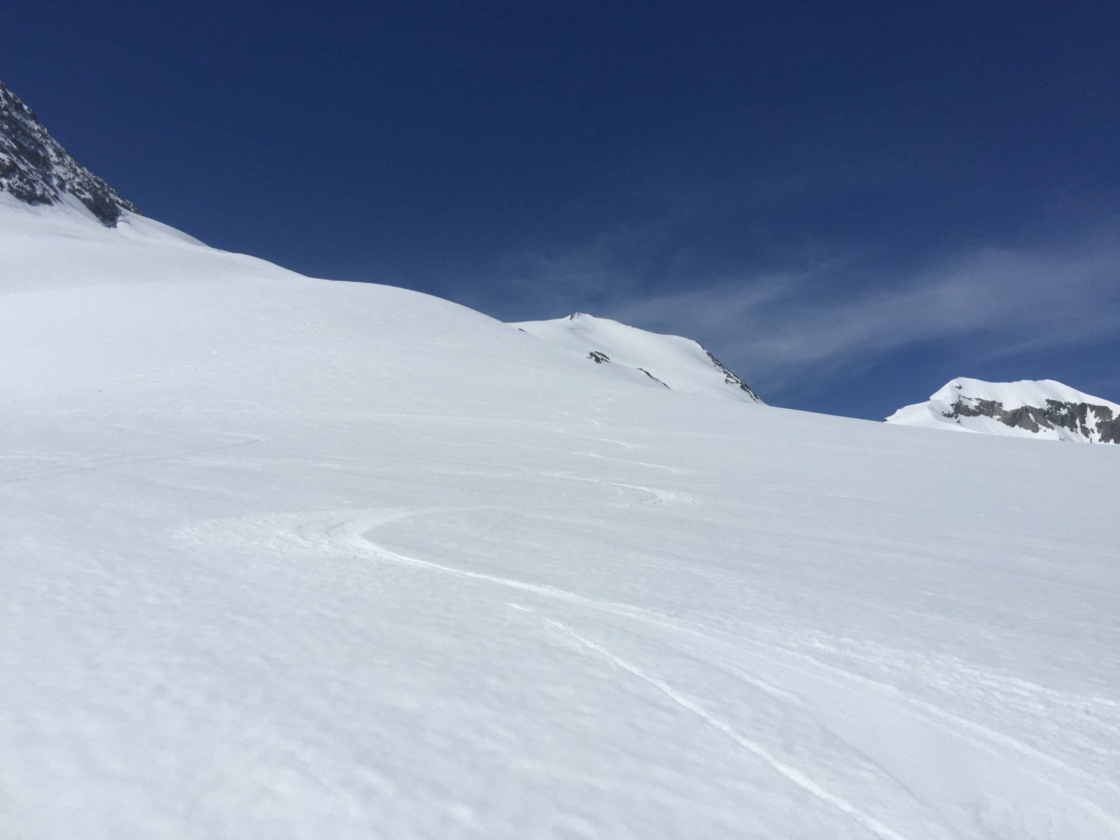 Heute nur ganz wenige Leute im Gebiet, ein netter Luzerner am Gwächtehorn und zwei/drei am Sustenhorn. Im Prinzip bleiben die Touren hier noch lange gut, aber bei den hohen Temperaturen wird der Schnee im unteren Bereich rasch schmelzen, das gibt dann halt Tragestrecken. Entscheidend ist, was im ersten Bruch passiert. Ich komme (hoffentlich) nochmals diese Saison!
