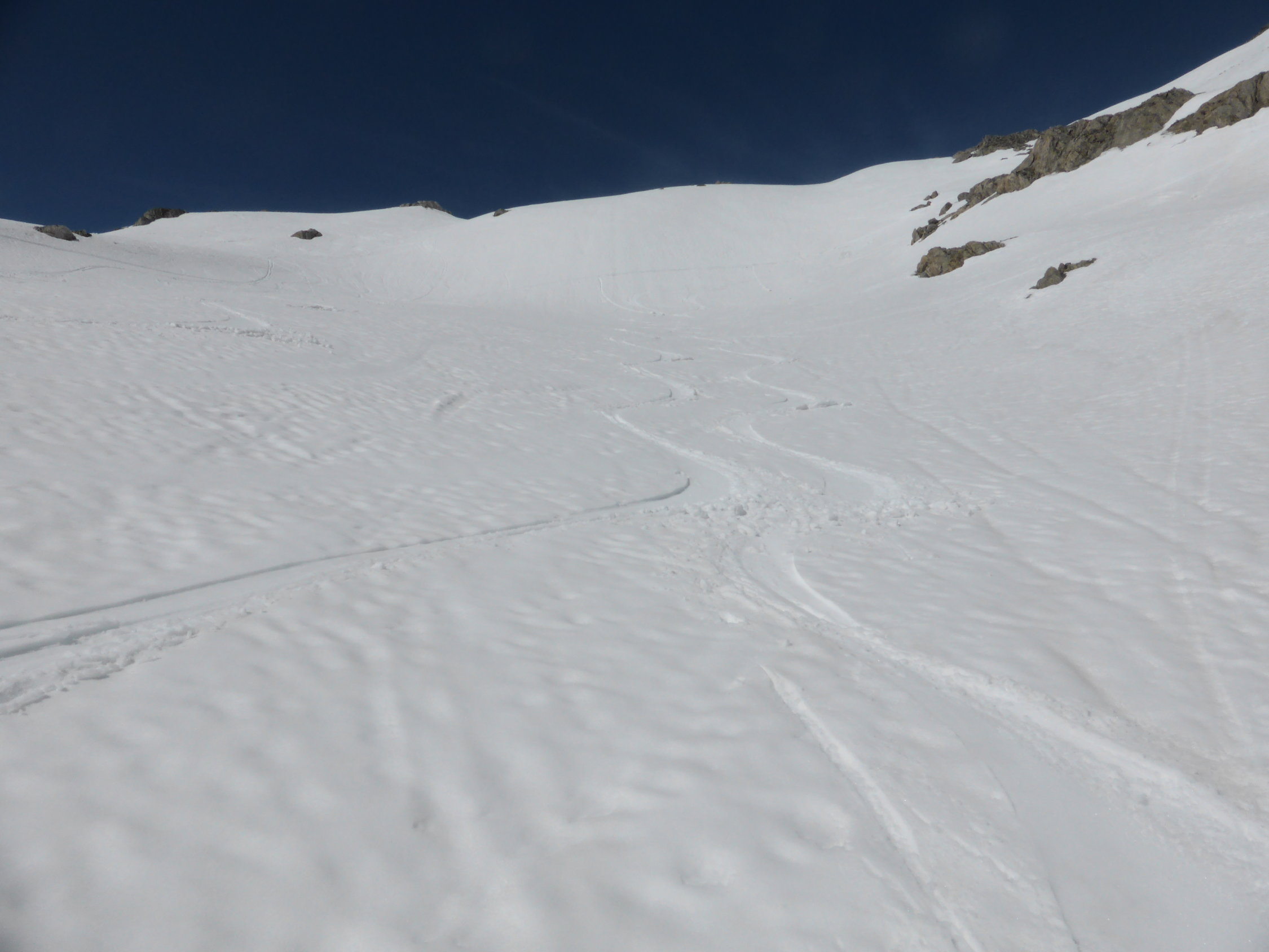 Schnee: noch durchwegs sehr gut eingeschneit, bei solchen Temperaturen versteht es sich aber von selbst, dass es sich hier um Sulz handelt, desshalb würde ich auch von einer Begehung über den Sidelenbach abraten und den im Aufstieg linken Rücken benutzen, die Abfahrt war dann besser als es zu erwarten war