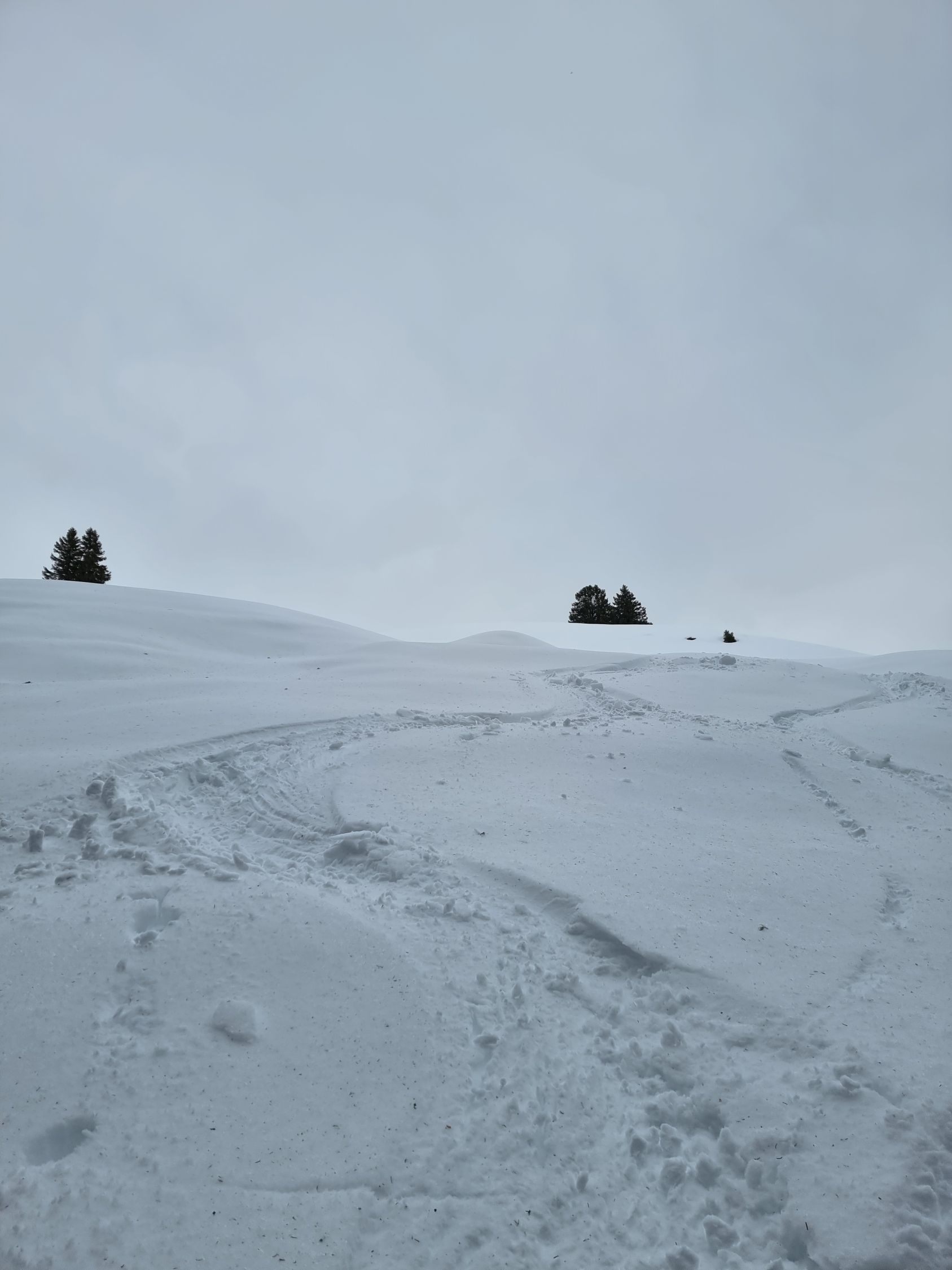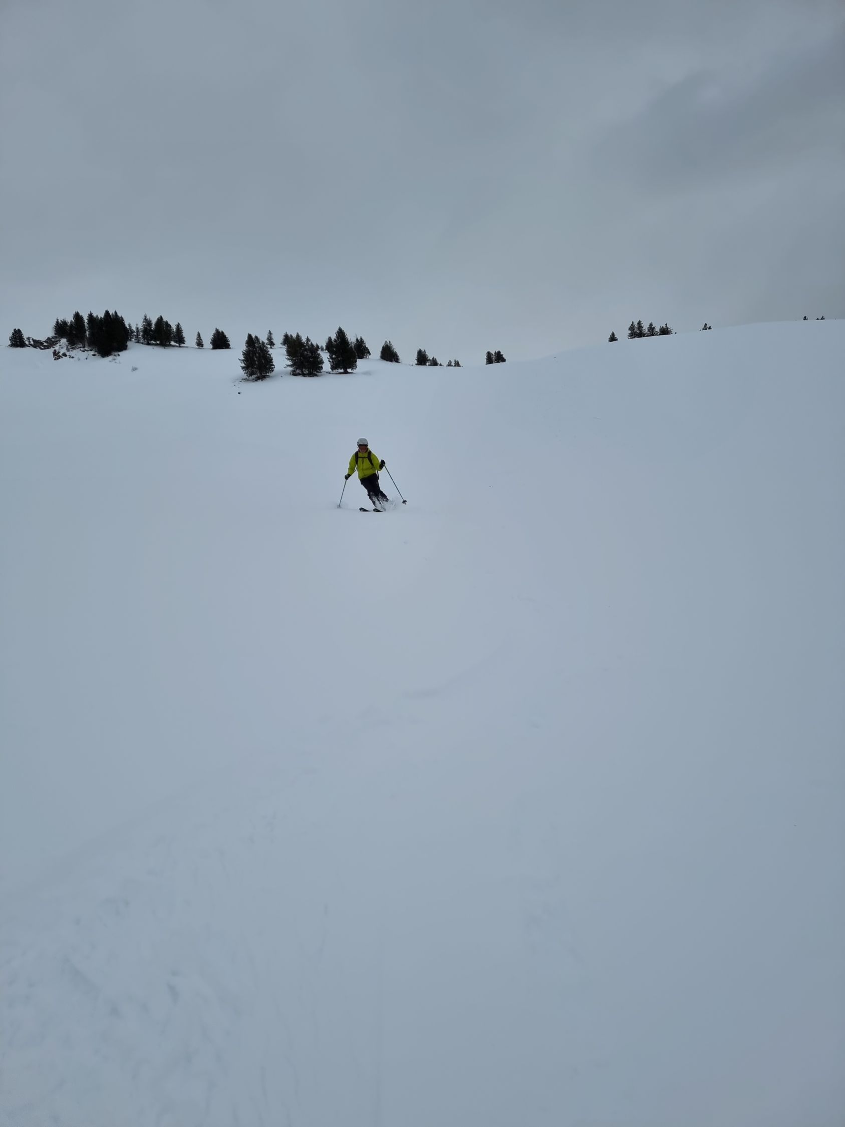Im Aufstieg noch fester Schnee und in den Abfahrten recht gute Verhältnisse angetroffen.