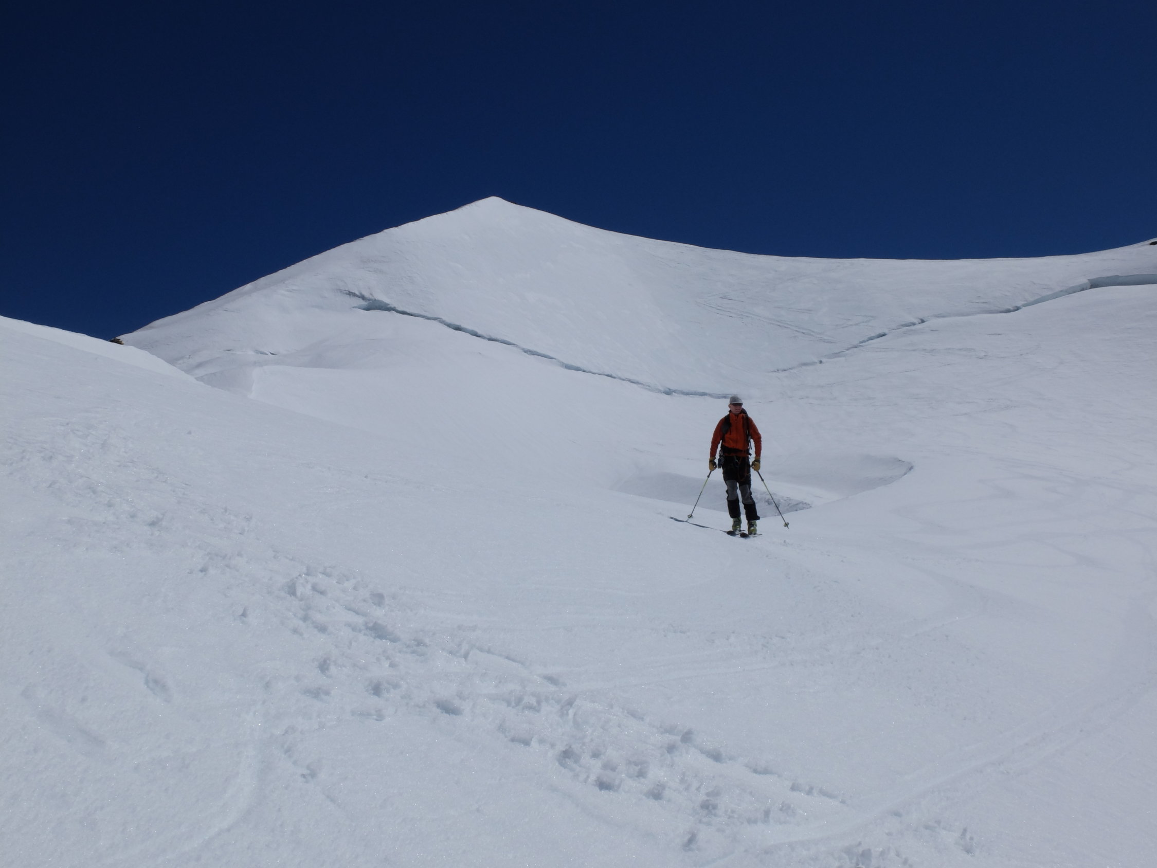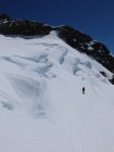 Abfahrt direkt vom Gipfel, Bergschrund unproblematisch.