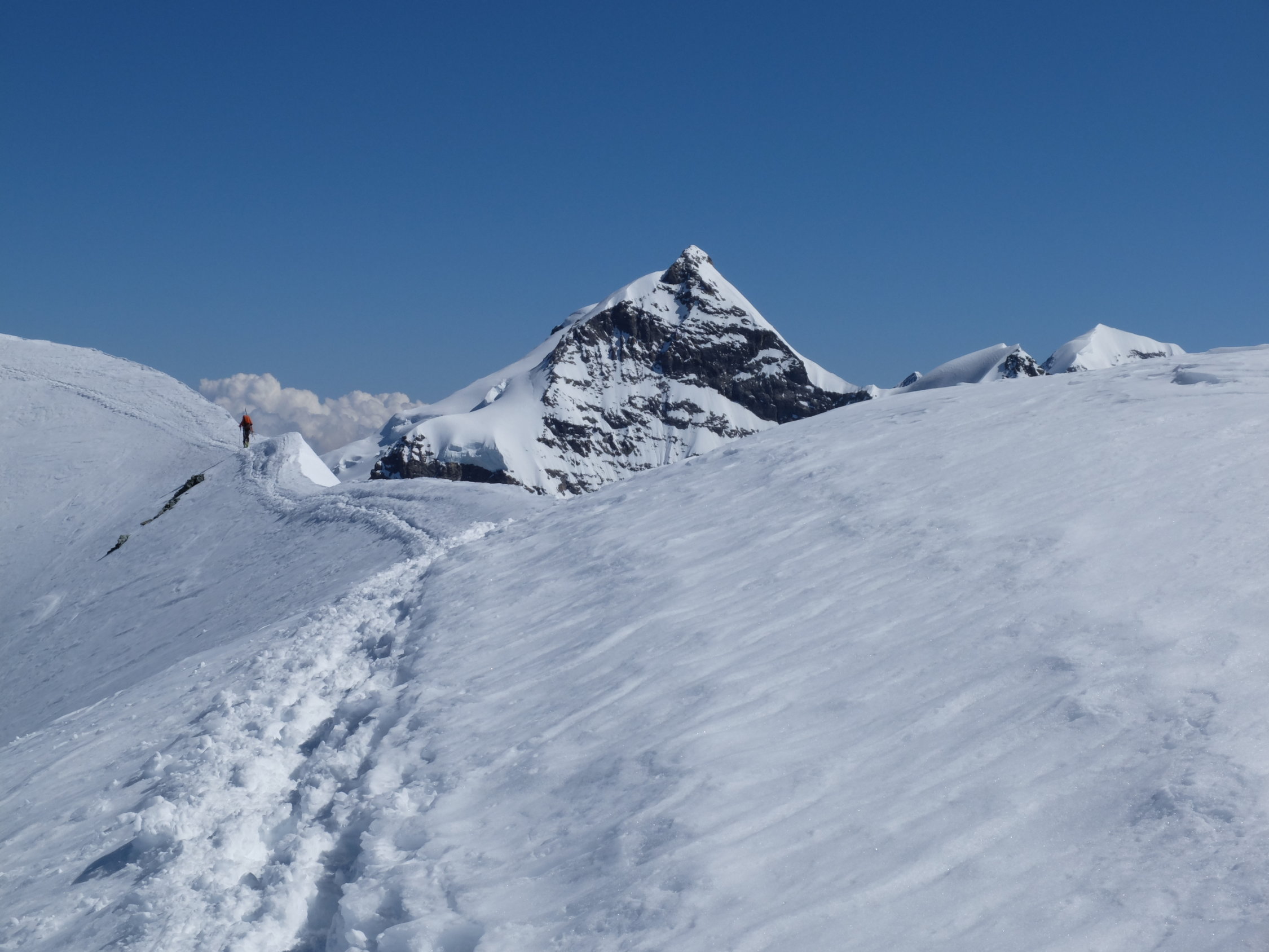 Wir sind zurück in die Lötschenlücke aufgestiegen, deshalb haben wir uns auf 3200m nach Südosten gewendet, wir haben das Plateau von Anungletscher überquert, und zuletzt sind wir auf die Route 472a gekommen.