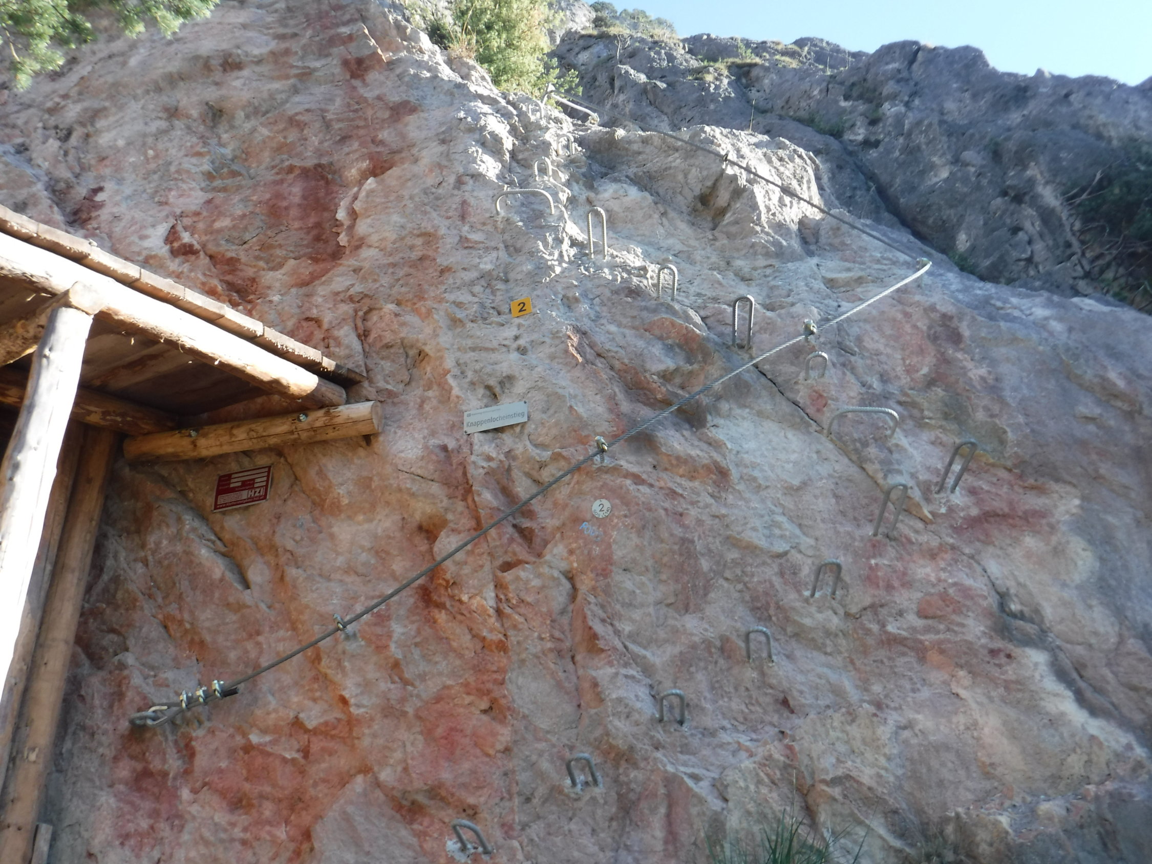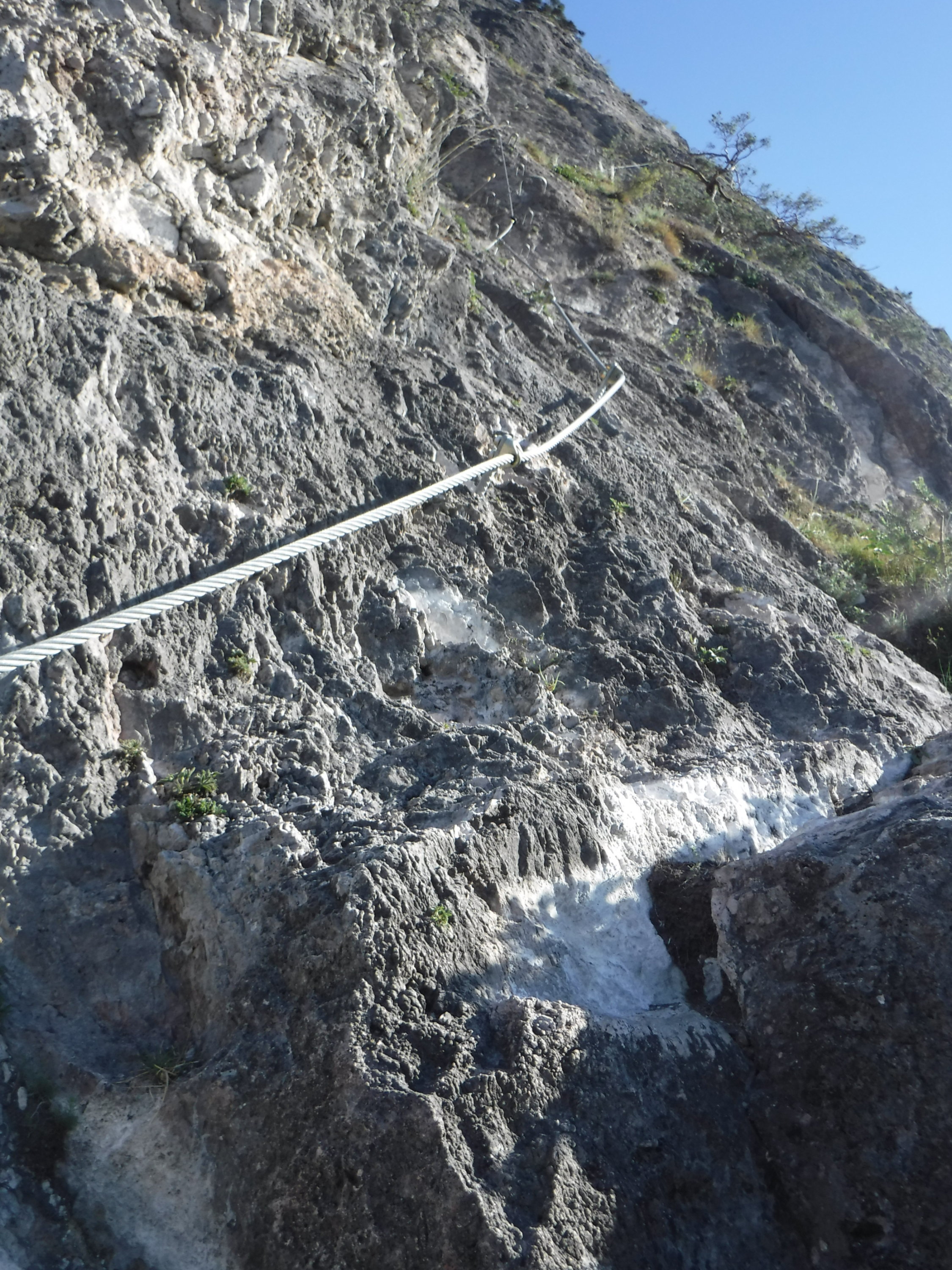 Sehr informative Tafeln am Parkplatz. Das dicke Seil ist angenehm zu greifen. Das schwarze Wandbuch wurde von W. Friedl am 28.12.2016 deponiert und ist fast voll. Wer bringt ein neues mit ? Es fehlt dort oben noch eine geeignete Schatulle. Gibt es jemanden, der mal vom Heer, oder Bund eine Gamelle abstaubt und dort hinhängt ? Die sind regendicht, leicht; darin passt aber nur Büchlein in DIN A5 Format hinein.