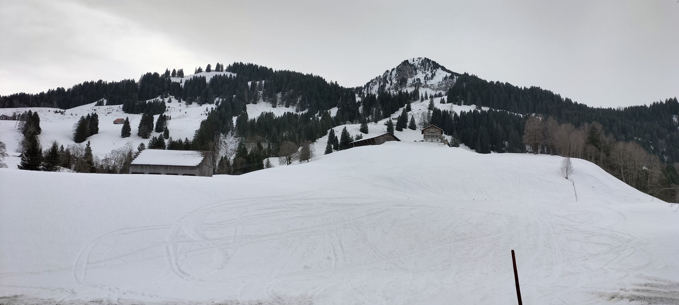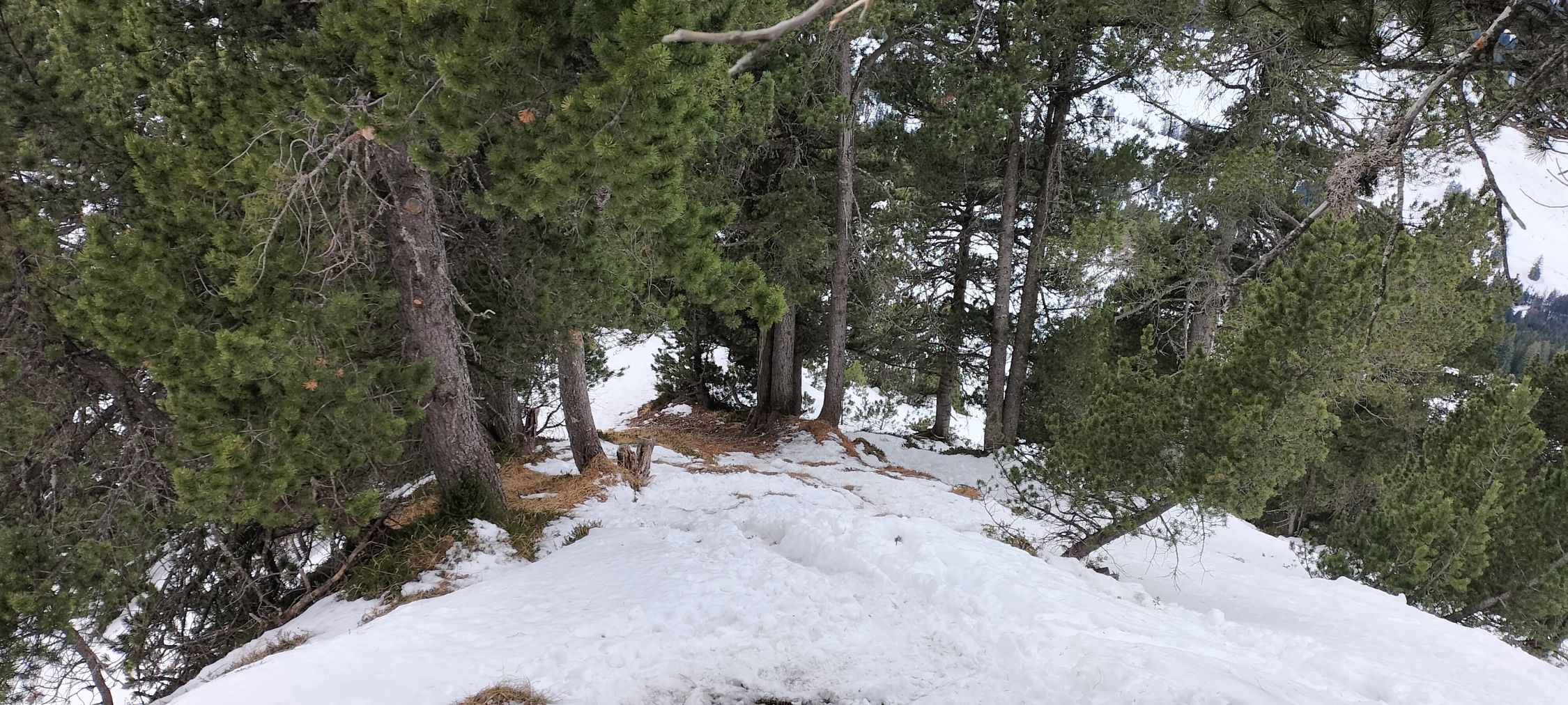 Die Tour ist immer noch gut machbar, nach einer Woche Föhnlage ist schon wieder viel Schnee weg, bei der Abfahrt ist die beste Variant am Schluss durch das Skigebiet Roggen.
