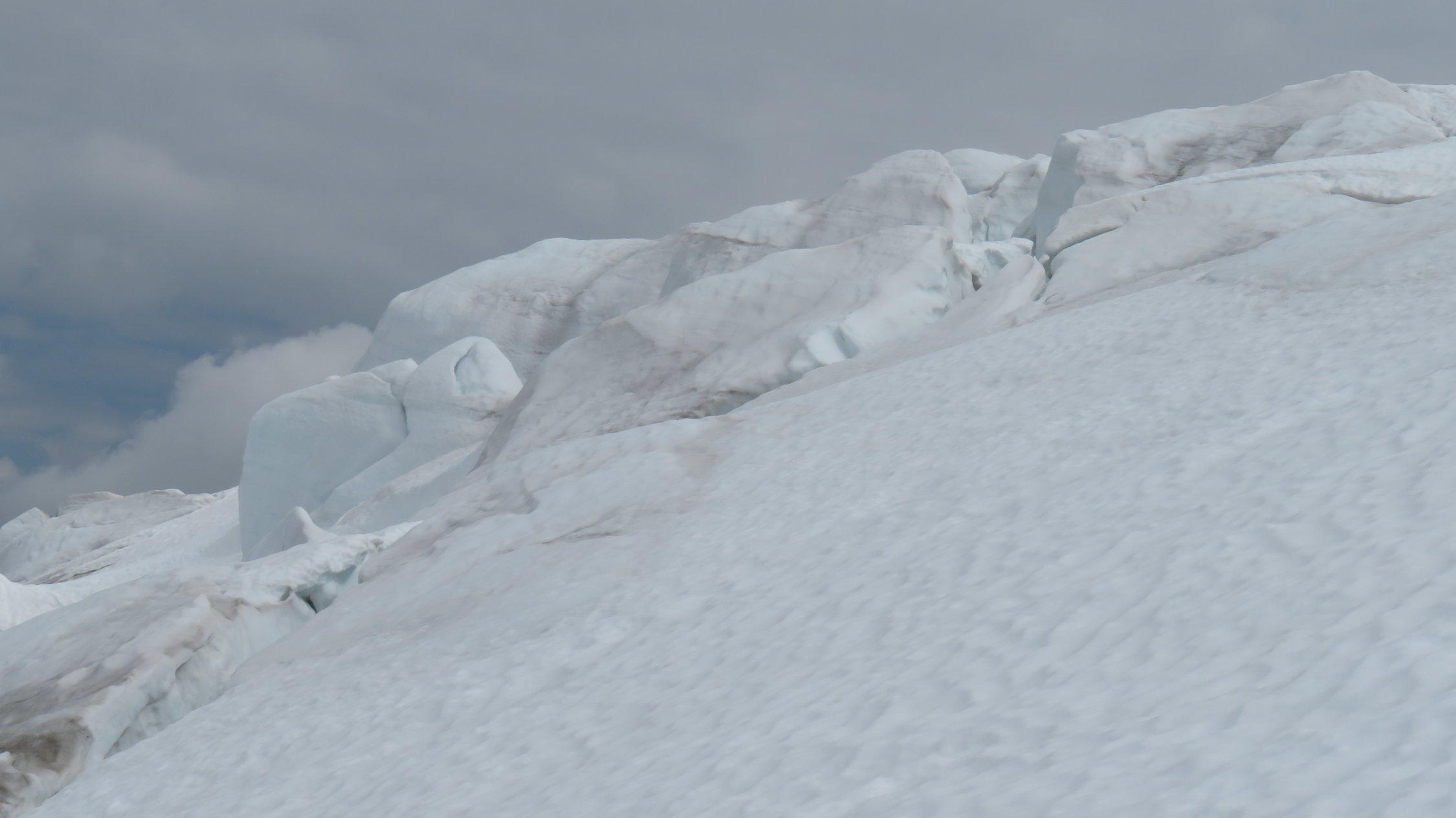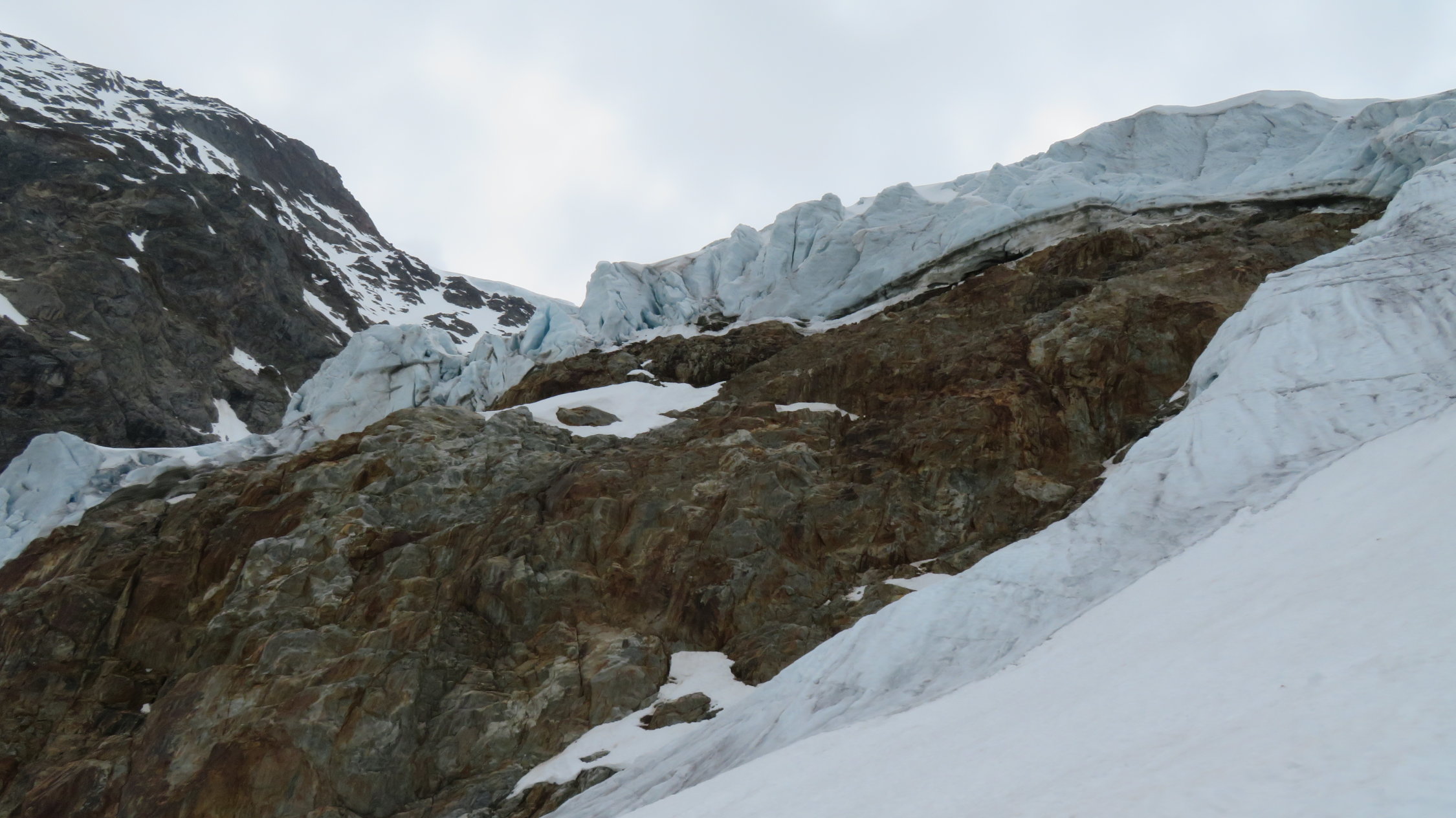 Beim erste Gletscherbruch kommt schon einiges an Blankeis zum vorschein geht aber bei guter routenwahl noch gut