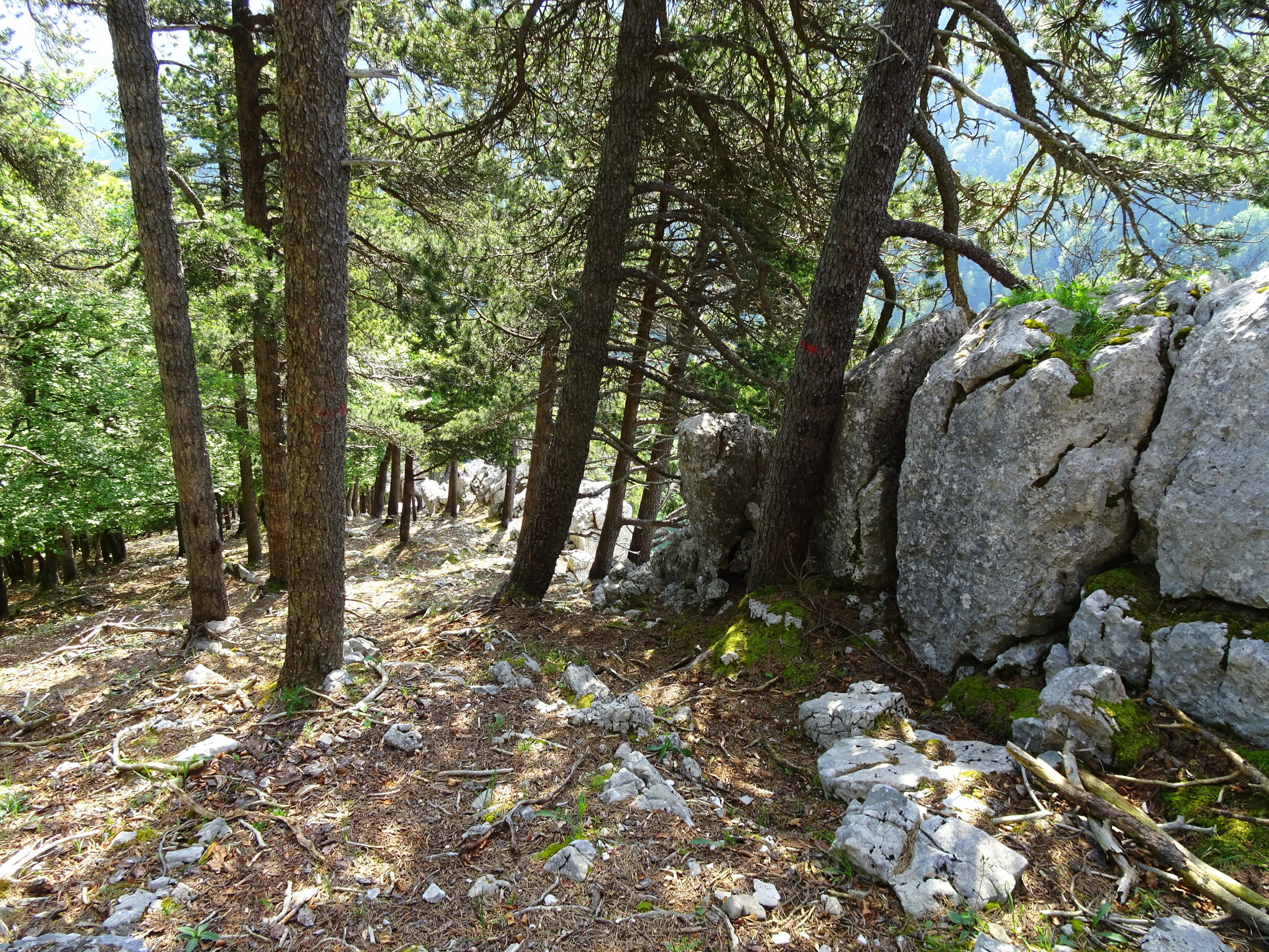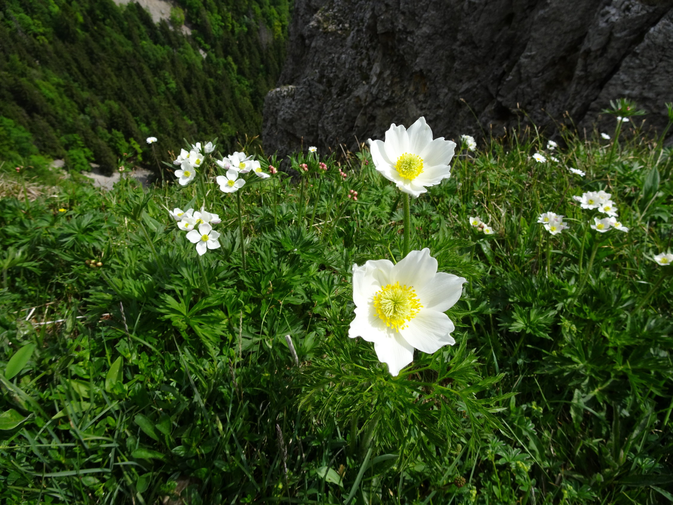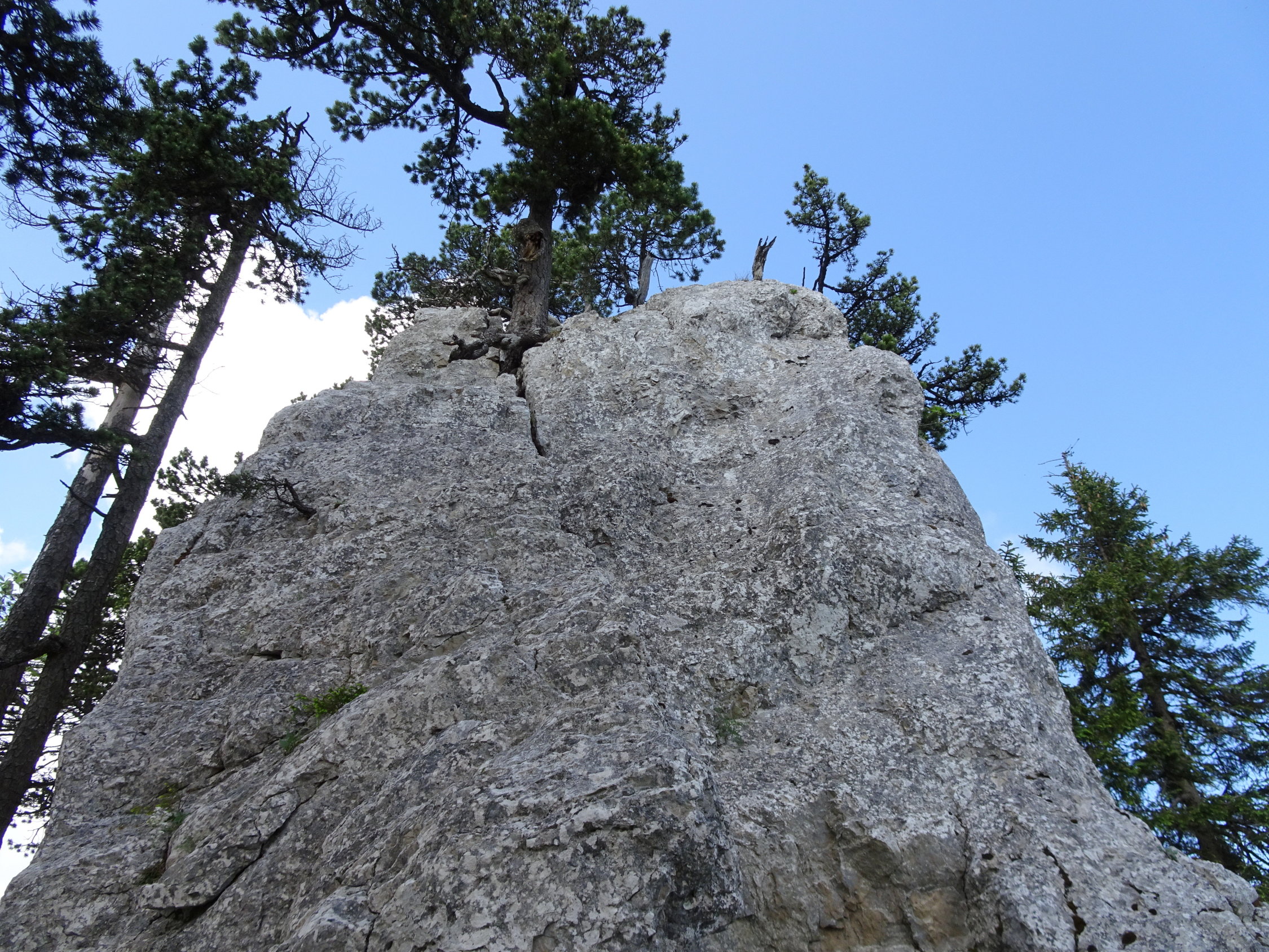 Zwiespältige Gefühle: Eine Tour die zuoberst spektakuläre Ansichten bietet, viele Blumen und eine gute Wahl an gut beschilderten Wander- und Bergwege bietet. Auf dem Weg zum Dos d'Ane habe ich mich gefühlt wie "Früher". Weg suchen (was eigentlich Niemandem schadet), und die Kletterei auf dieser Route kommt etwas zu kurz (da kann der Grat nichts dafür). Will man einen schönen Block oder ein kleines Wändchen besteigen, muss man sich zuerst mit den allgegenwärtigen Bäumen und abgebrochenen Ästen auseinandersetzen. Mein Ohr hat eine Marke von einem spitzen Ast bekommen. Sieht man aber plötzlich die Riesenwand des Creux zwischen den Tannen auftauchen, ist man ehrfürchtig und überrascht. Also, hat sich doch die Mühe gelohnt.