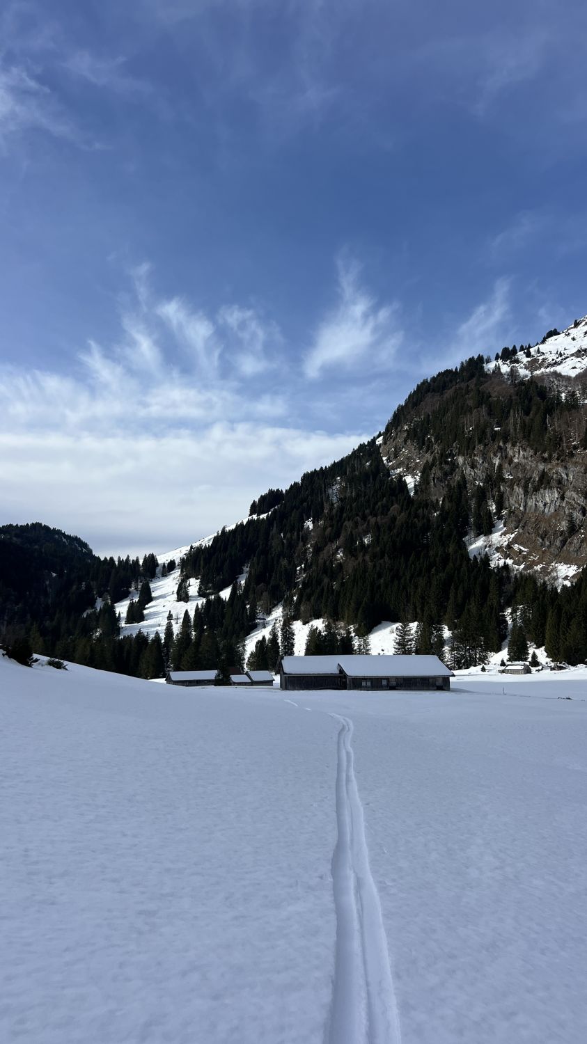 Abfahrt bis Unterwasser ging prima. Der Schnee reichte gerade bis ins Dorf.