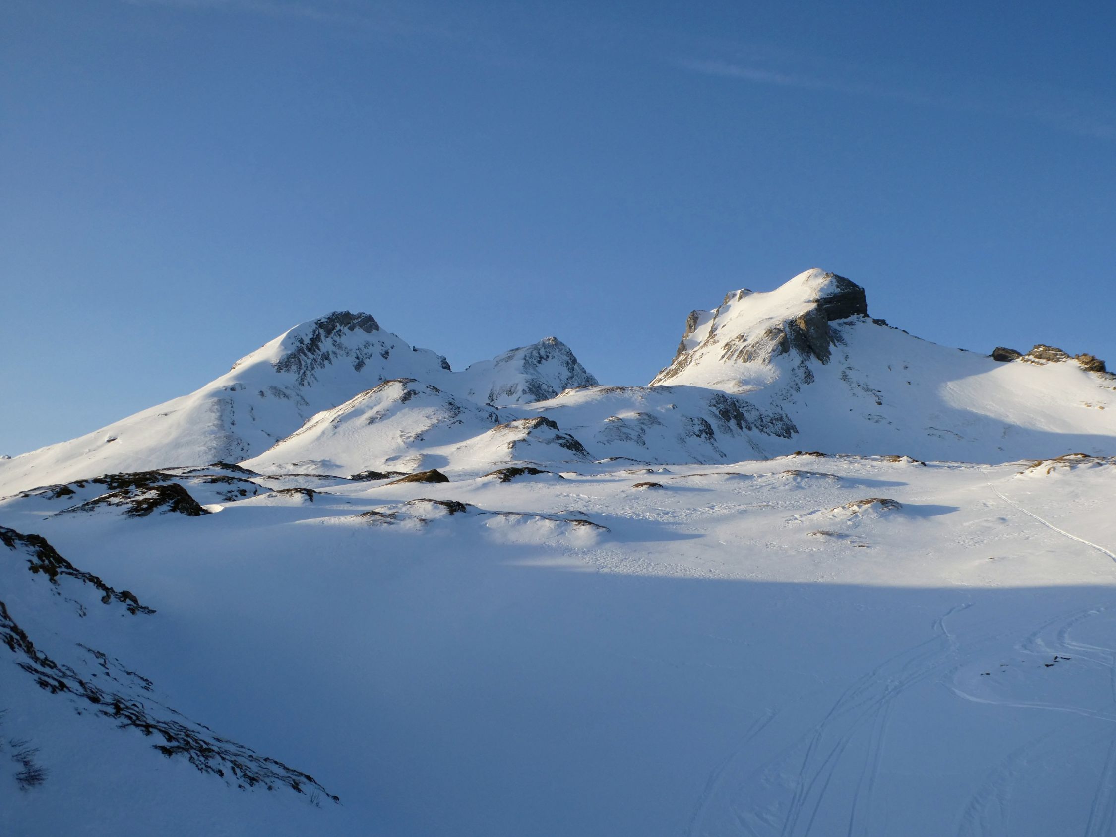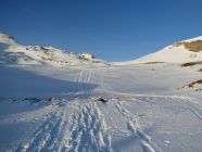 Obwohl beim Berghaus Malbun knapp nach mir 5 oder 6 Skitouren-Gruppen starteten, war ich im Aufstieg bis zum Isisizgrat alleine unterwegs. Dort waren 2 Schneeschuh-Frühaufsteher bereits im Abstieg. Ausserdem war ein Skitourer im Aufstieg Richtung Fulfirsten zu sehen.