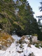Für Schneeschuhe sind die Verhältnisse noch gut, während es für die Skitourer immer schlechter wird. Es liegt allgemein wenig Schnee und die Passagen im Wald apern immer mehr aus.
