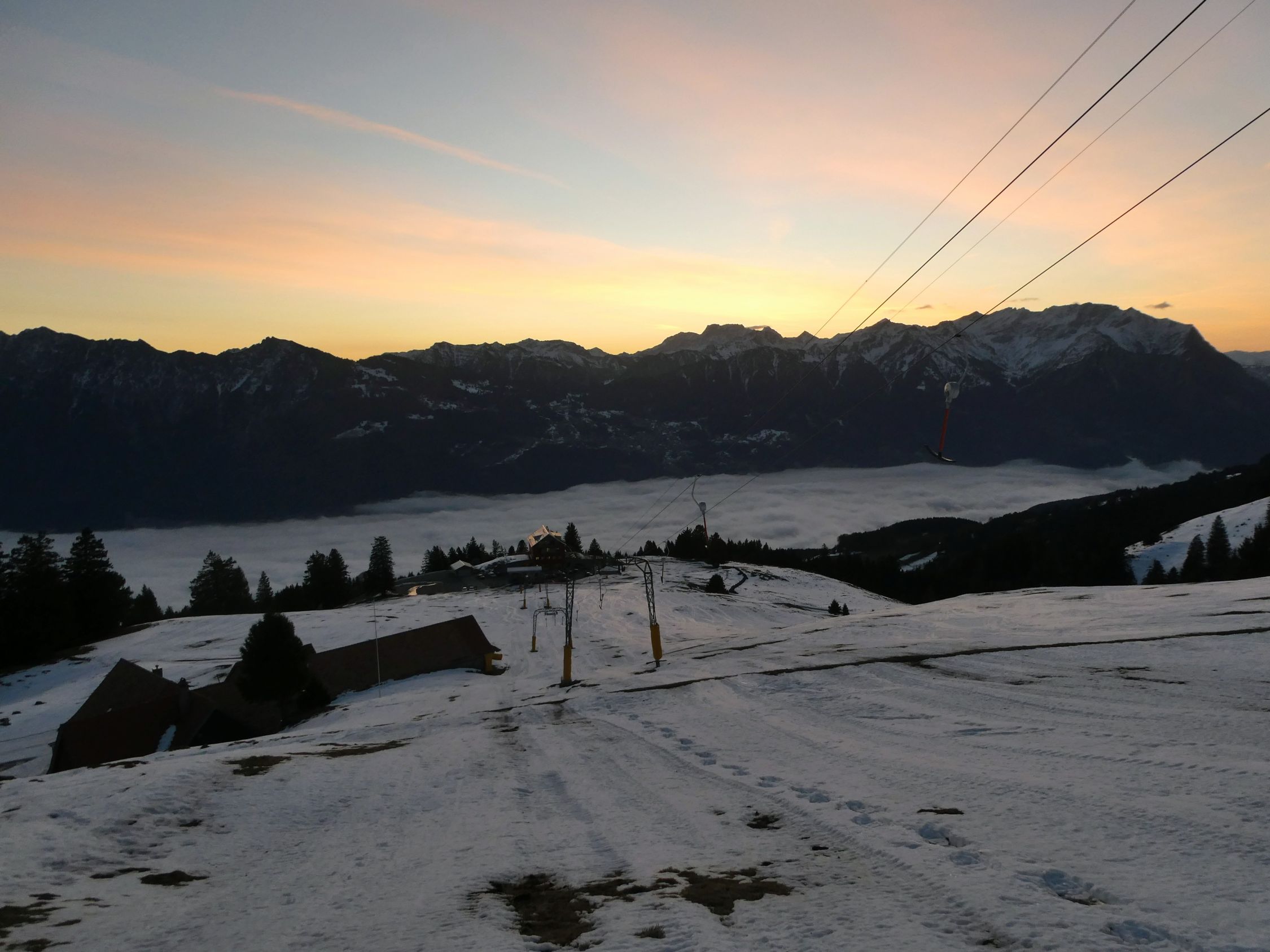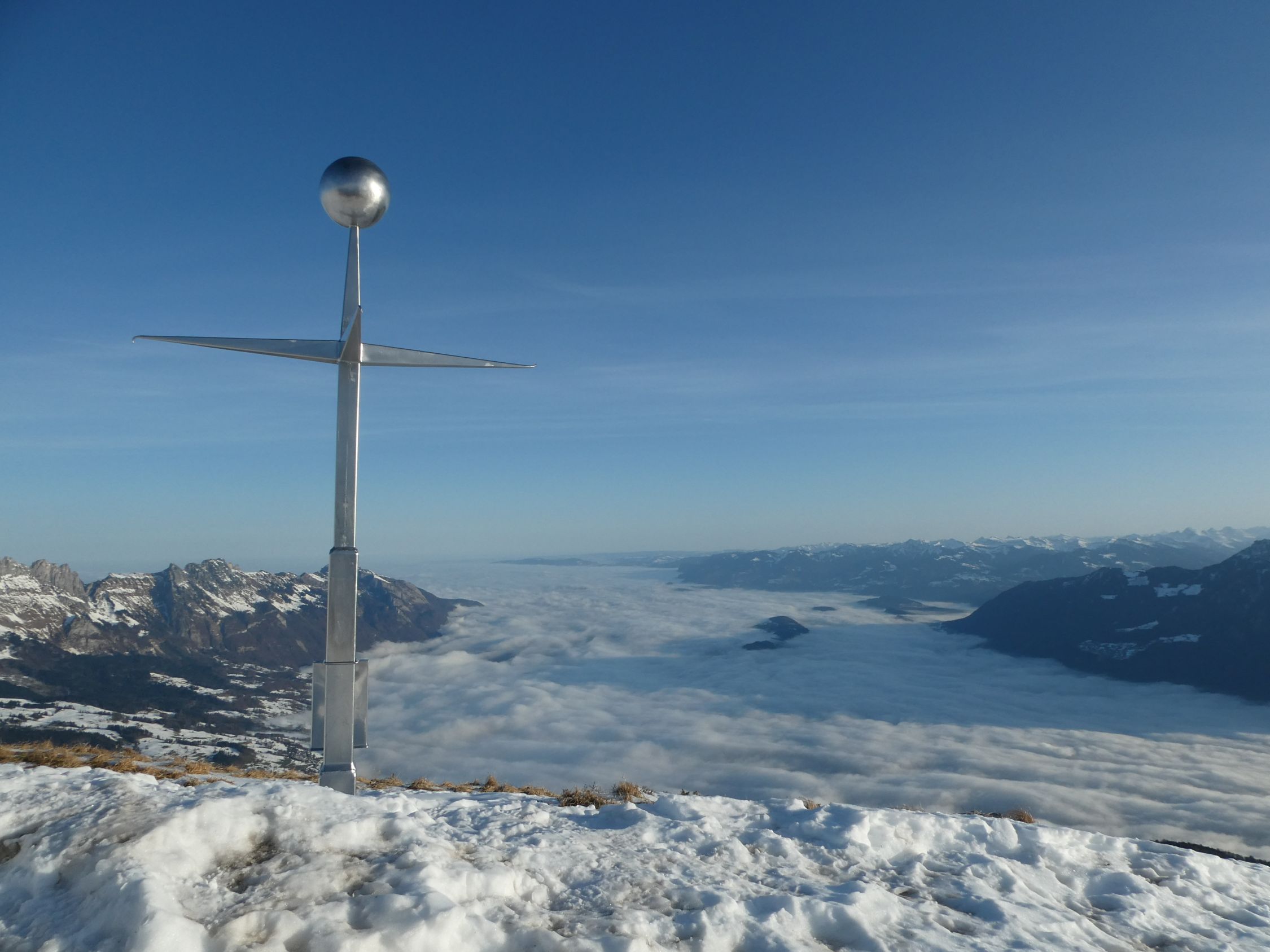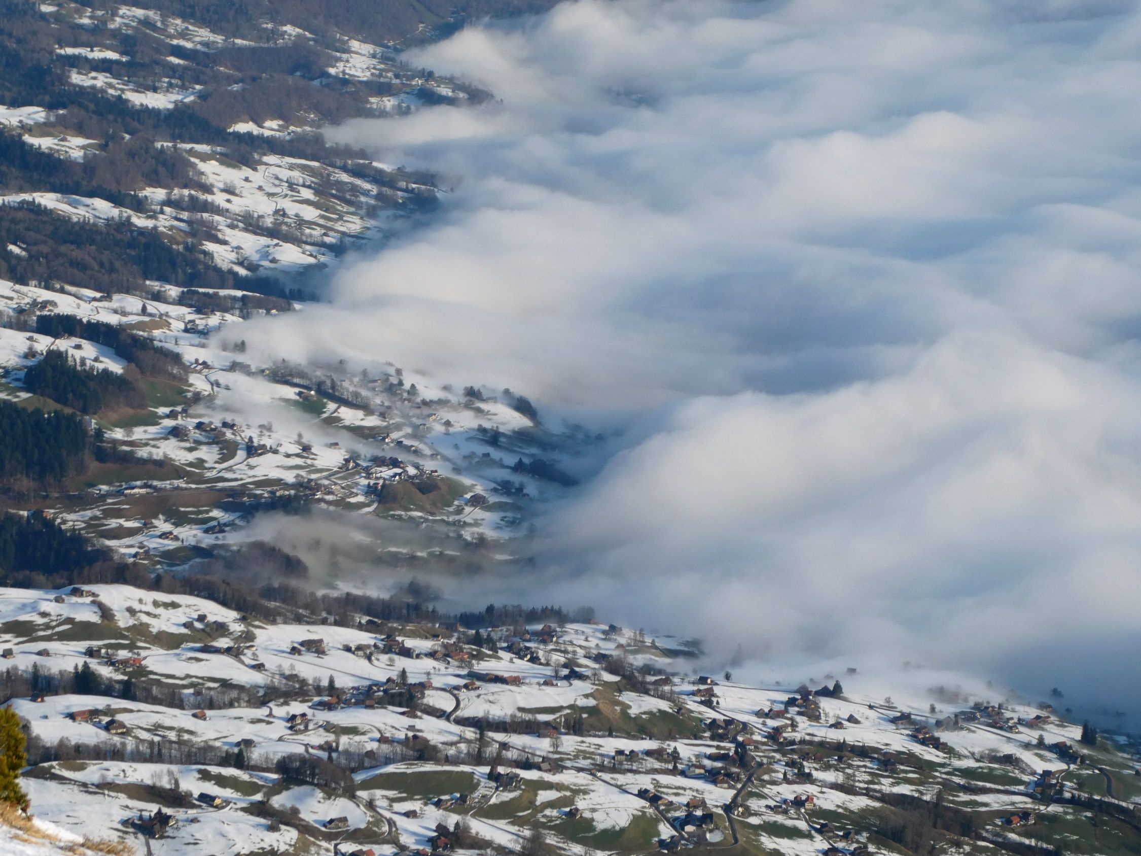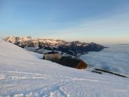 Der Föhn wehte heute stark, das Wetter war aber prächtig. Gegen Mittag löste sich der Nebel im Tal zunehmend auf.