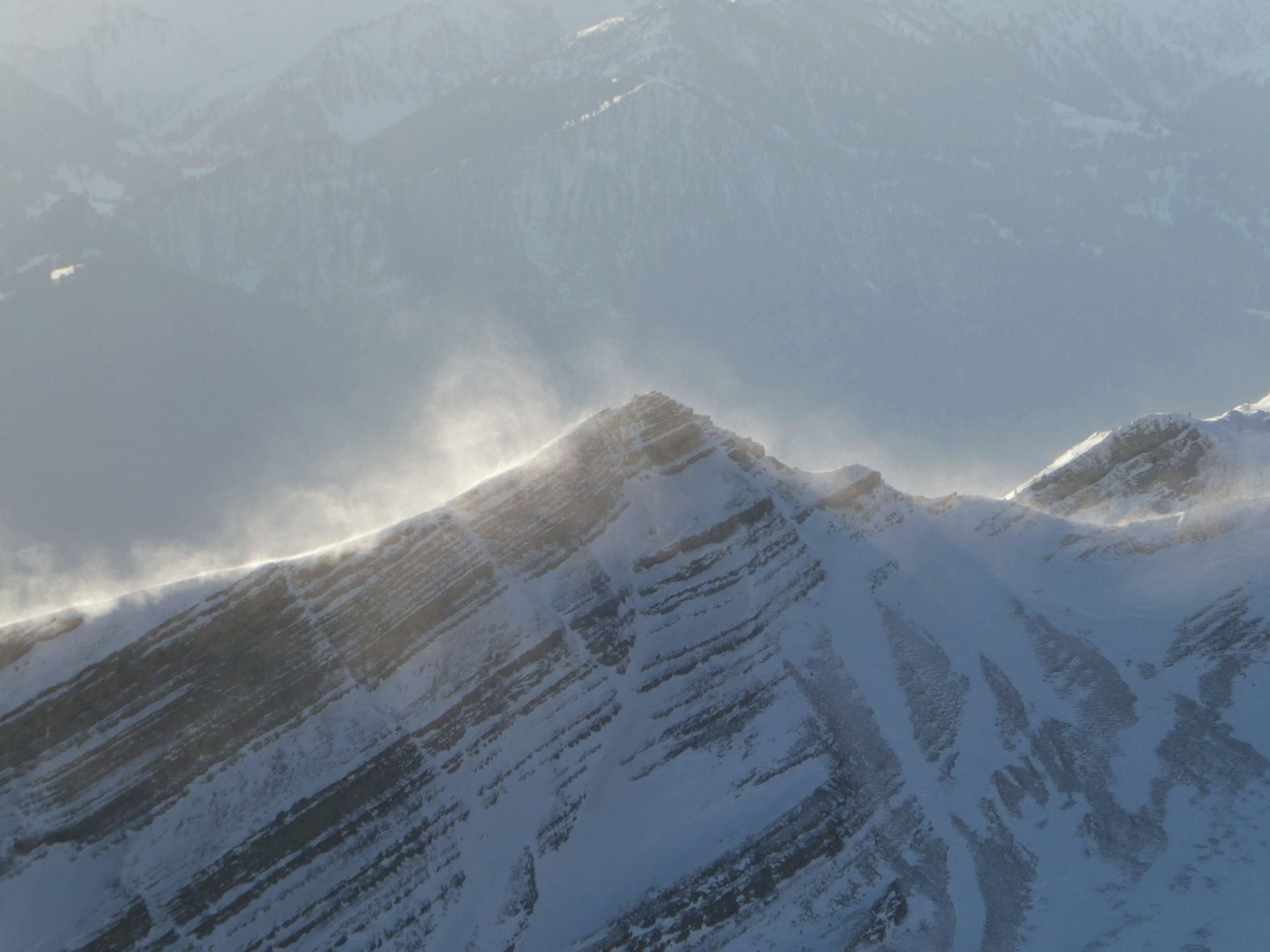 Heute gab es, wohl auch aufgrund des starken Föhns, weder Gämsen, noch Birk- oder Schneehühner zu sehen.