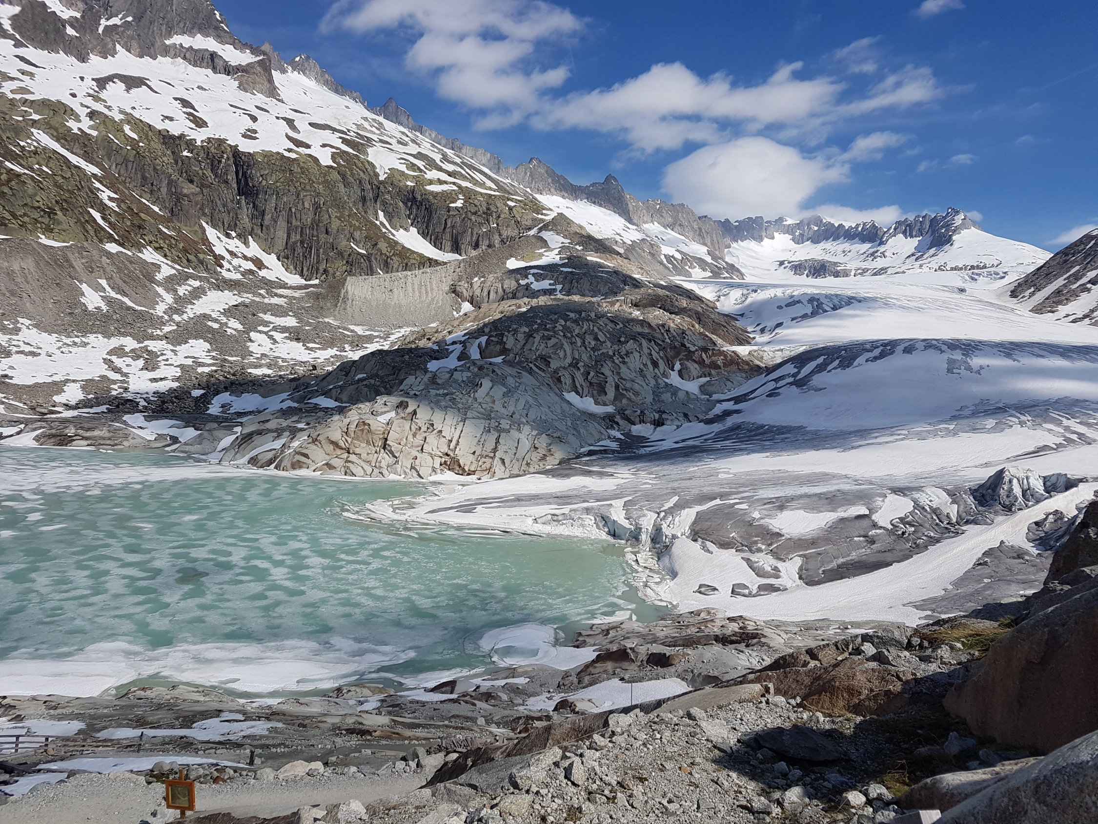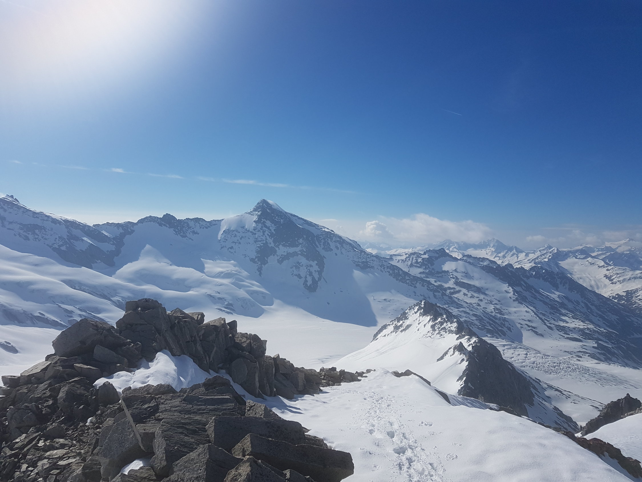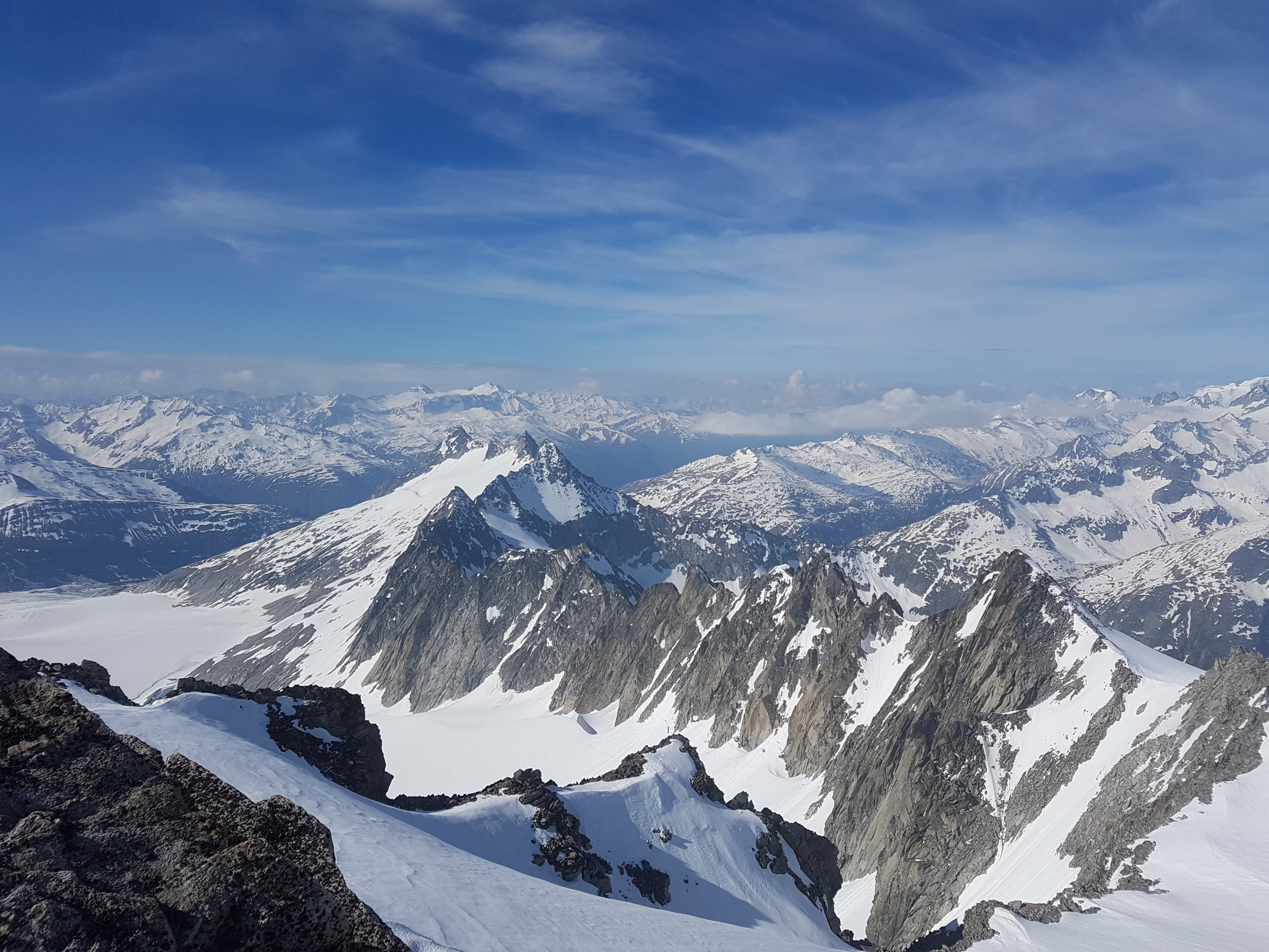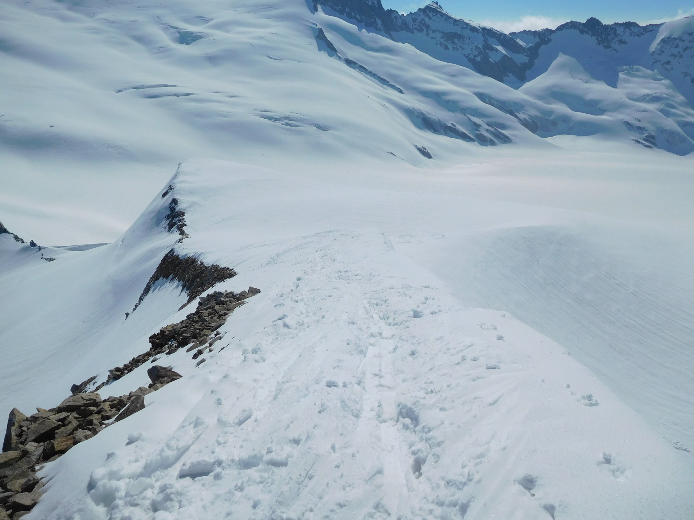 Start der Tour am 6.15 Uhr beim Belvedere, bei schönstem Wetter um die +6°, nach einem kurzen Fussmarsch konnten die Ski bei der Eisgrotte montiert werden, der Rhonegletscher hatte schon einige Blankestellen beim Aufstieg, die Flächen waren leicht ruppig vom letzten Regenfall, der Aufstieg in Richtung Tieralplistock war schon leicht sulzig beim Aufstieg, oben am Gipfelhang nach etwas Pulverschnee vom letzten Niederschlag, die letzten Meter noch zu Fuss zum Gipfelkreuz, die ersten grossen Wolkenfelder waren schon Westen im Anmarsch, Abfahrt am 9.30 Uhr bei recht guten Verhätnissen, unten am besten links am Rande Abfahren, da sind keine Blankenstellen.
