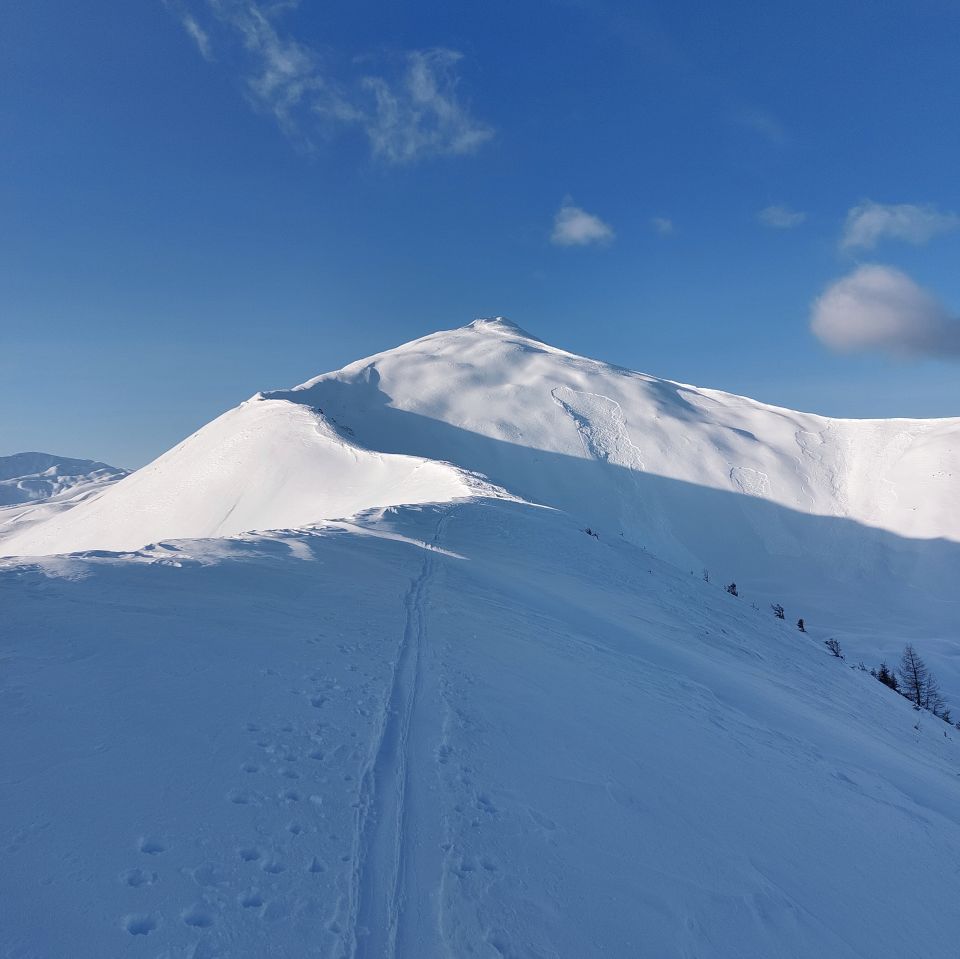 Erst einmal ein kleiner Exkurs in die kleinräumige Temperaturverteilung: 7.30 in Landquart +8°, in Grüsch -5°, Furna +2° und Parkplatz Hinterberg -1°. Steile Diretrissima-Spur auf den Gipfel, einige Schneebretter sind in den umliegenden Hängen v.a. Nord-Ost Exposition schon runter. Abfahrt durch die Wöschchuchi, Rothornhänge meist schon entladen, Schnee meist pulvrig, tw. auch leicht angedeckelt. Im Aufstieg vom Laubenzug bis Katschlag schon einige apere Stellen im Wald. Noch einige Föhntage und es heisst ab und an Schi tragen. Weiter noch auf den Fadeuer, ist doch recht arg verfahren, im Wald unten genügend Schnee, wenn auch nicht üppig.