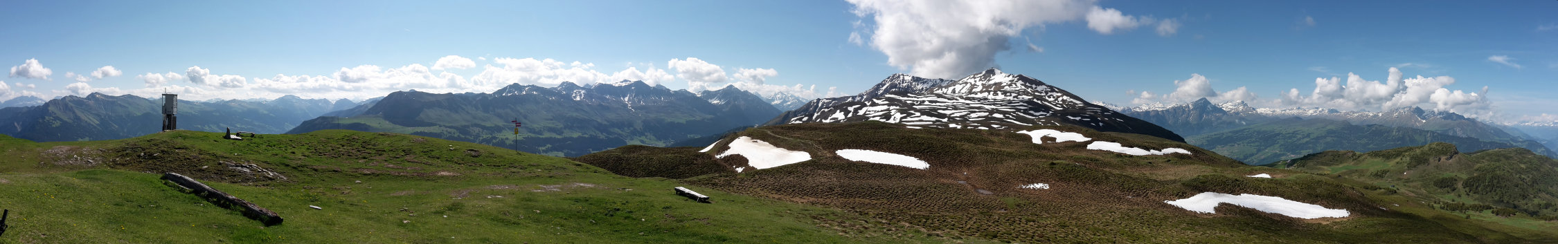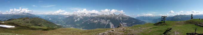 Abkürzung mit der Luftseilbahn Rhäzüns-Feldis (GA und Velo-GA gültig!), gestartet um 8:50 in Feldis, auf guter Betonstrasse hoch zur Alp dil Plaun, ab Skihütte Term Bel heisst es dann schieben, tragen, schwitzen, fluchen bis zum "Gipfel", die tolle Rundsicht entschädigt fürs Schieben :-)