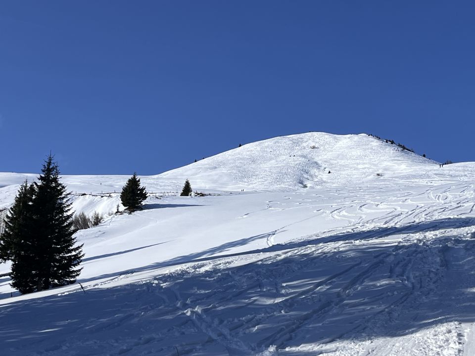 Abfahrt durch Wald geht gut aber stellenweise knapp schnee durch die vielen Stemmbögler. Unten leichter Deckel auf der letzten freien Wiese vor dem PP.