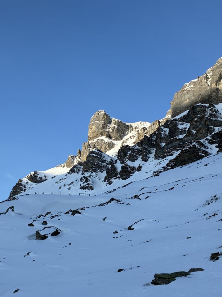 Heute vermeiden wir es, uns mit dem Altschneeproblem und den Sastrugi an den Nordhängen zu konfrontieren, und machen uns stattdessen auf die Suche nach Sulzschnee an einem schönen Südhang. Start um 8:30 Uhr in Urnerboden bei -2 Grad. Am Klausenpass um 10:00 Uhr und am Ende des Couloirs kurz vor 11:30 Uhr. Mit Ski und Spitzkehren bis oben machbar. Es war zu warm, und wir haben die letzten Meter zum Gipfel ausgelassen und sind direkt abgefahren. Durchgehend mild, der Schnee war über Nacht nicht durchgefroren. Trotzdem eine genussvolle Abfahrt bei nassem und sulzigem Schnee. Wunderschönes Gelände und Wetter. Kleine Steinkontakte am Südhang, die man mit Vorsicht gut vermeiden kann. Die Passstrasse ist bis Urnerboden bedeckt und mit Ski befahrbar.