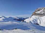 Strasse im Aufstieg abgekürzt durch den Wald, für Abfahrt würde der Schnee nicht reichen. Nordhänge relativ gut bedeckt und leicht pulvrig/zerfahren, in der Sonne immer wieder Grass und Steine. Beim defensiven Fahren ohne Steinkontakt möglich. Im Abfahrt gehalten an schon gut gefahrene Hänge da Wildruhezone. Teilweise musste man guten Durchgang durch die Karrenhügel suchen. Mit Splitboard 2 mal abgezogen und aufwärts gelaufen, 1 mal kräftig rausgestöckelt. Abfahrt auf der Strasse fast nicht eisig und seitlich lockeren Schnee zu finden. Ganze Zeit eher warm und kaum Wind.