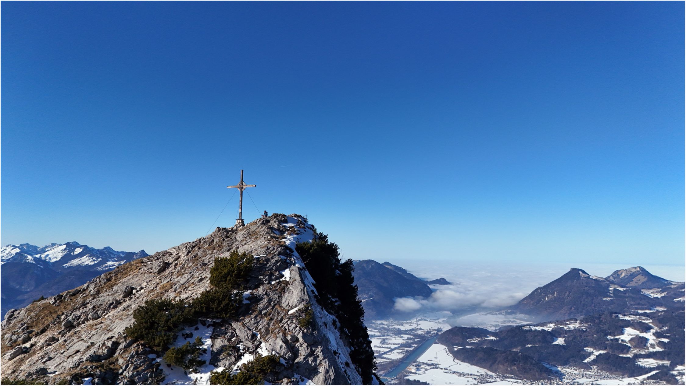 Auf dem Gipfel lebhafter Wind aus S, bereits kurz unterhalb jedoch mollig warm, wie im Frühling.