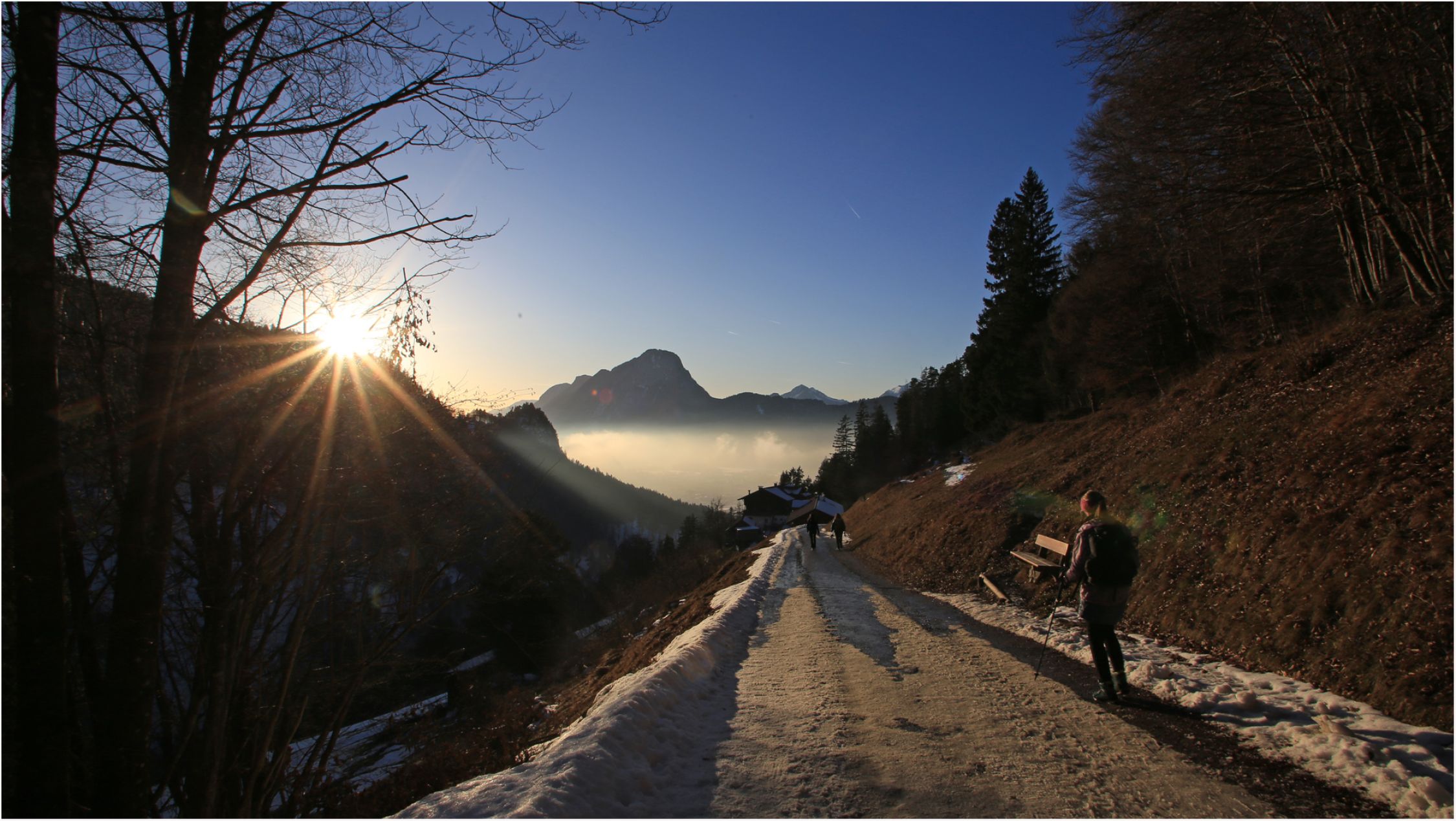 Bis zur Riezaualm mehrheitlich wenig bis gar kein Schnee, hin und wieder ein paar eisige Passagen, aber insgesamt gut zu laufen.