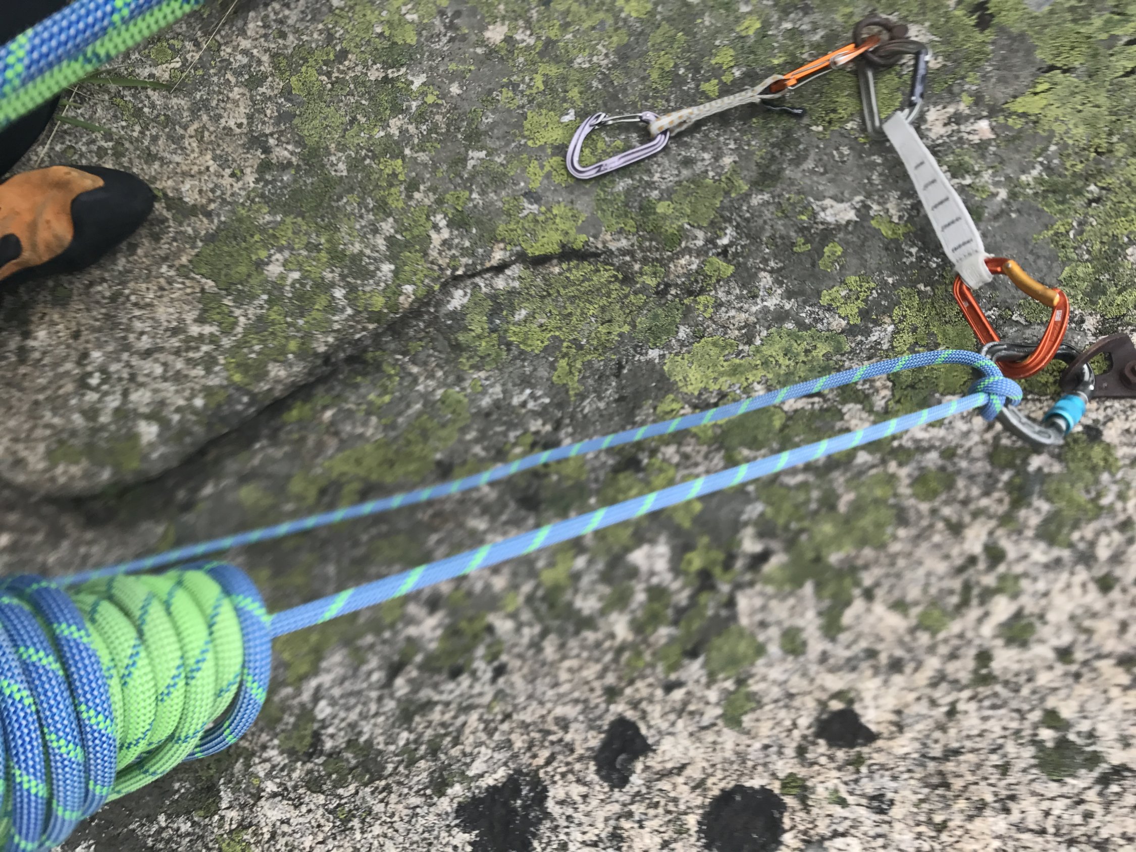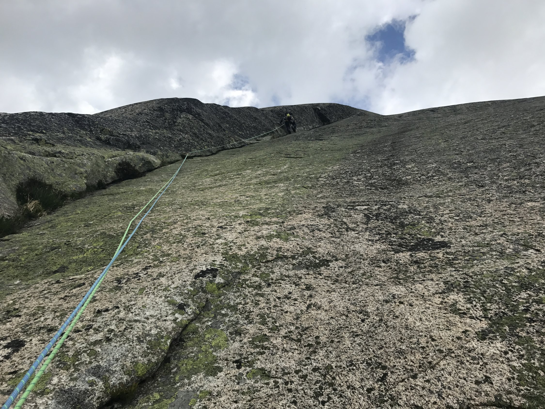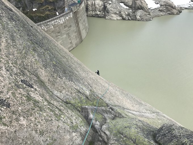 Aber die Schwierigkeiten sind wirklich auf 3 SL beschränkt. Hat man die 6a-Rissverschneidung hinter sich, kommt man sicher hoch. Die letzte Seillänge müsste man wohl gar nicht klettern und könnte vermutlich direkt links umgangen werden.
