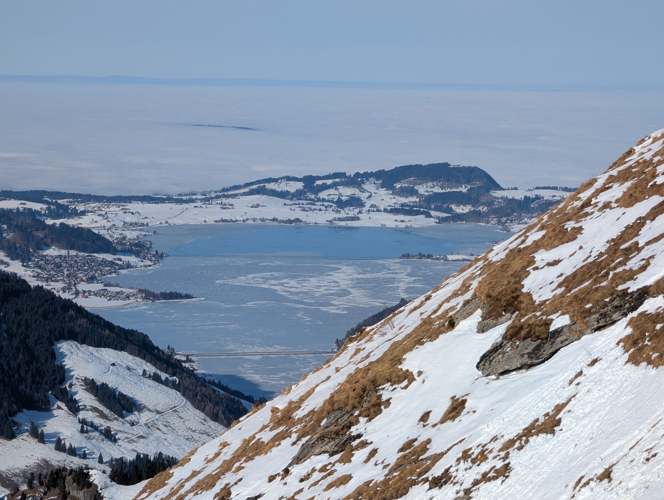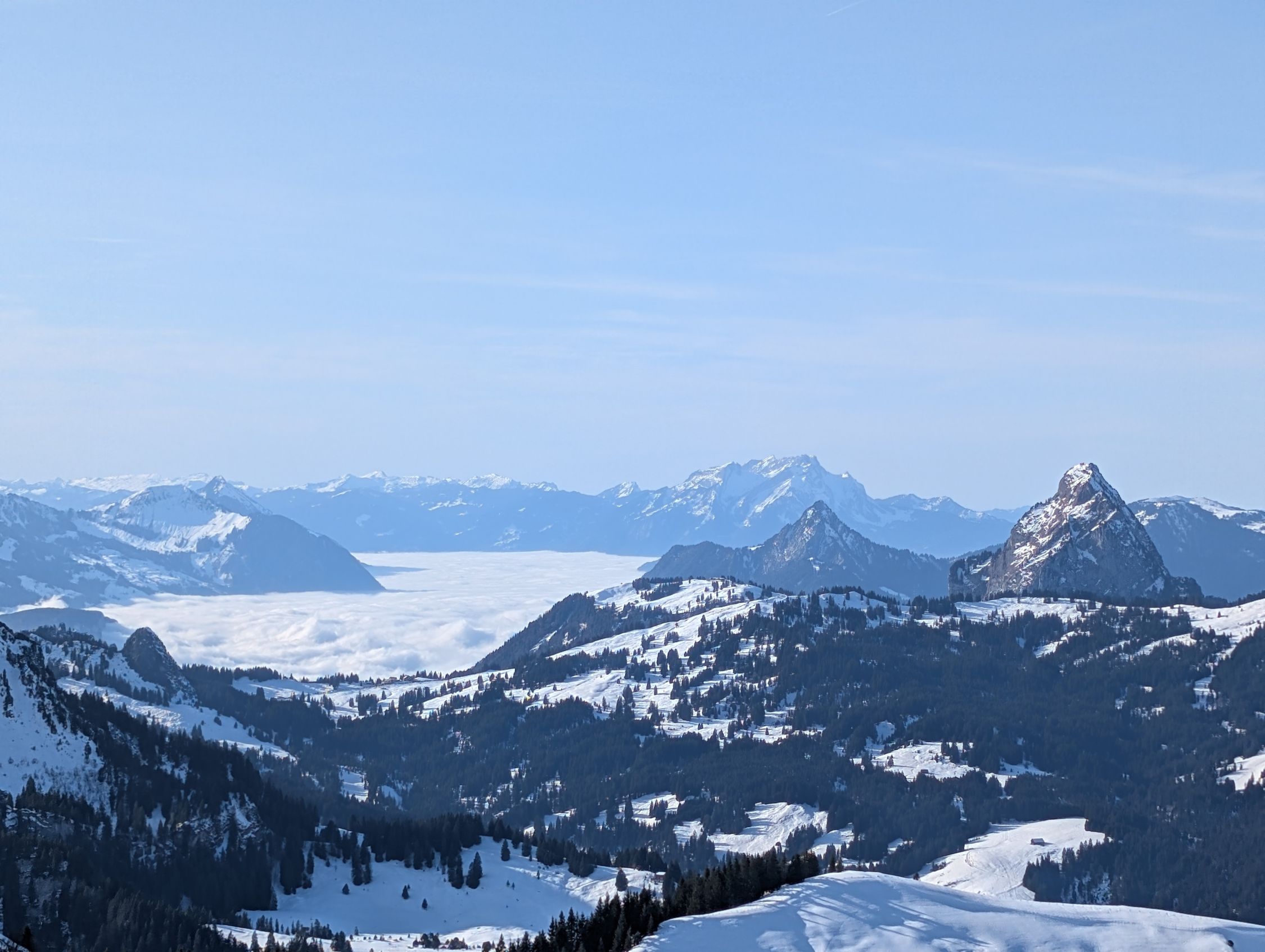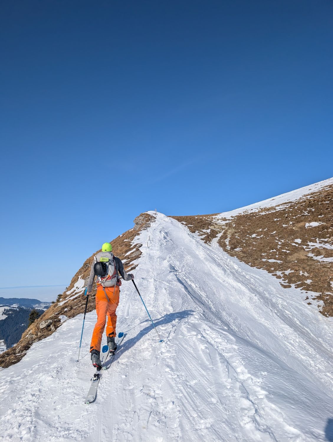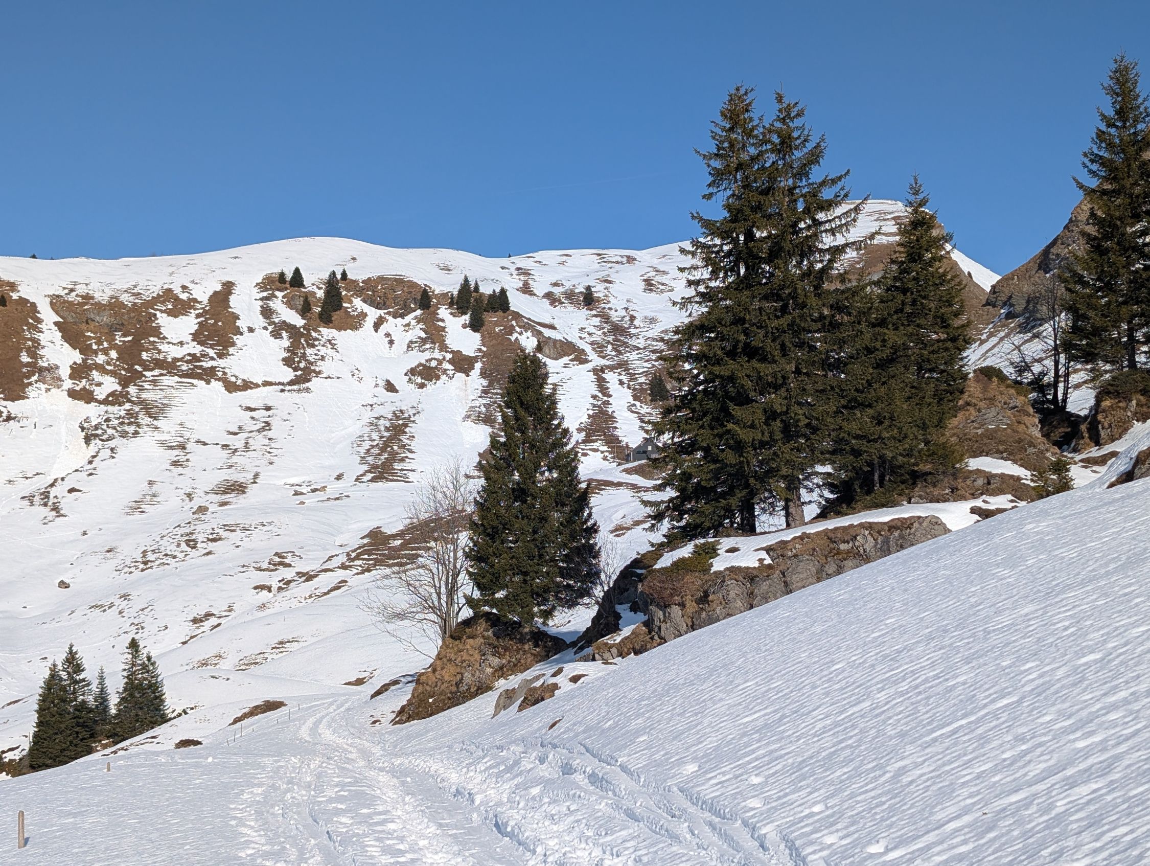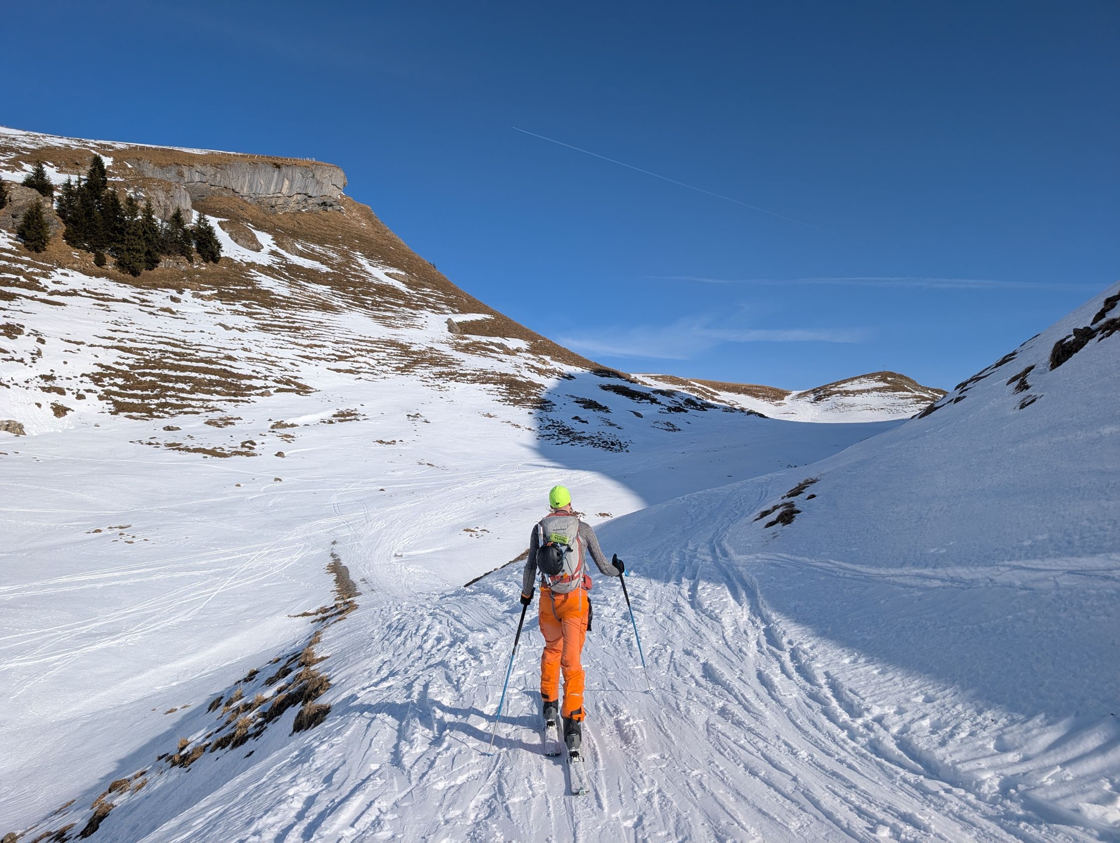 Wir sind rund um 12:00 von Chäseren aufgestiegen, nach der Besteigung des Twäribergs. Milde Temperaturen, sonnig, wolkenloser Himmel.