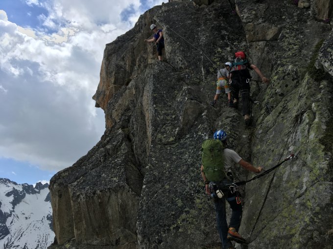 Toni Fullin hat gestern die letzten Stahlseile eingezogen und der Klettersteig präsentierte sich in einem perfekten Zustand. Die Kraxeleien am Urner Granit sind purer Genuss für Gruss und Klein.