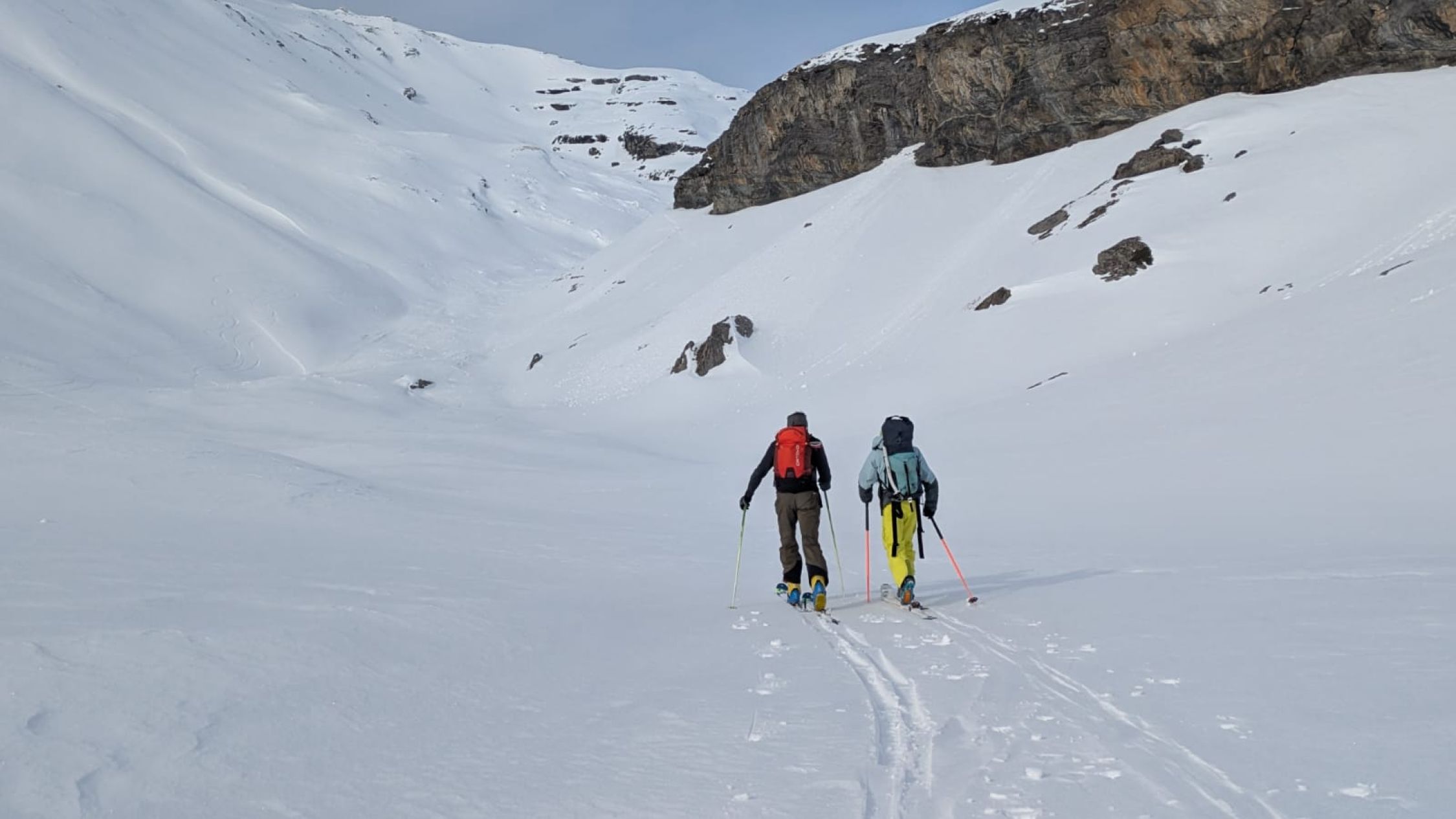 Normale Skitouren Ausrüstung. Plus Pickel und Steigeisen.