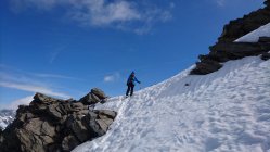 Wenig Schnee unten zum Skifahren jedoch noch sehr gut