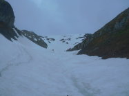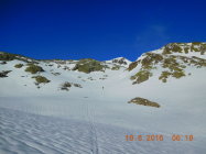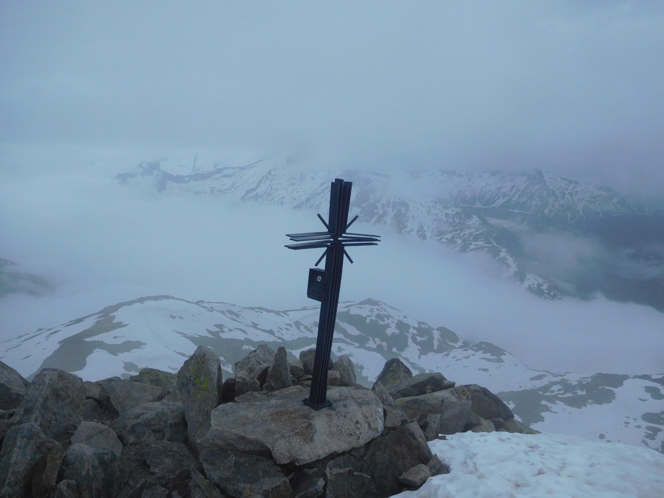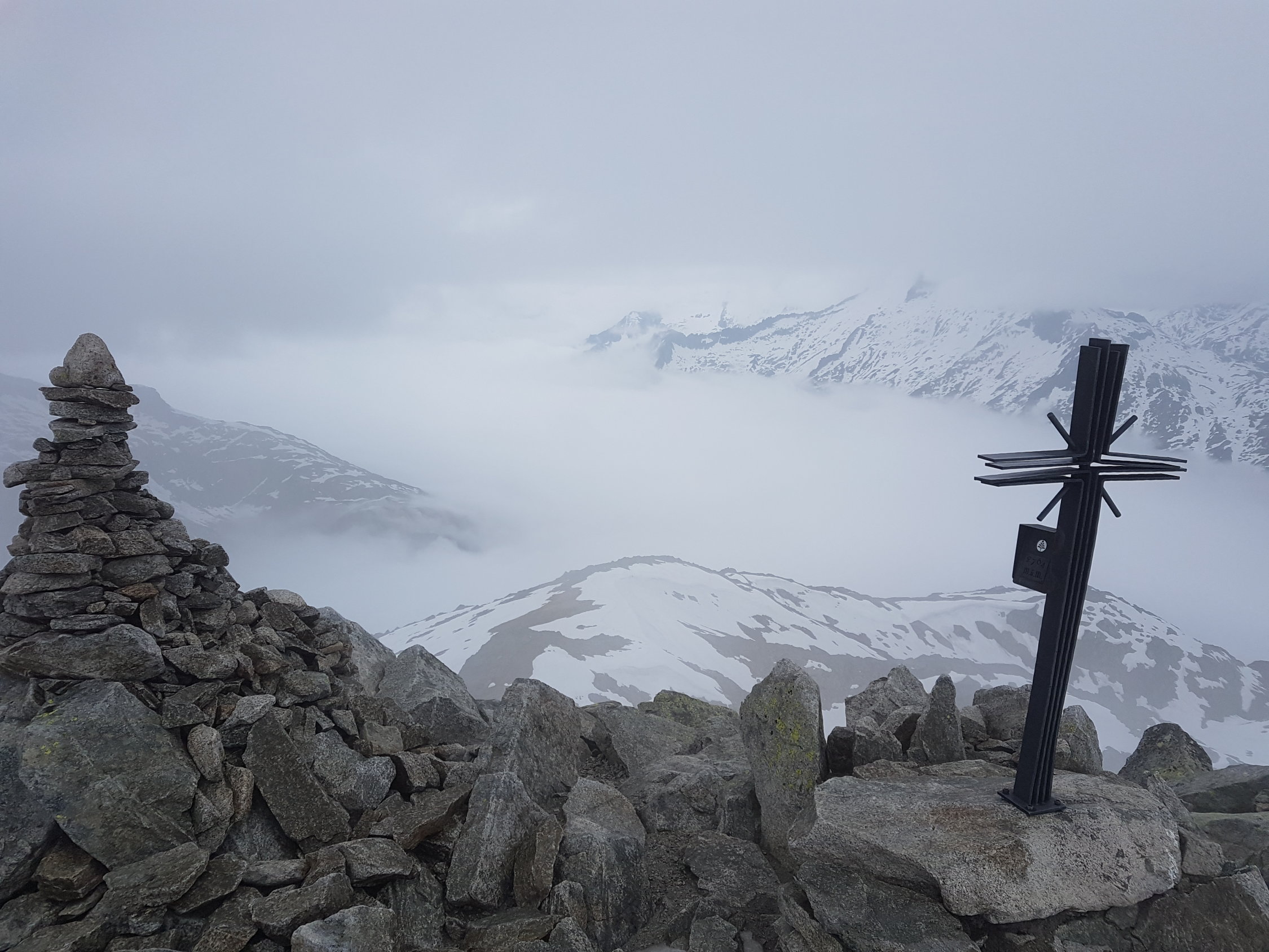 Start der Tour am 7.15 Uhr beim Grimselpass bei +6°, das Wetter ist bedeckt aber trocken, der Altschnee heute sehr kompakt, die letzten Meter zu Fuss zum Gipfel,