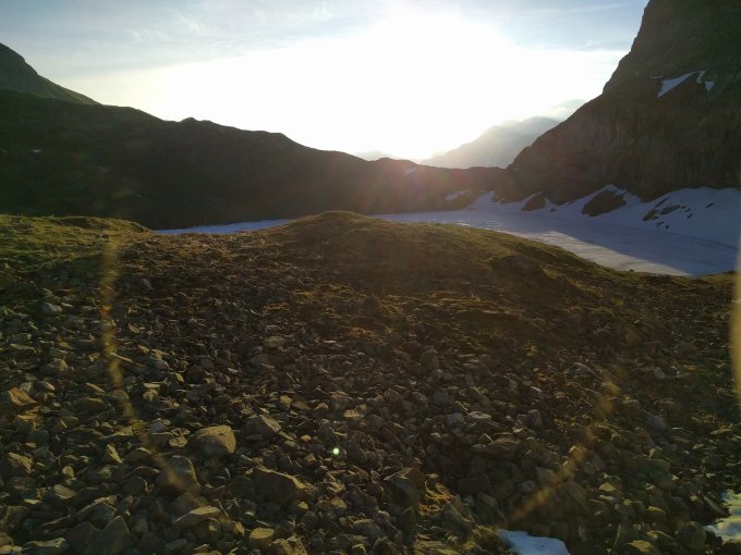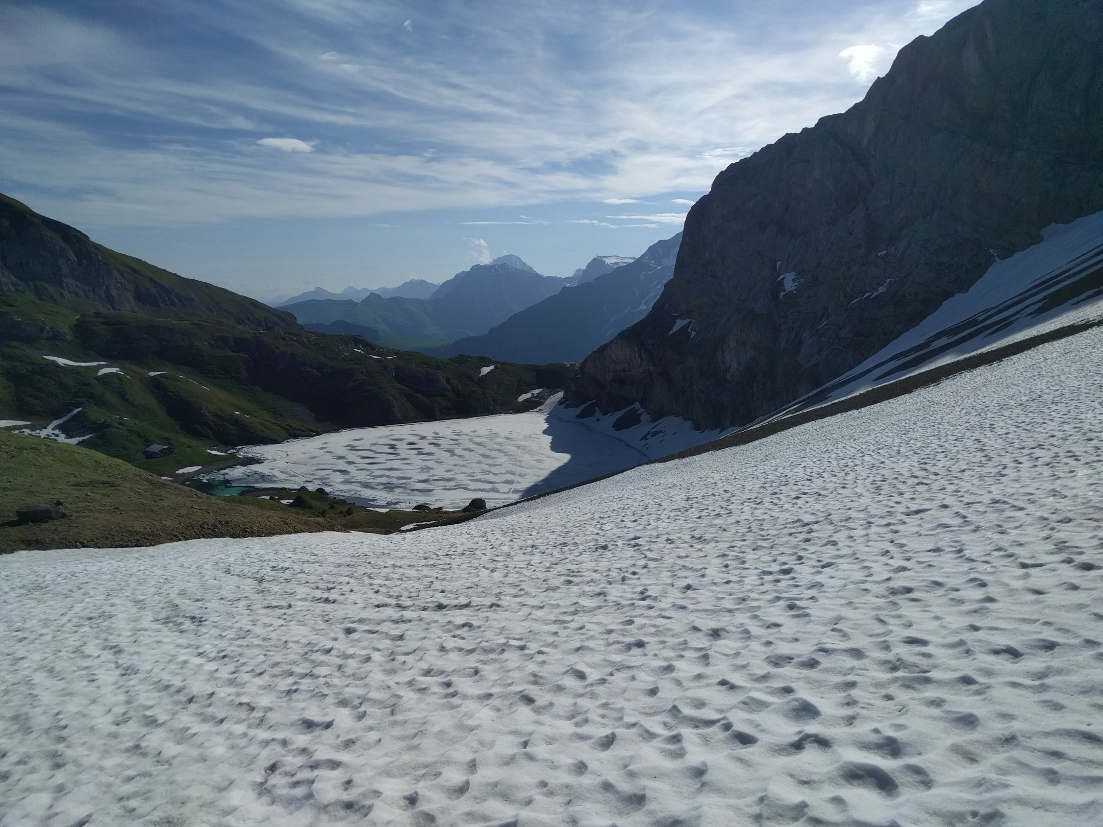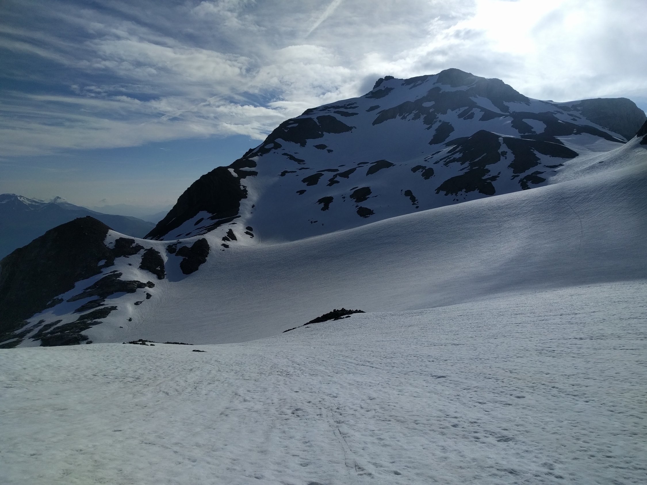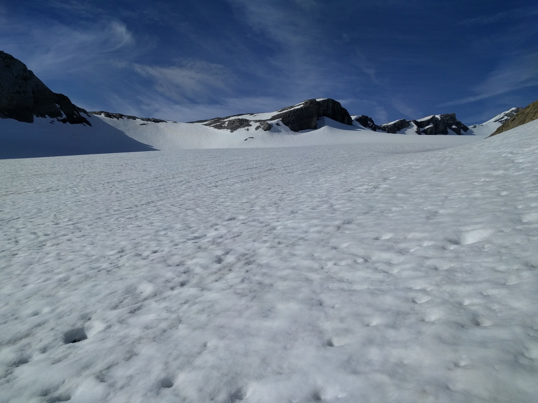 Start 5:00 auf der Iffigenalp. Fussaufstieg bis zum Iffigsee, das Couloir unterhalb ist stellenweise eingebrochen. Auch oberhalb immer mehr ausgeaperte Stellen. Abfahrt vom Sattel oberhalb des Chilchligletschers.