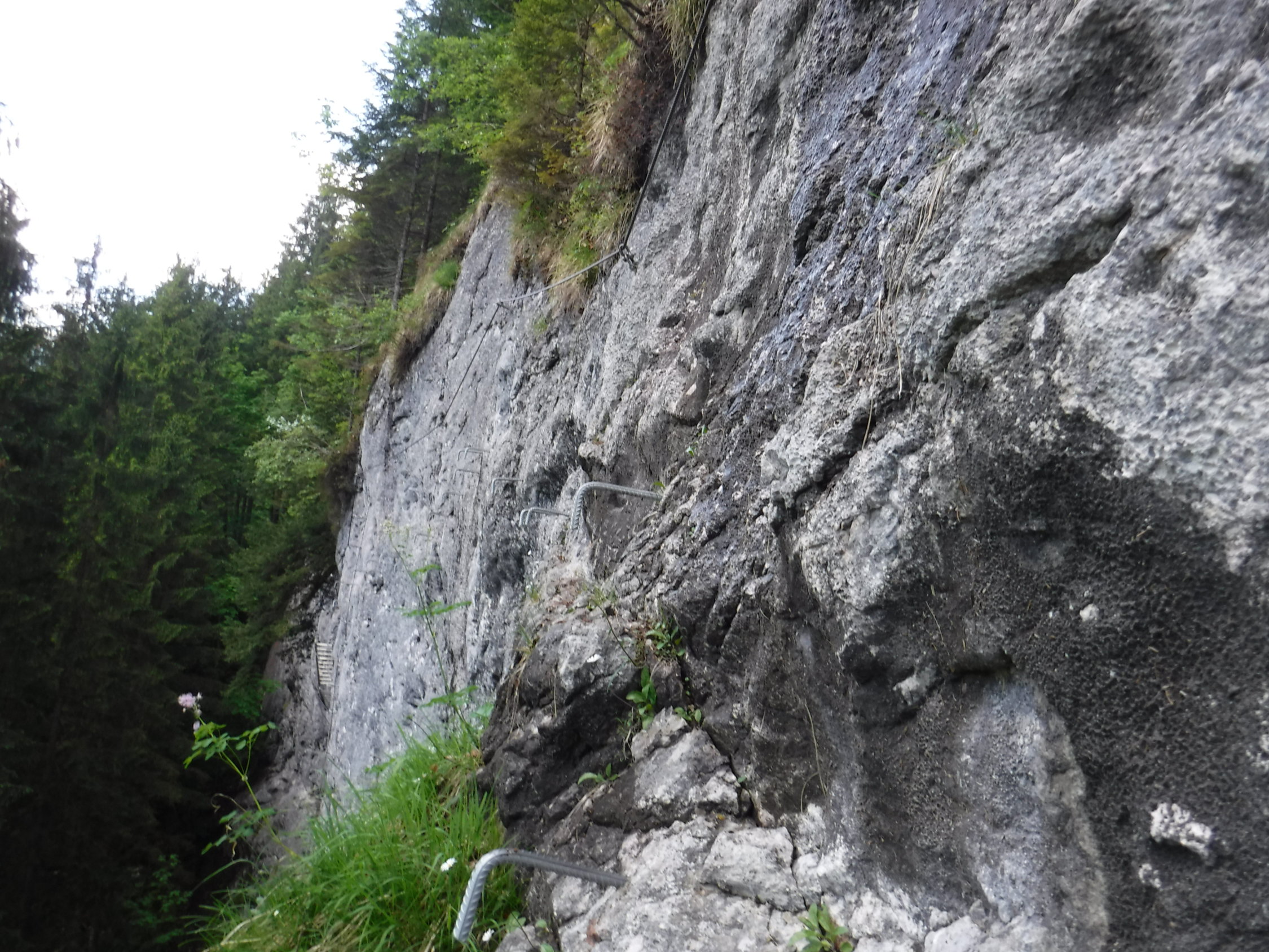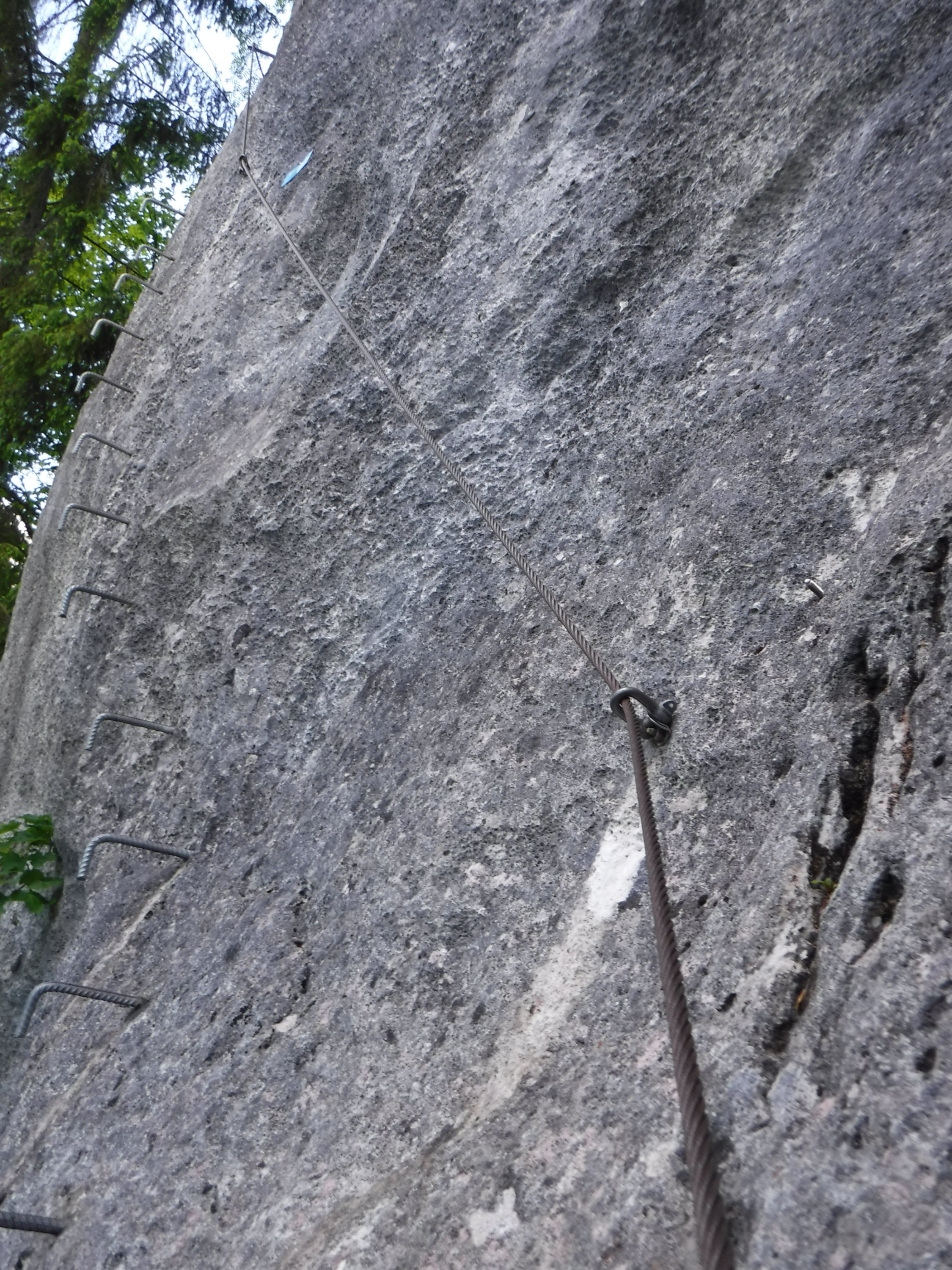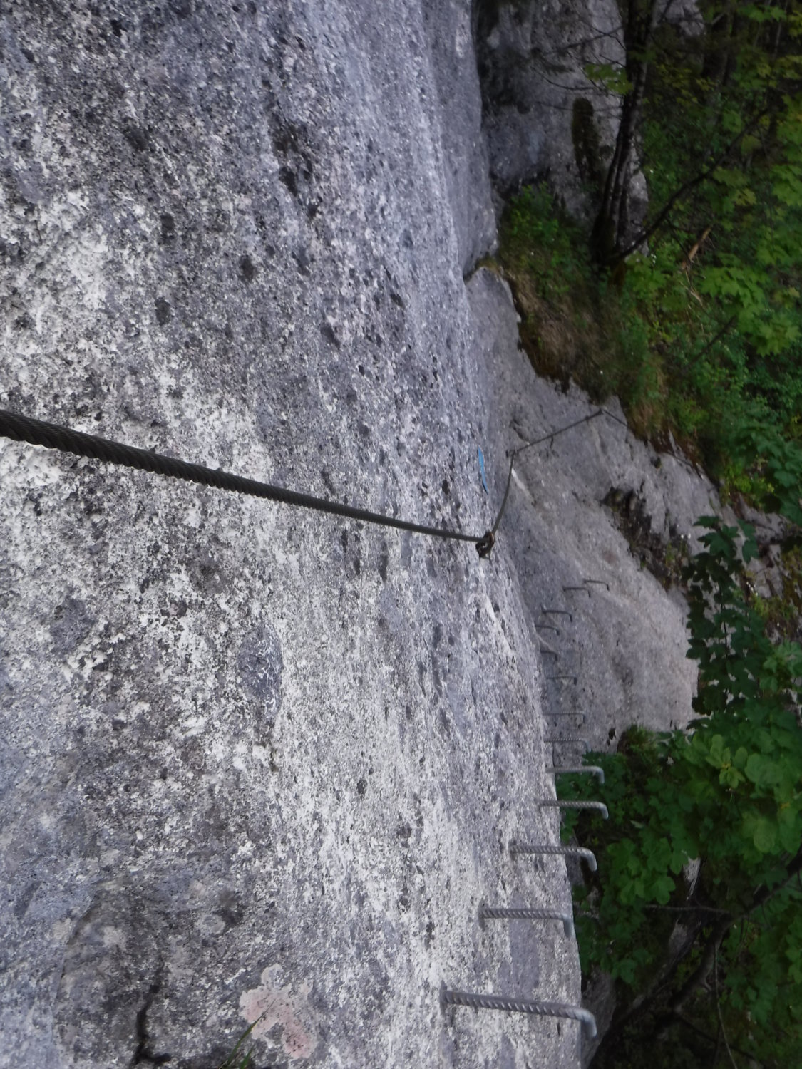 Von dieser sportlichen Einstiegsvariante abgesehen, ist der Steig m.E. auch für Einsteiger geeignet (2 Notausstiege). Für Kinder hängt das Sicherungsseil allerdings manchmal sehr hoch.