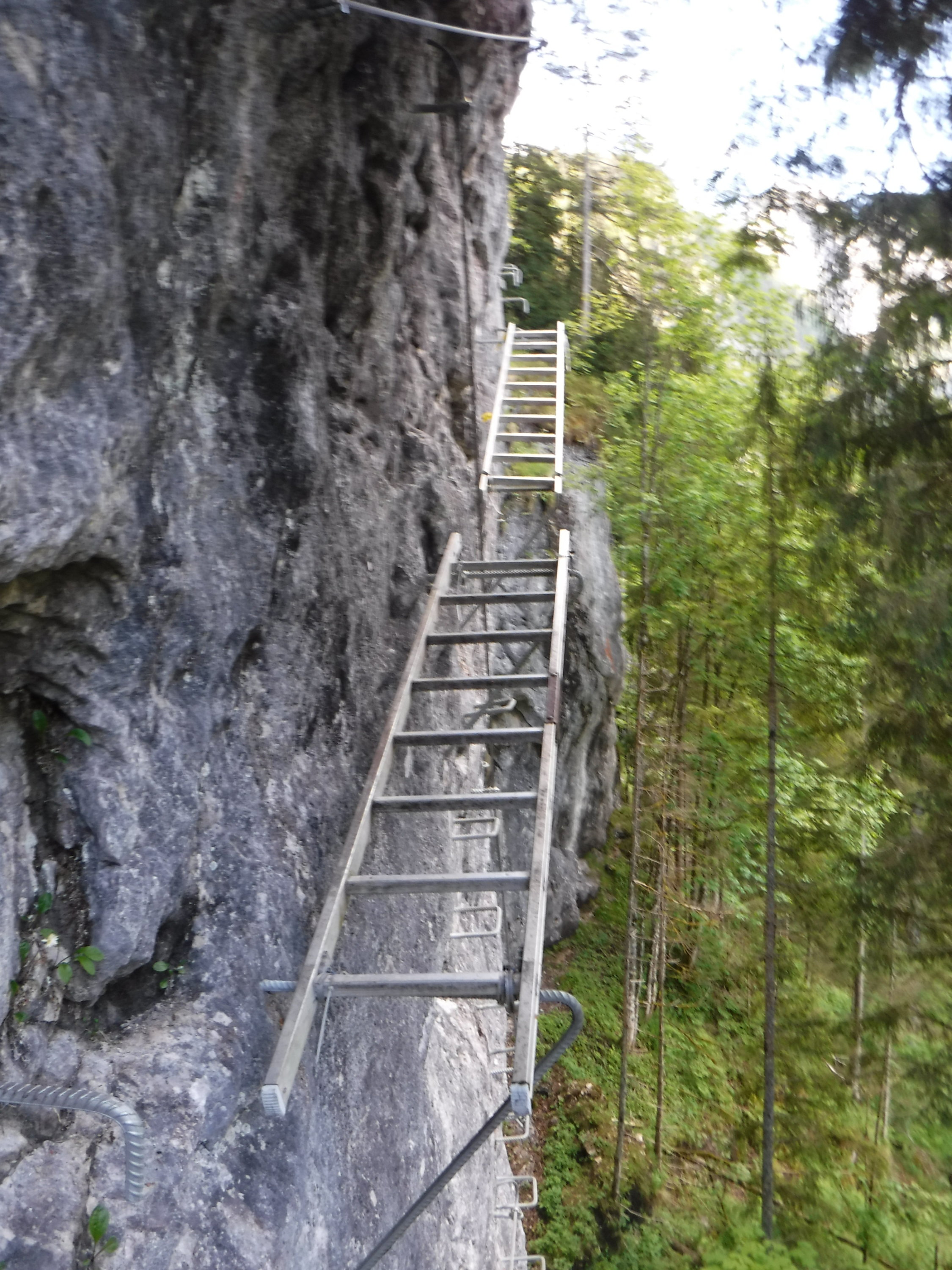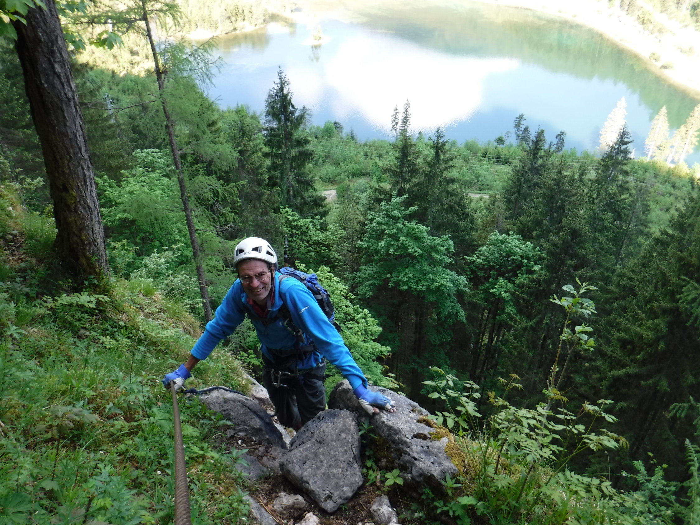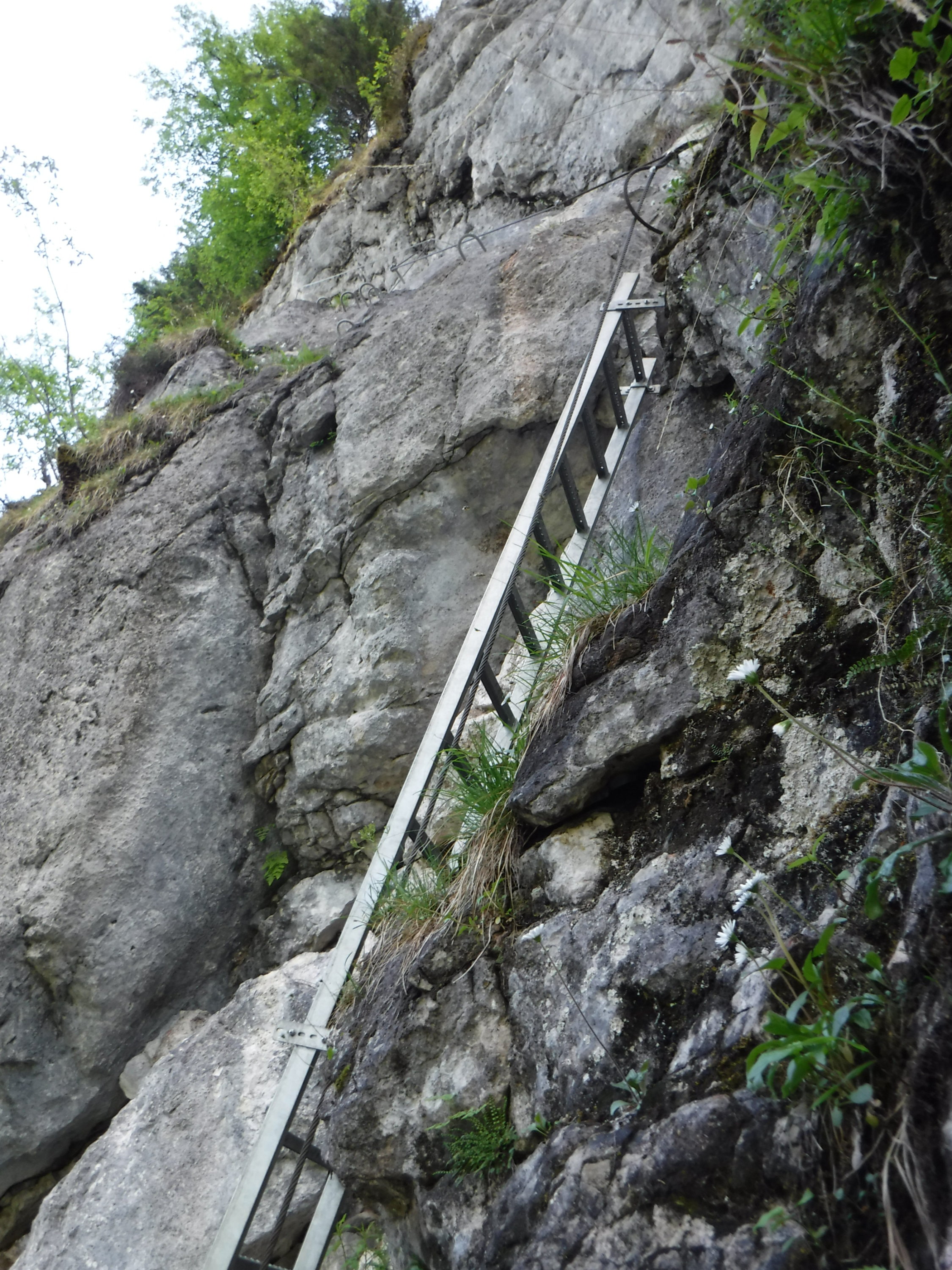 Von dieser sportlichen Einstiegsvariante abgesehen, ist der Steig m.E. auch für Einsteiger geeignet (2 Notausstiege). Für Kinder hängt das Sicherungsseil allerdings manchmal sehr hoch.