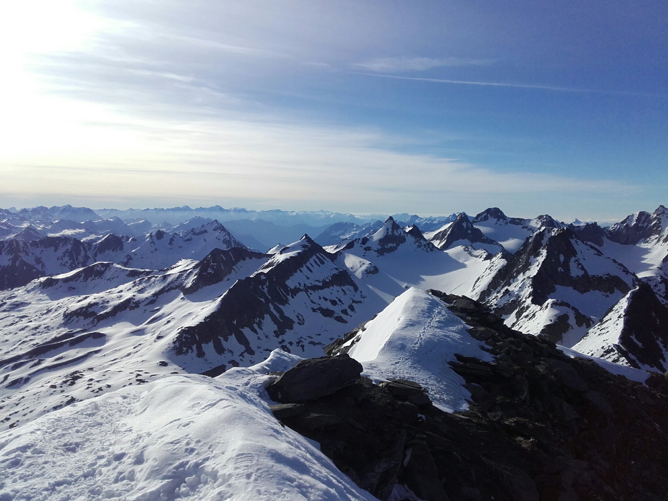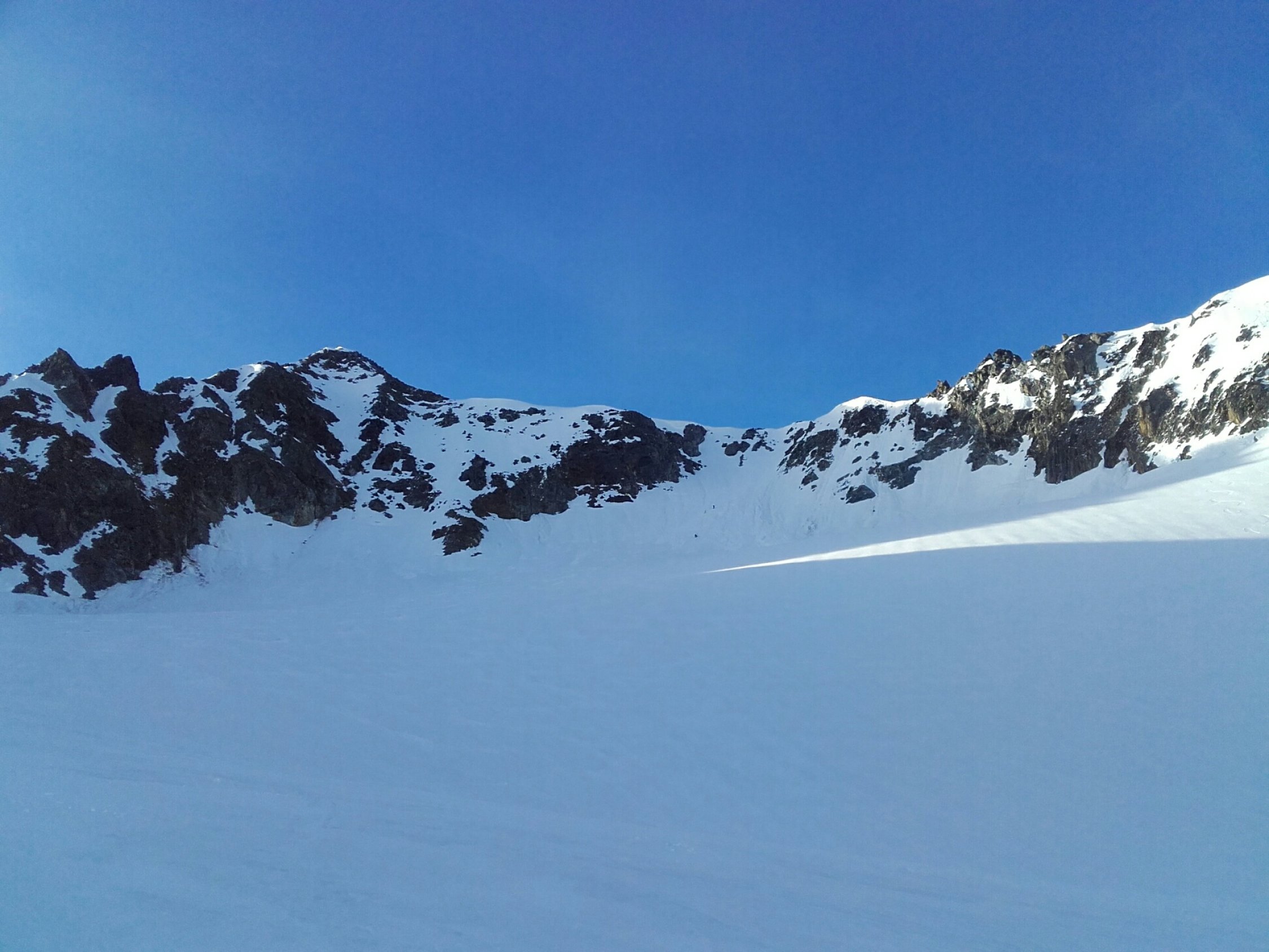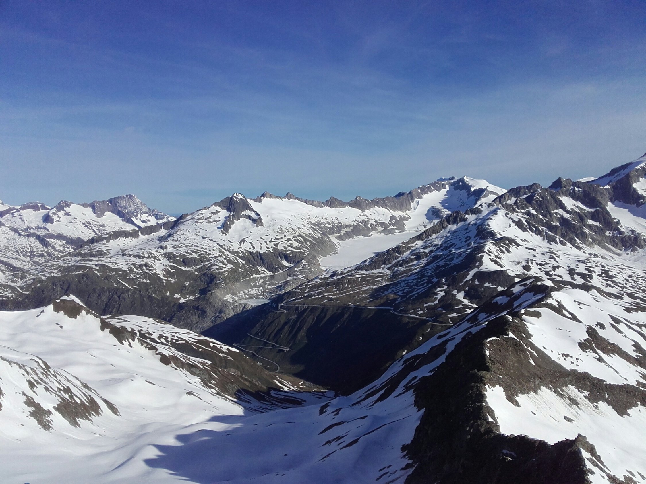 Der Schnee von vor (2?) Tagen hat dazu geführt dass ein schöner glatter Firn den Muttgletscher ziert. Im Coulior viel Schnee. Militärstrasse recht aper - zu Fuss gut möglich.