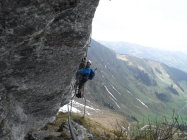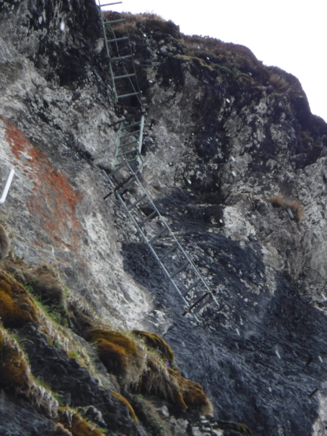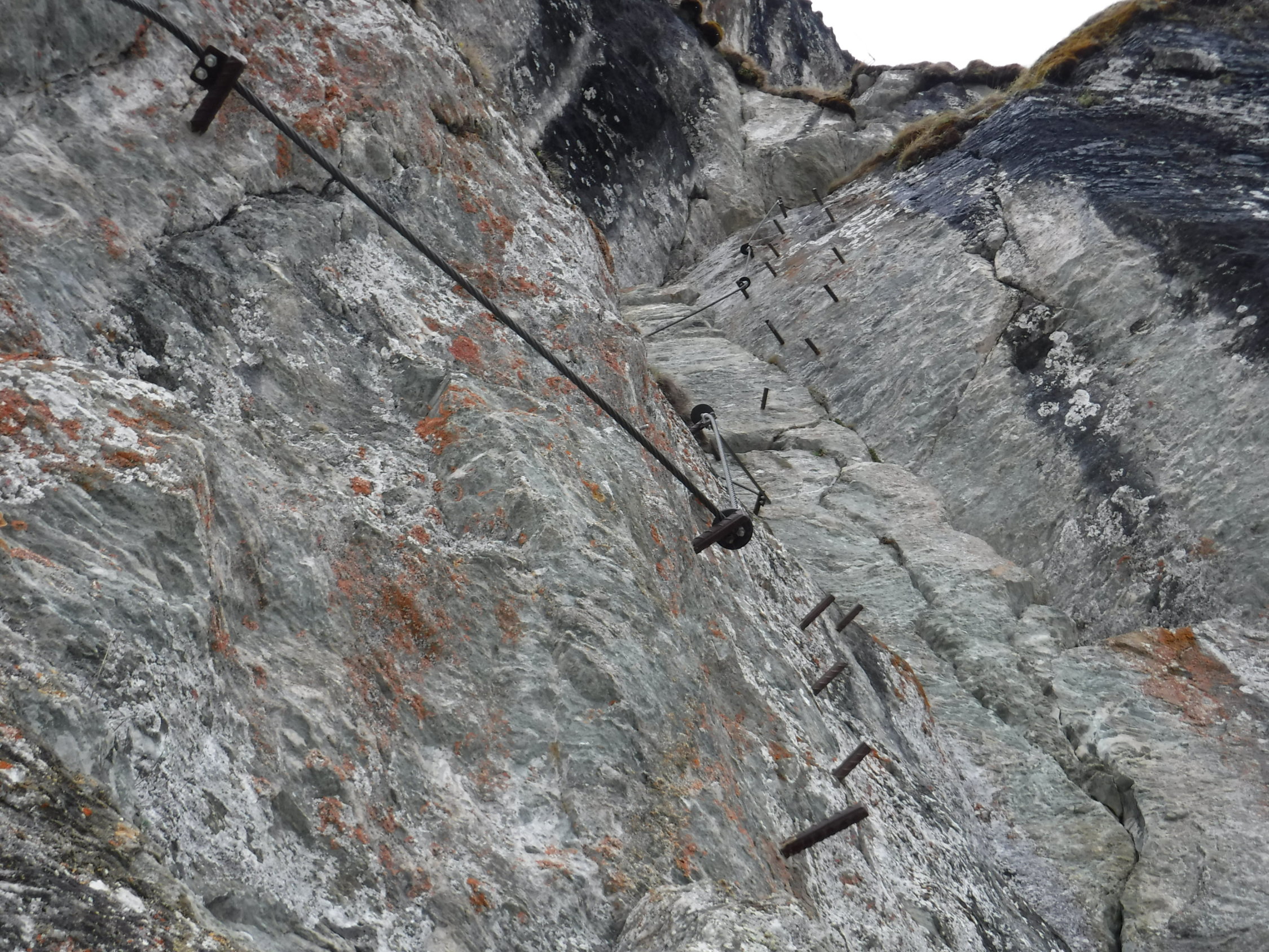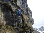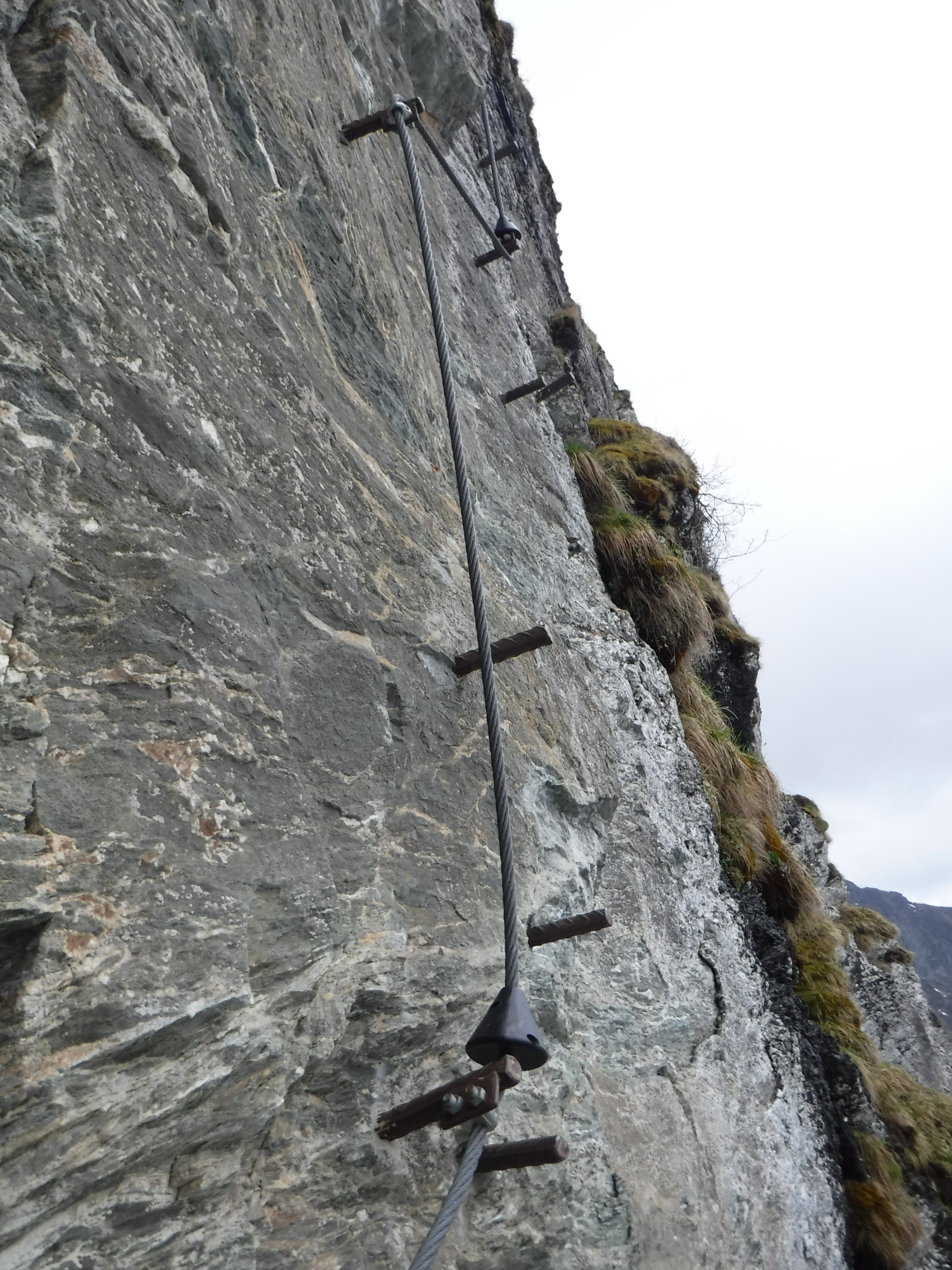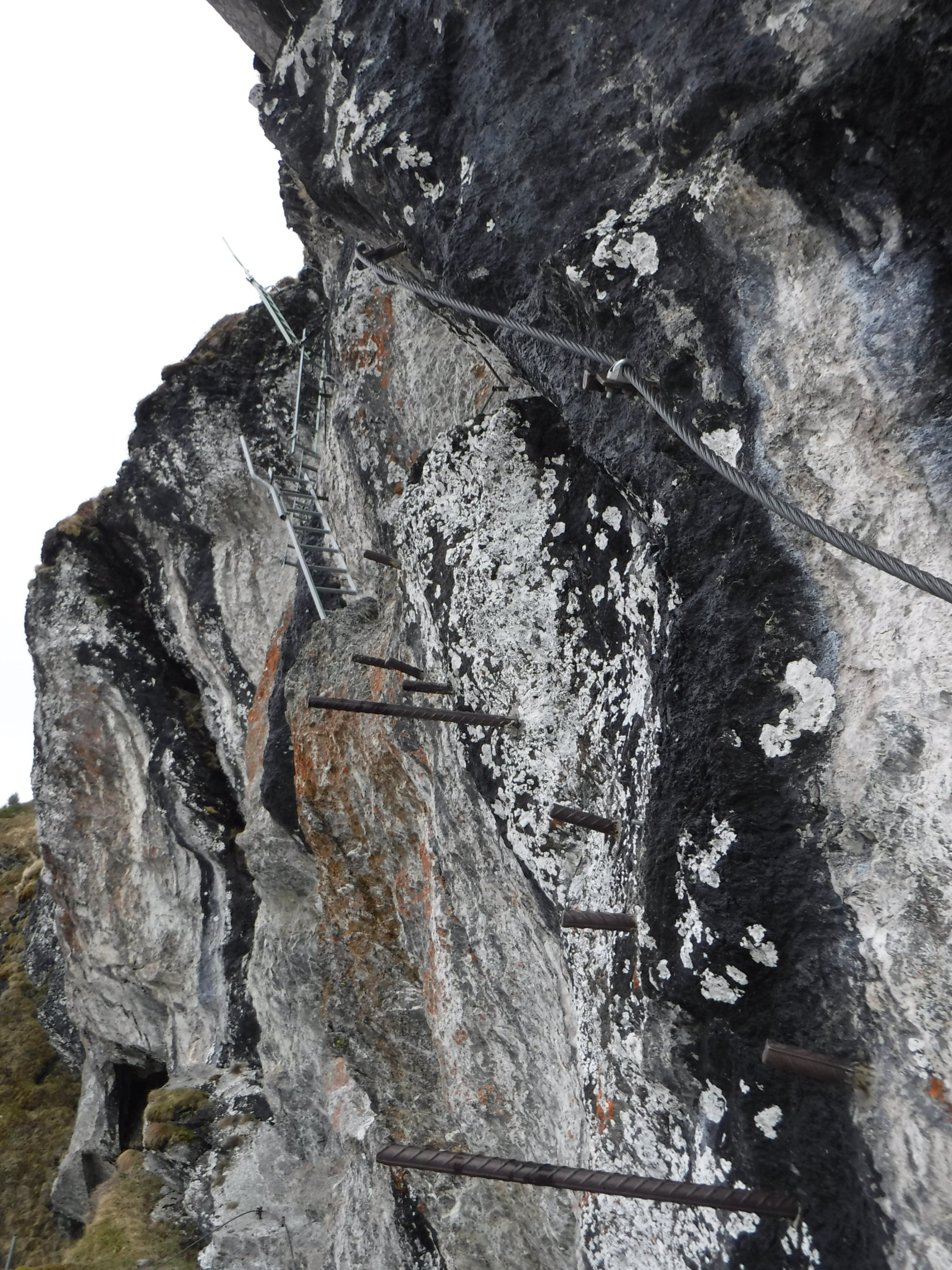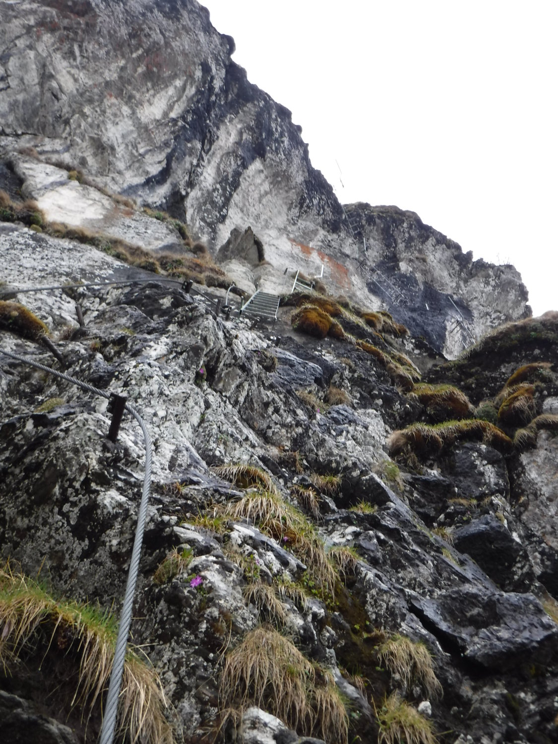 Nicht alltäglicher Steig in grasigem Ambiente mit vielen Leitern. Im Steig gibt es einige erdige, bzw. grasige Stellen, die bei Nässe rutschig sind.