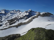 Von der Passhöhe aus nicht mehr lohnend, besser bei Sidelenbach starten, nach einer kurzen Tragpassage noch geschlossene Schneedecke.
