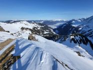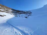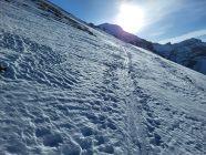 Ab der Alphütte Pt. 1632 hat es schönen Pulverschnee und viele Spuren bei Innerberg. Aufsteig zum Rengglipass problemlos. Die Westflanke ist abgeblasen, aber es hat eine gute Spur auf der man gut bis zum Grat raufkommt. Der Schnee ist griffig, es braucht keine Harscheisen.