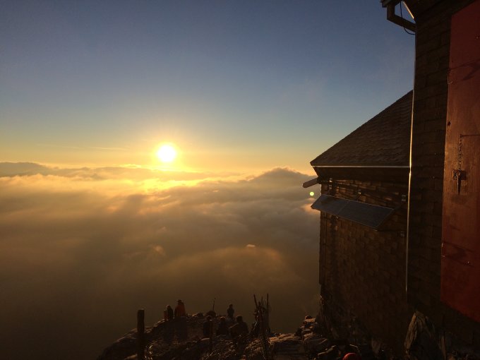 Im Allgemeinen gute bis ausgezeichnete Verhältnisse, kurz nach Hütte bereits im Firn, viele Steinmännchen bis Mönchplateau (gute aber auch irreführende), Nollenaufschwung selbst mehrere Längen tolle Genusseiskletterei, mehrheitlich blank, Bergschrund problemlos, letzter Steilhang zum W-Grat noch recht gut verfirnt.