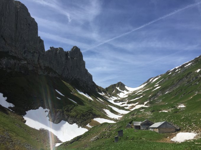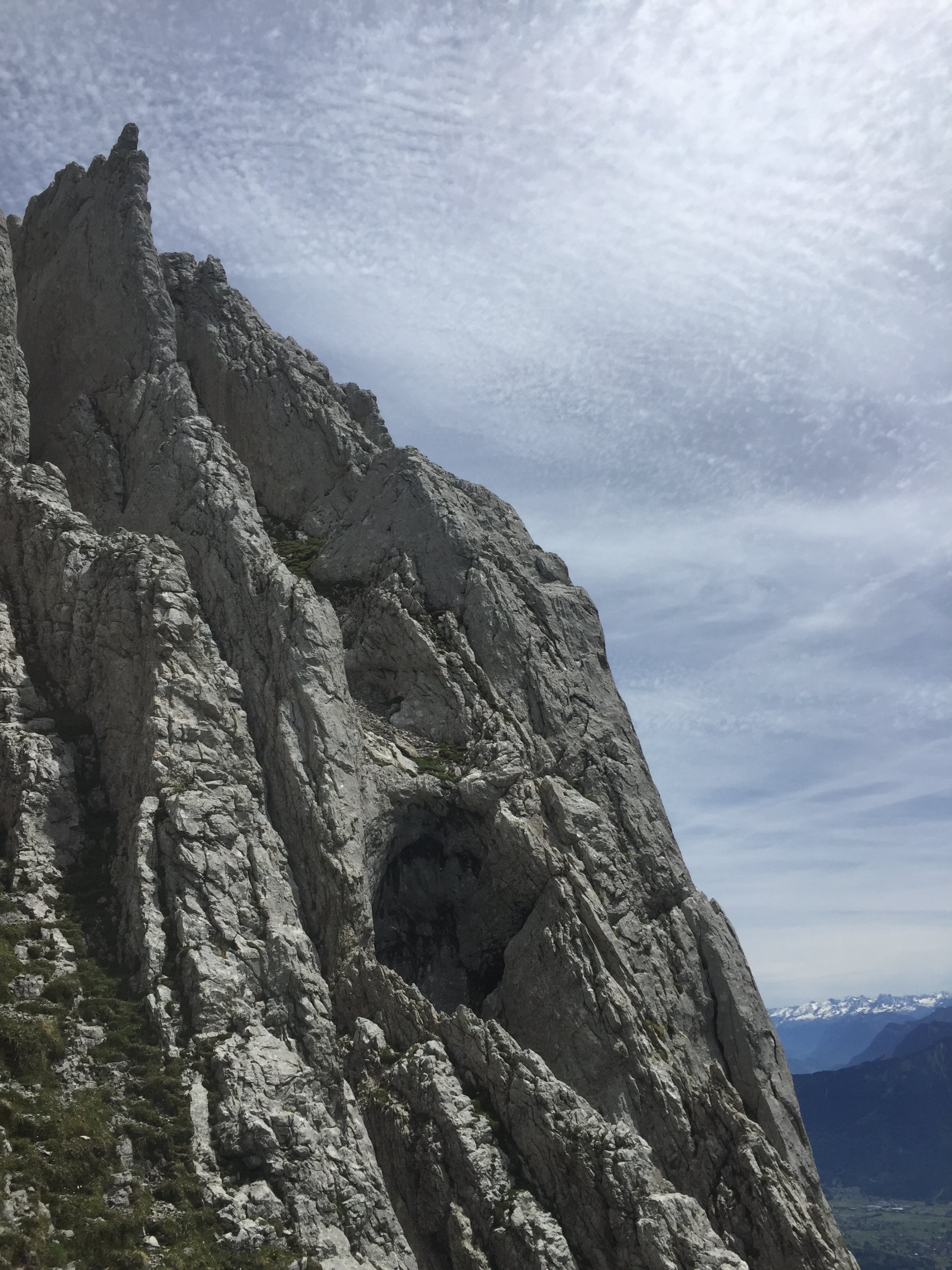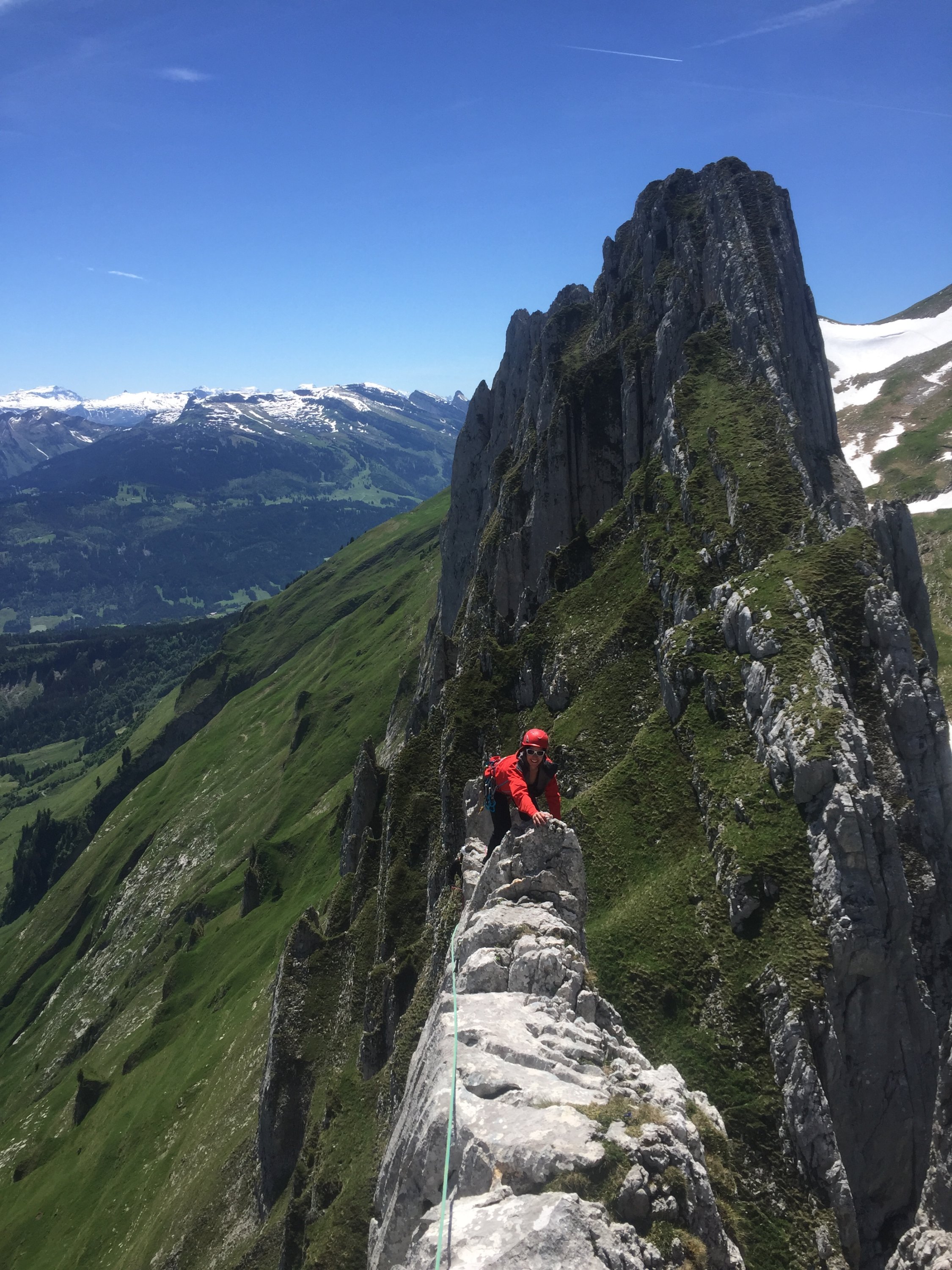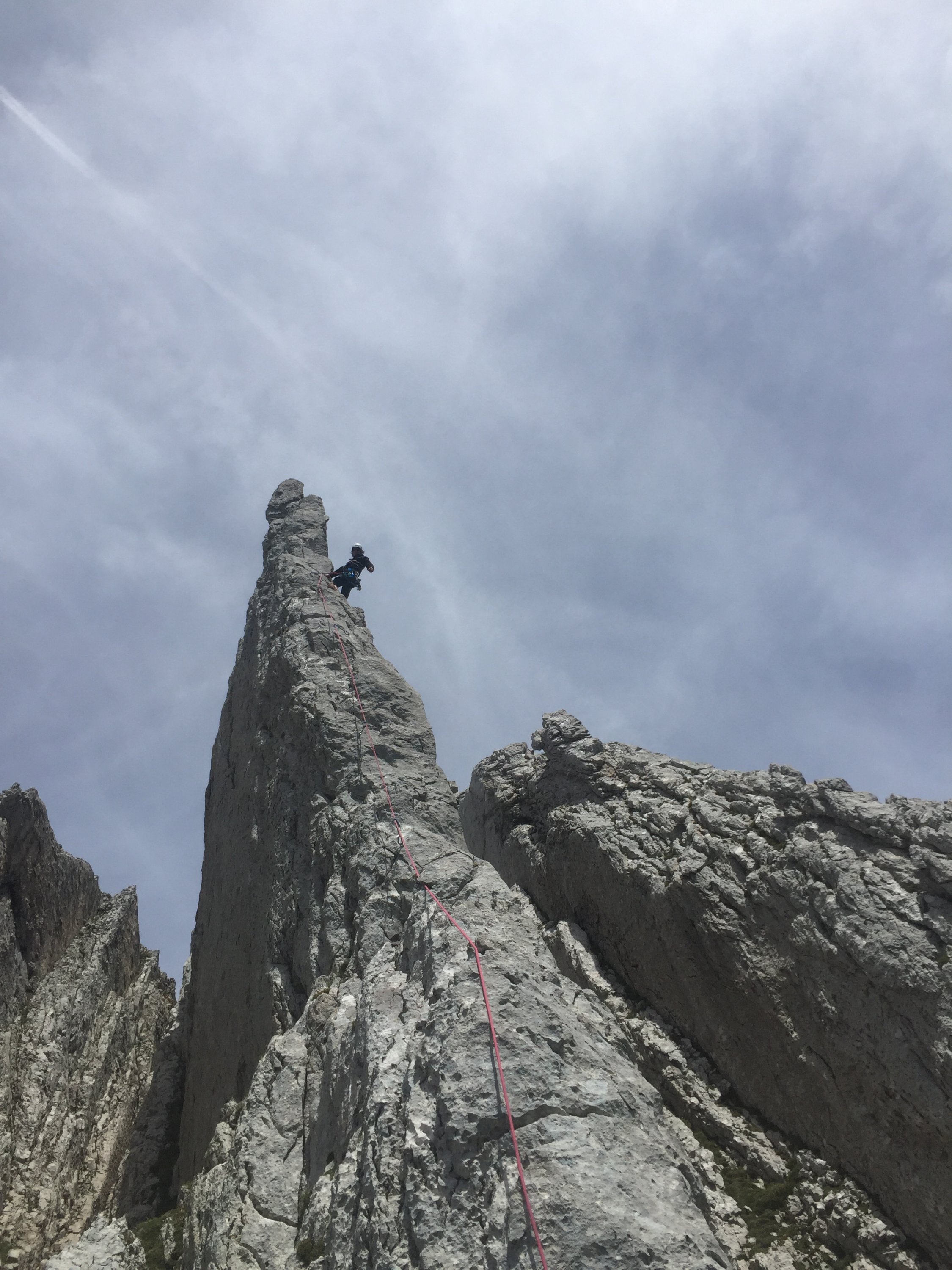 Sehr viele Bohrhaken, auch im Zu- und Abstieg, der in aller Regel Seilfrei begangen wird. Vielleicht etwas zu viel des Guten?