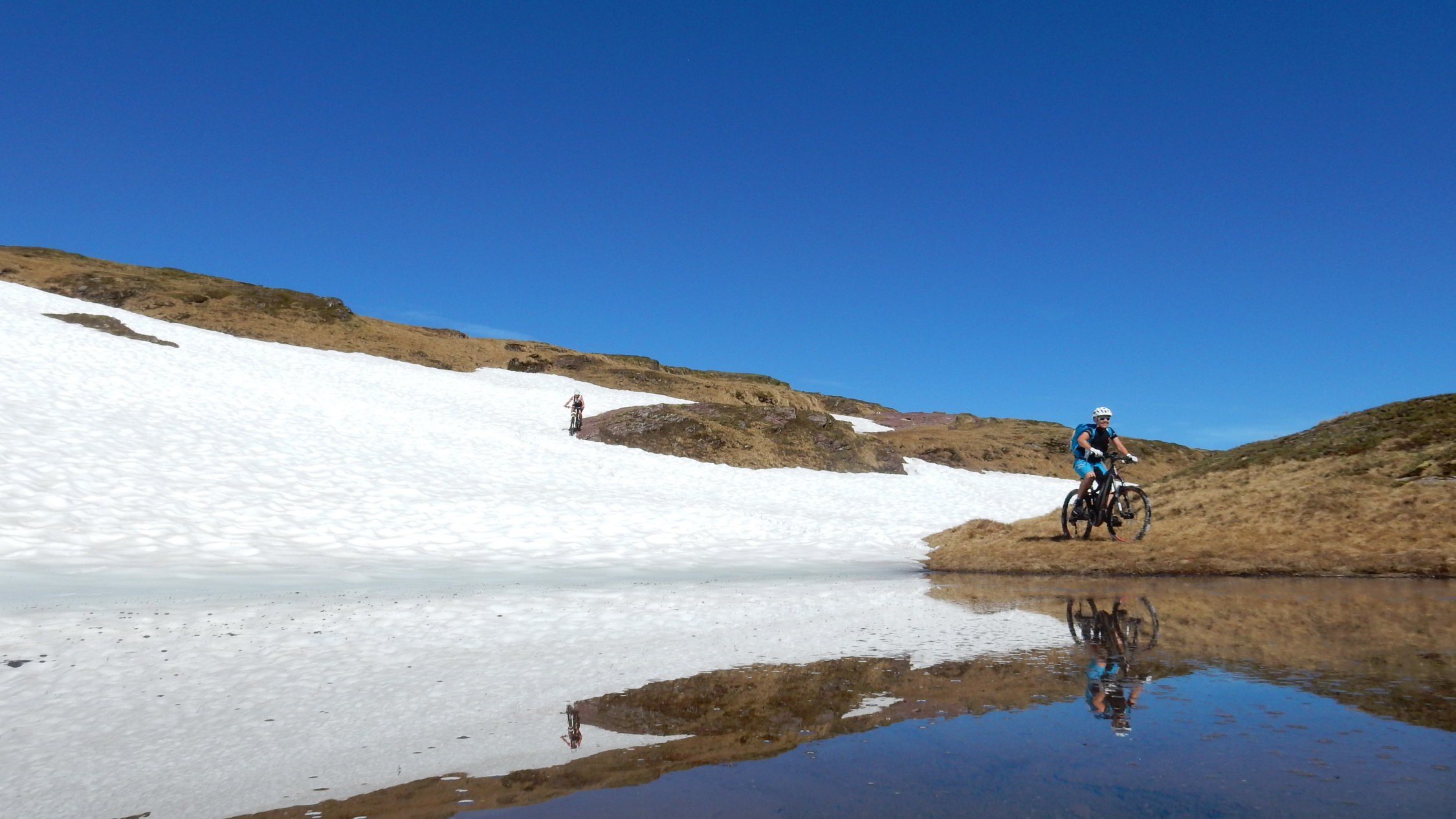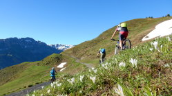 Ab der Zigerfurgglen sind noch ca. 6 Schneefelder zu überwinden ( für E - Bike ohne Schiebehilfe noch etwas streng ) Gipfelaufstieg ist beinahe schneefrei.