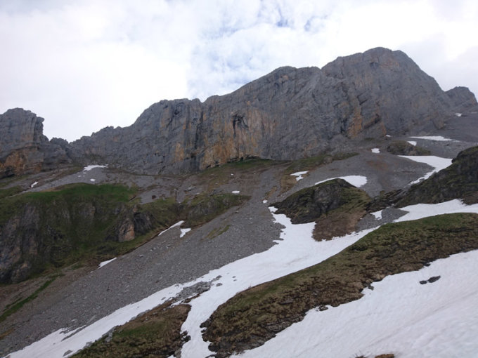 Zwischen Seelenen und Chaiserstocksätz noch einige (teils grosse) Schneefelder mit gutem Trittschnee. Wir haben somit "unseren" Weg relativ frei der Nase nach gewählt. Im Abstieg sehr gäbig! In der Querung zum Chaisertor sind nur noch 2 kleine Schneefelder, die aber nicht an "dummen" Stellen sind. Vom Chaisertor wo es scharf um den Felsen auf die Ostseite des Grates geht, am Fels entlang kein Schnee mehr (fussbreit), auf dem Grat bis und inkl. Gipfelrampe alles schneefrei und gut begehbar.