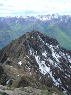Schönes Wetter, warm, windig. Schnee im Abstieg nach Corte und an einigen Stellen des Alpweges. Der Weg Capraga-Sui ist interessant, aber wenig ausgeprägt. Darüber finden sich erstaunlicherweise Markierungen, die beim P. La Cima enden (kommen vermutlich von Vogogno). Dann einige Gratzacken mal rechts, mal links umgehend (Tierspuren) zum Gipfel.