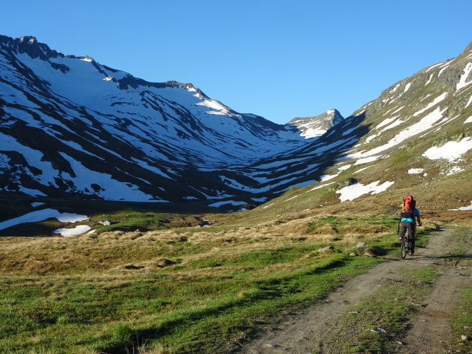 Wir Starteten um 6 Uhr mit dem Bike bei der Passstrasse, 7 Uhr Bikedepot Stavel da Maighels. Das Bike ist bei dieser Tour fast schon ein muss. Die Rückfahrt zum Auto dauerte nur 20min.