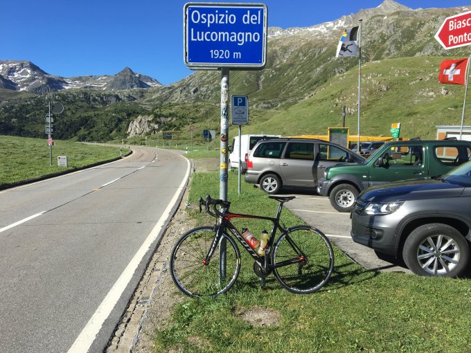 Start 6:00 in Hospental, angenehme + 7 Grad. Dank des zeitigen Aufbruchs sowohl Oberalp-, als auch Lukmanierpass sehr ruhig, der Schönwetter-Ausflugsverkehr am Sonntag setzt erst gegen 9 Uhr ein. Abfahrt Lukmanierpass Richtung Olivone recht ruppig, Betonplattenpiste mit gefühlten armbreiten Fugen... Biasca - Airolo dann + 30 Grad, dank Thermik aber mit zügigem Rückenwind. Gotthard (Tremola) das historische Kopfsteinpflastergerumpel, aufwärts aber ok. Sonntags dann um die Mittagszeit mit allem auf dem Pass, was Räder hat....