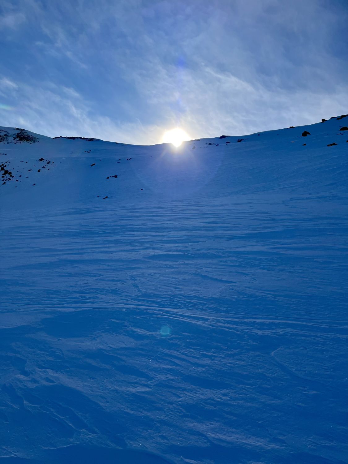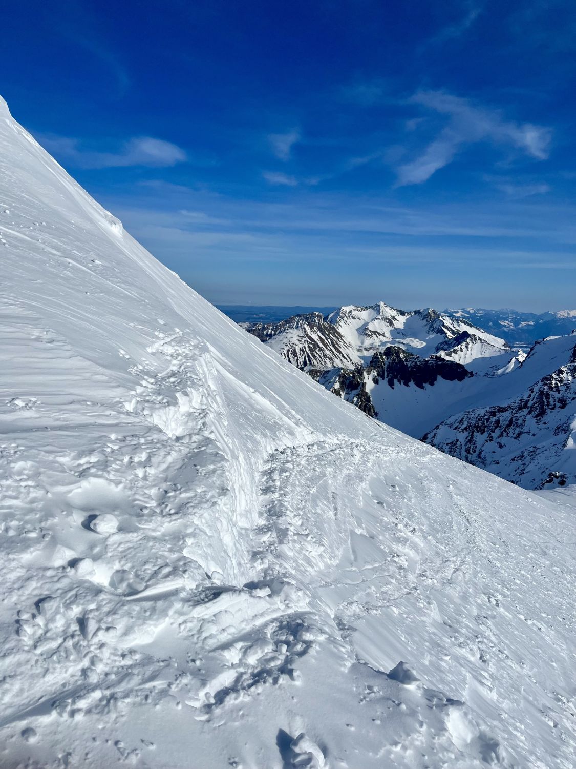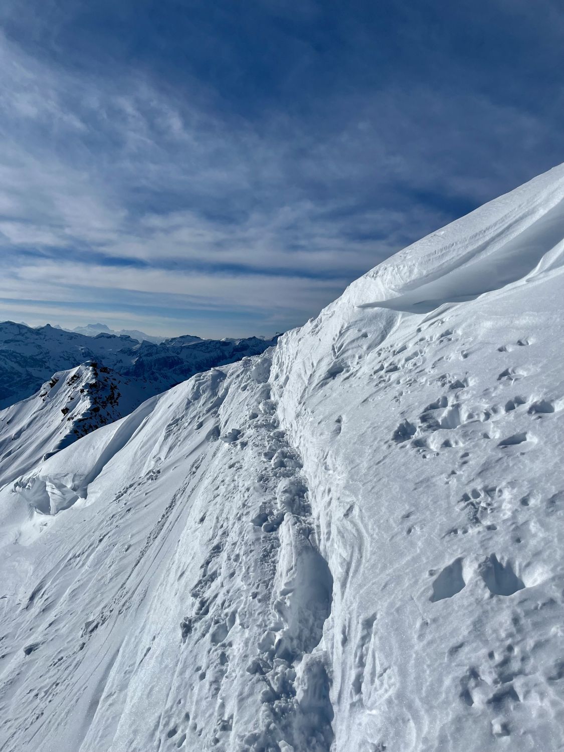 Um 8.00 Uhr im Färmel bei -5 Grad gestartet. Im Färmel hat es viel Schnee. Die Biregrabe Lawine ist schon herunter gekommen. Deshalb nicht die Aufstiegspur Richtung Biregrabe nehmen, sondern bei der letzten Hütte, links die Spur in das hintere Tal nehmen. Die Rippe vorne neben dem Biregrabe ist hart und Windgepresst. Hinten im Tal ist eine angenehme Aufstiegspur. Harscheisen sind im oberen Teil hilfreich. Der Übergang zum Grat geht auch gut. Mann kann mit den Skier auf den Gipfel, oder zu Fuss. Es hat gute Trittspuren. Oben hat es etwas Presspulverschnee, aber dann kommt traumhaft schöner Pulverschnee und immer noch Platz für Spuren. Traumhaft geniale Tour bei schönem Wetter. Auf dem Gipfel hat es gewindet. Sehr wenig Leute unterwegs.