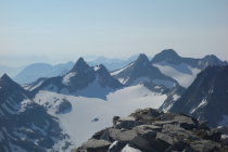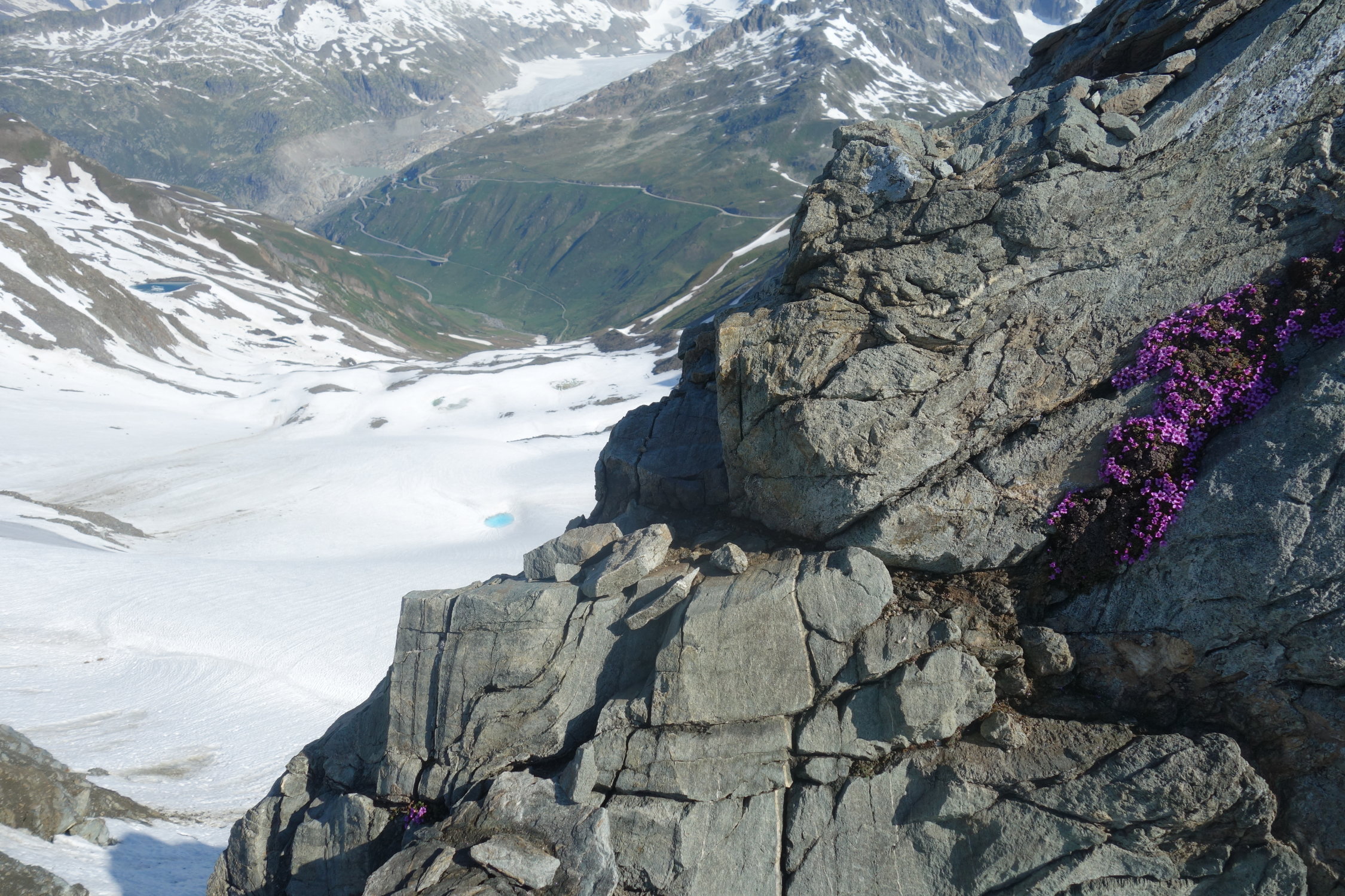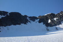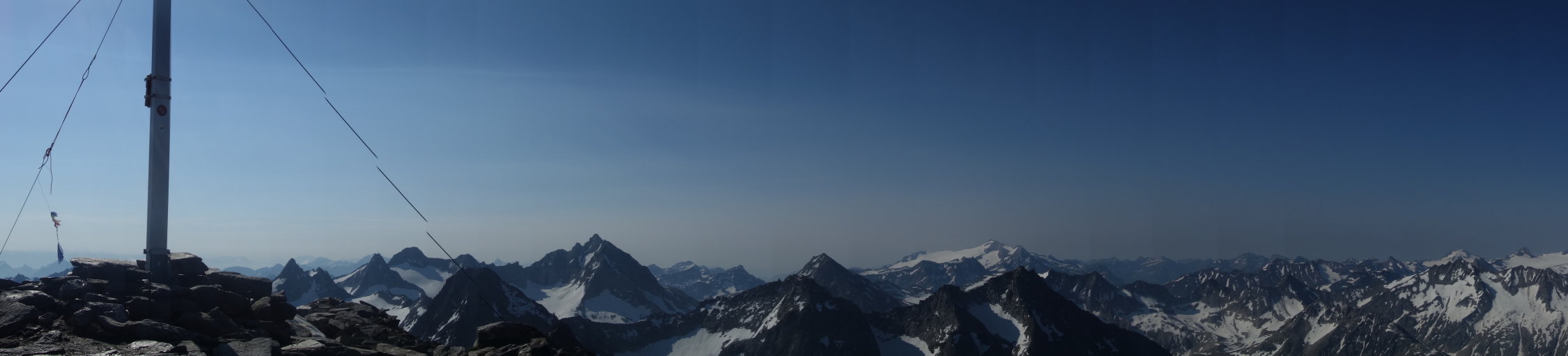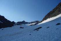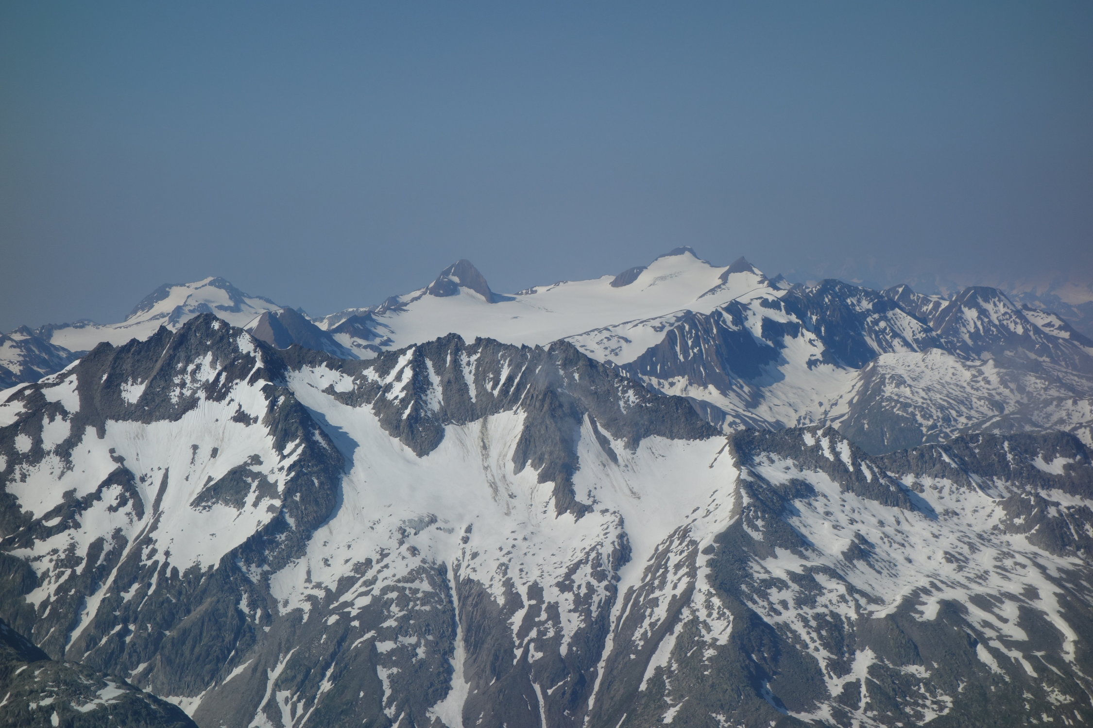 Schnee im Aufstieg um ca. 07.00 leicht "aufgesulzt". Der Büsserschnee war entsprechend recht angenehm zu gehen. Flanke ab Skidepot ohne Steigeisen möglich, leicht eingesunken. Am Ausstieg noch ein Schneefeld in der flachen Traverse danach alles trocken. Am Gipfel sehr angenehm, T-Shirt-Wetter.