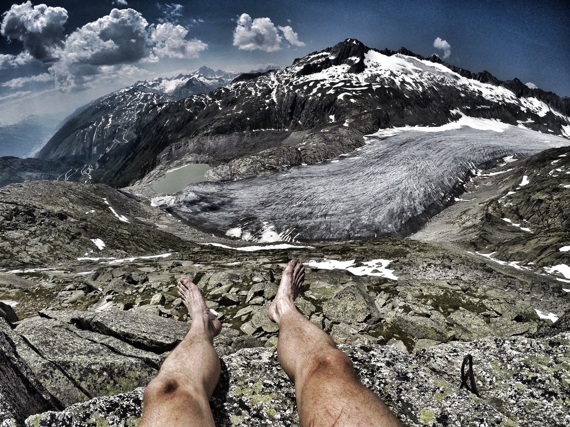 Alles trocken, Gipfelabstieg aufgrund der schneefelder flink und bequem.