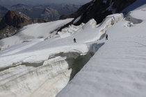 Der Aufstieg von der Schulter auf den Ostgpifel und bis zum Hauptgipfel weist zurzeit sehr gute Verhältnisse auf und ist komplett im Firn.