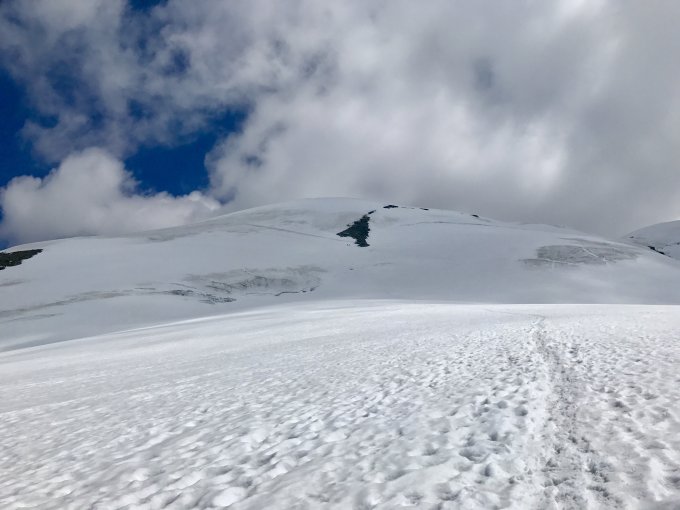 Breithorngletscher wie auch die anderen in der Umgebung weisen Verhältnisse auf, welche eigentlich erst im August vorhanden sind.